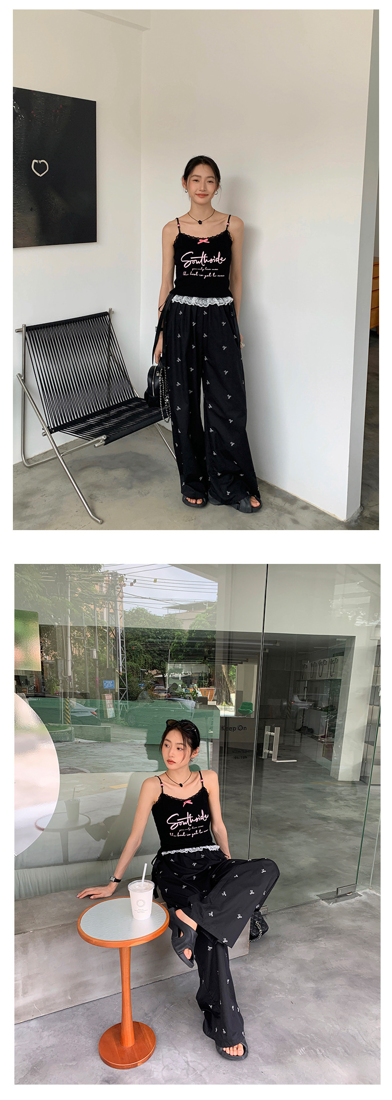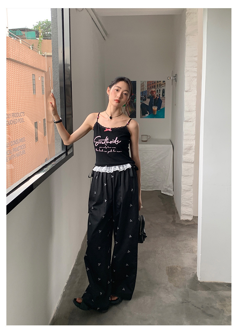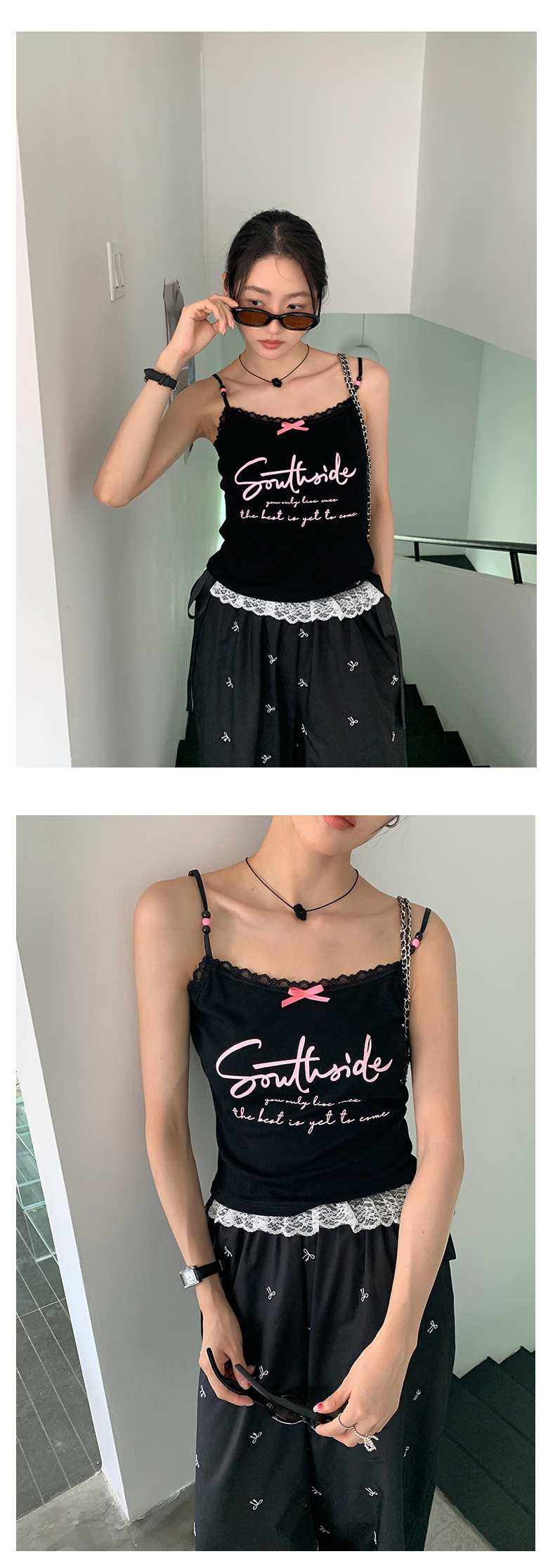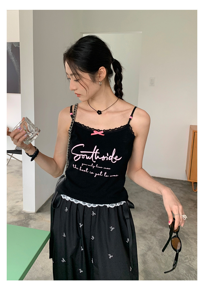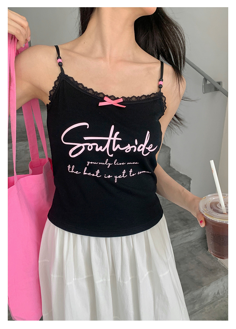 *o-ha-you*【FHZ142SH5047】甜辣風印花蝴蝶結背心吊帶2024夏修身短款外穿上衣