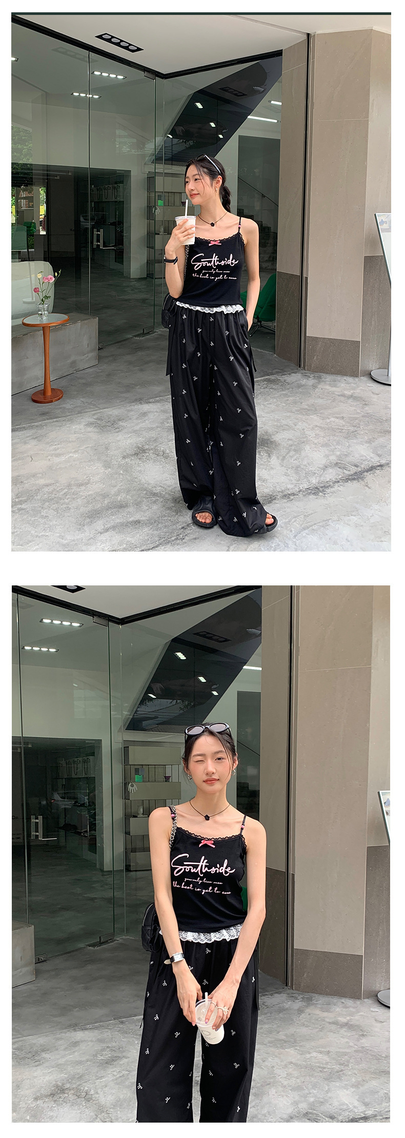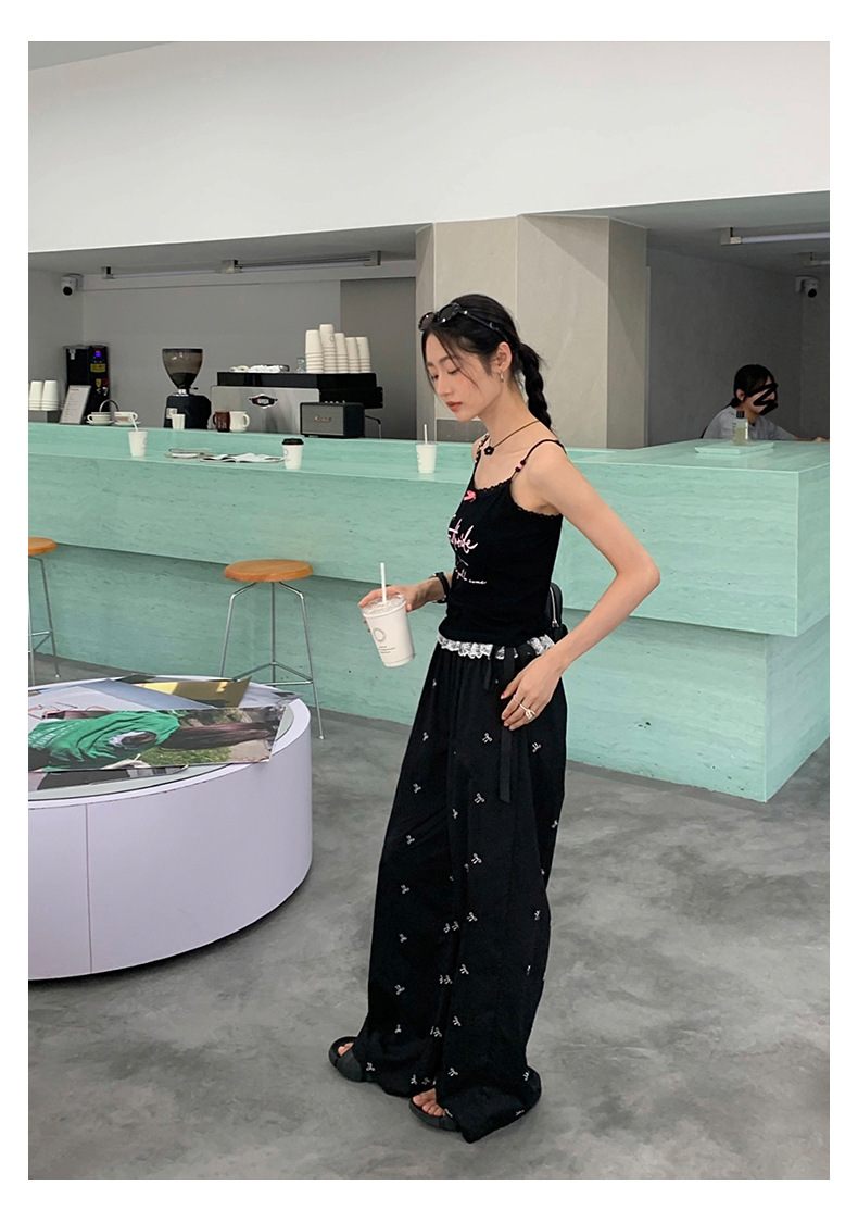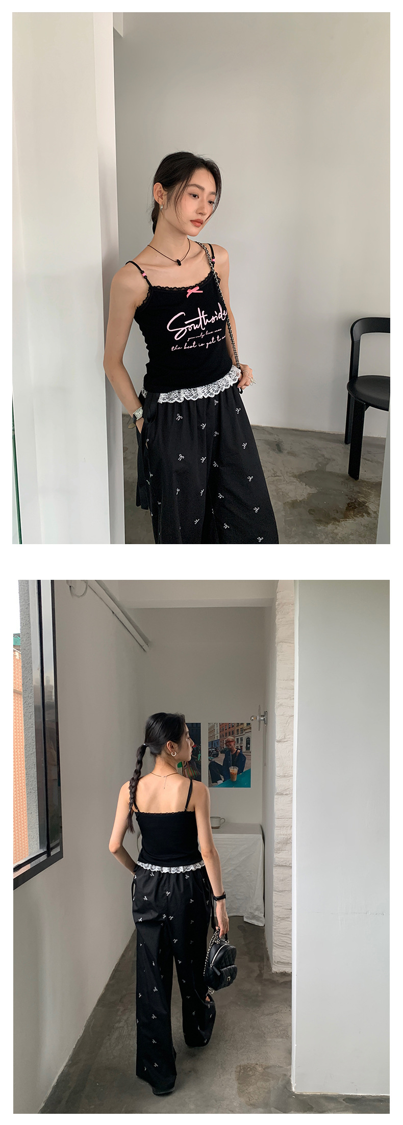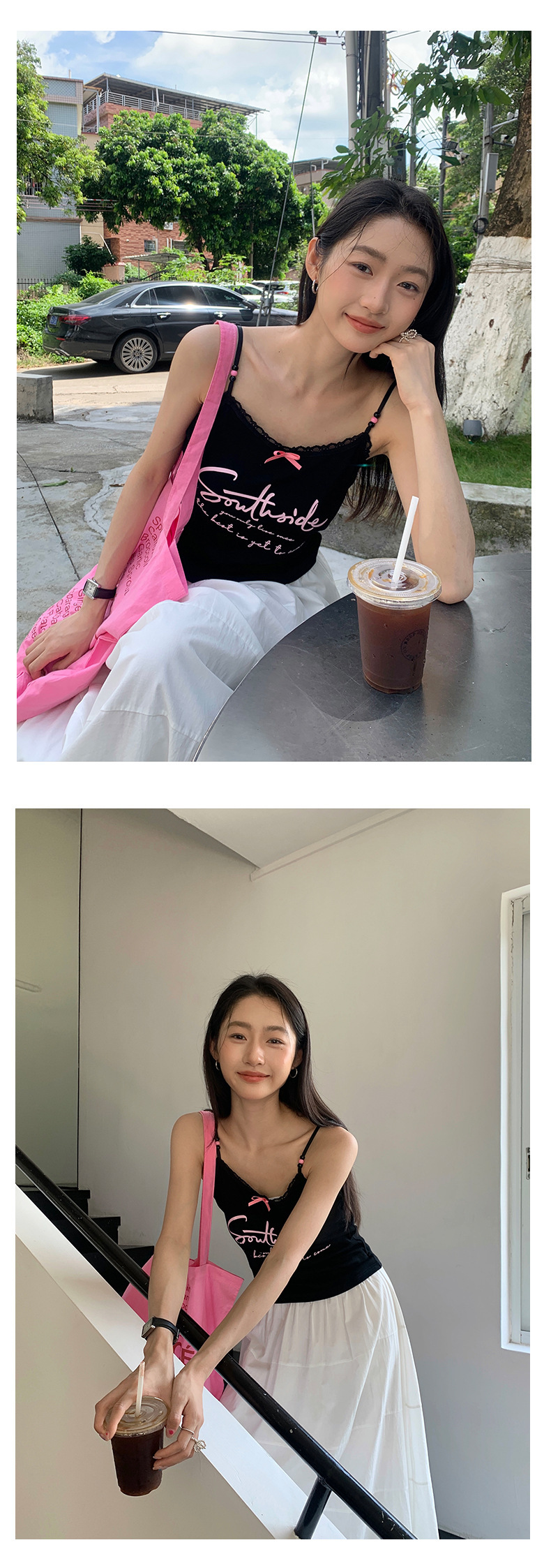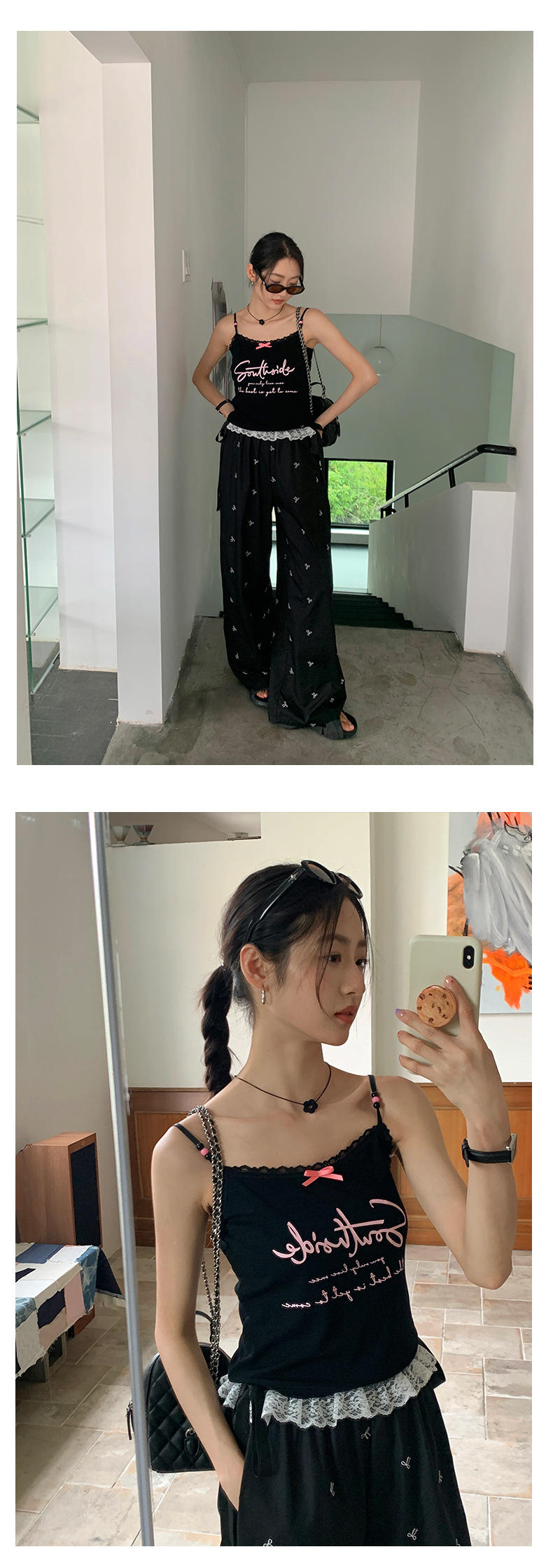 *o-ha-you*【FHZ142SH5047】甜辣風印花蝴蝶結背心吊帶2024夏修身短款外穿上衣