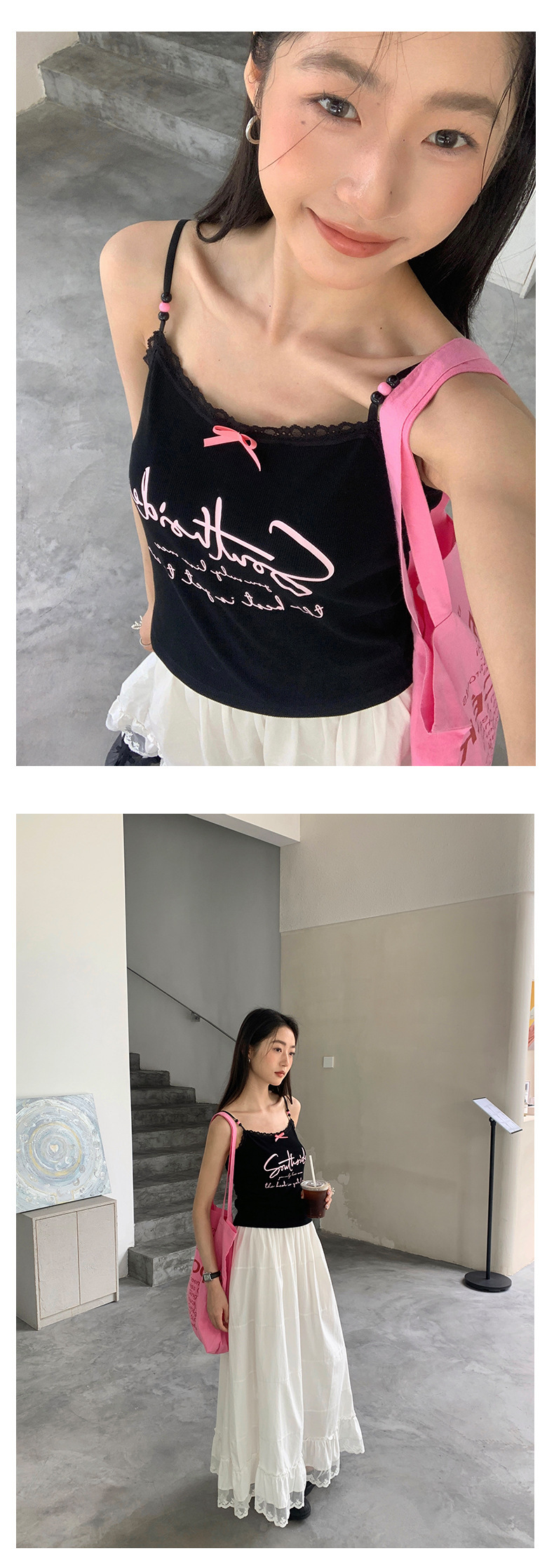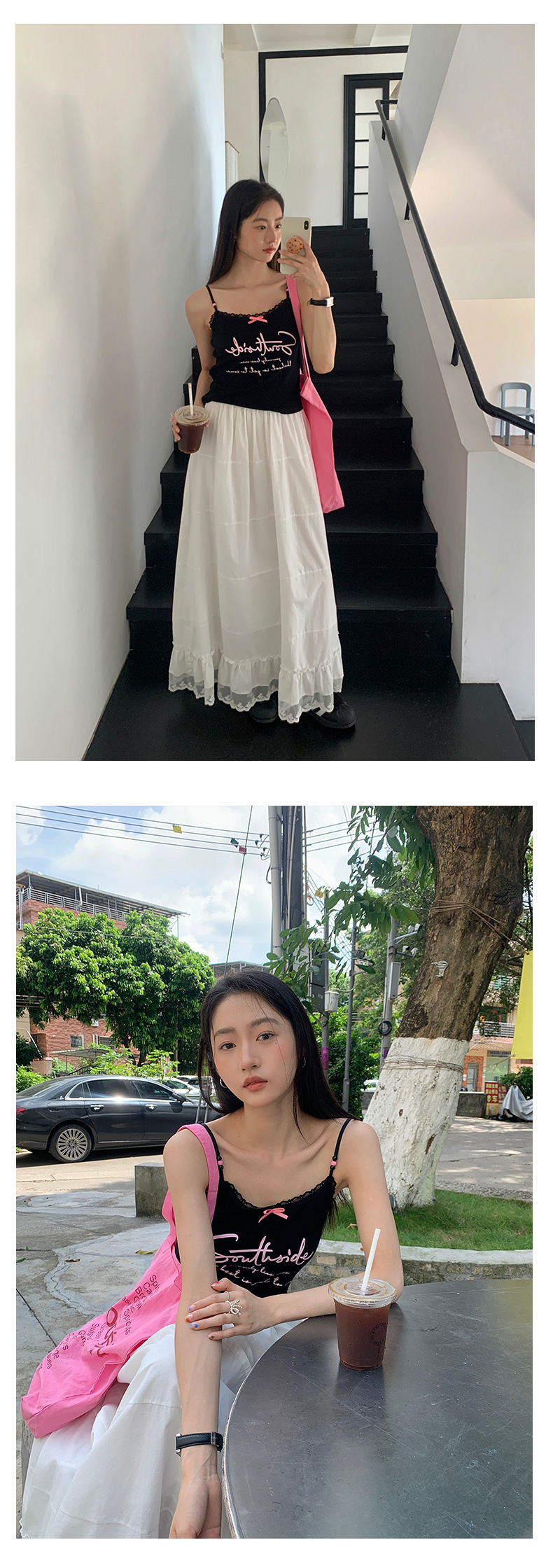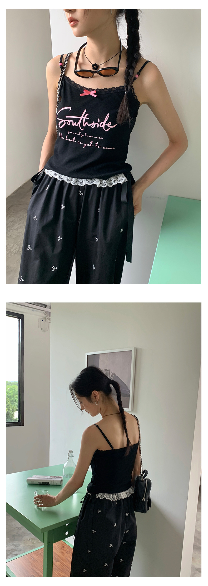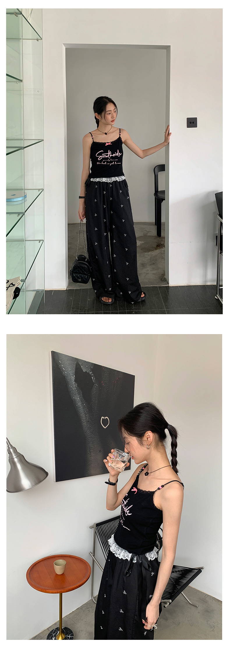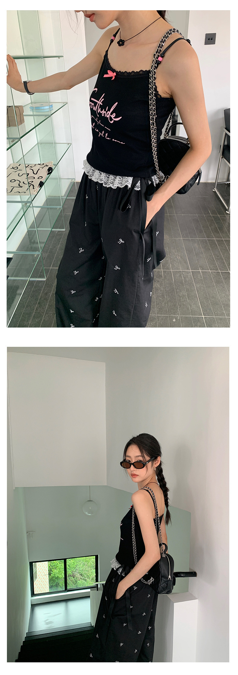 *o-ha-you*【FHZ142SH5047】甜辣風印花蝴蝶結背心吊帶2024夏修身短款外穿上衣