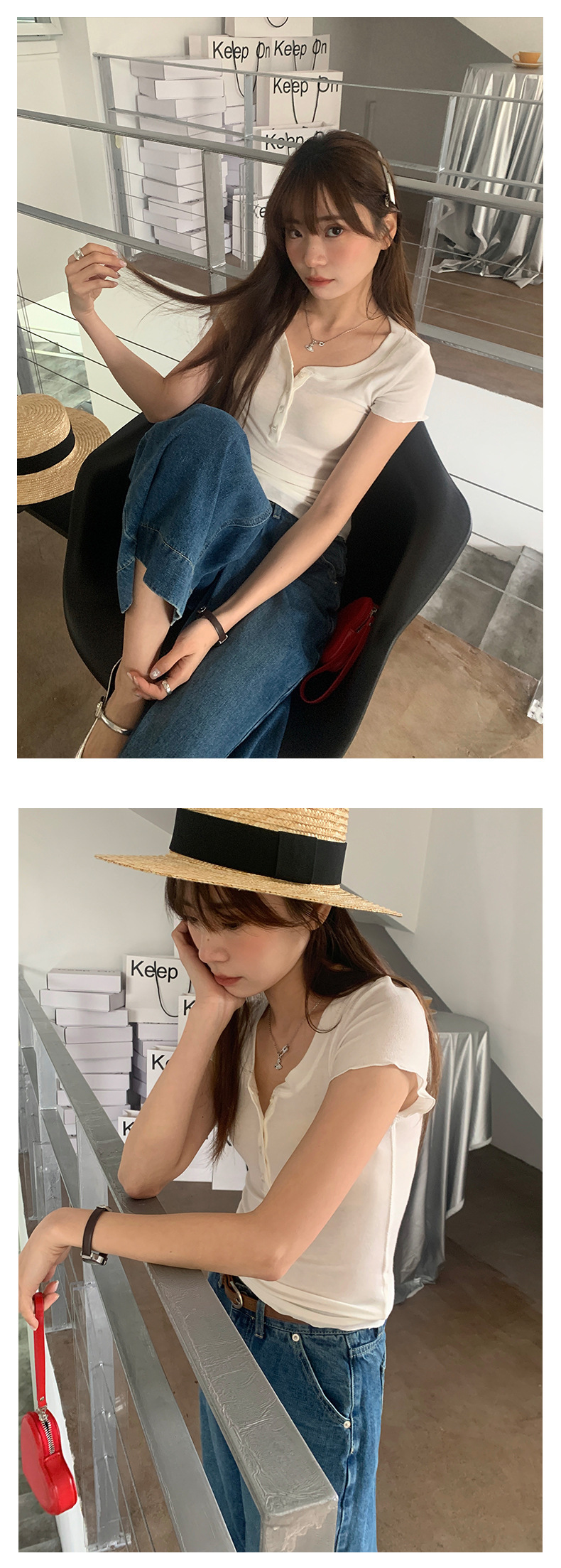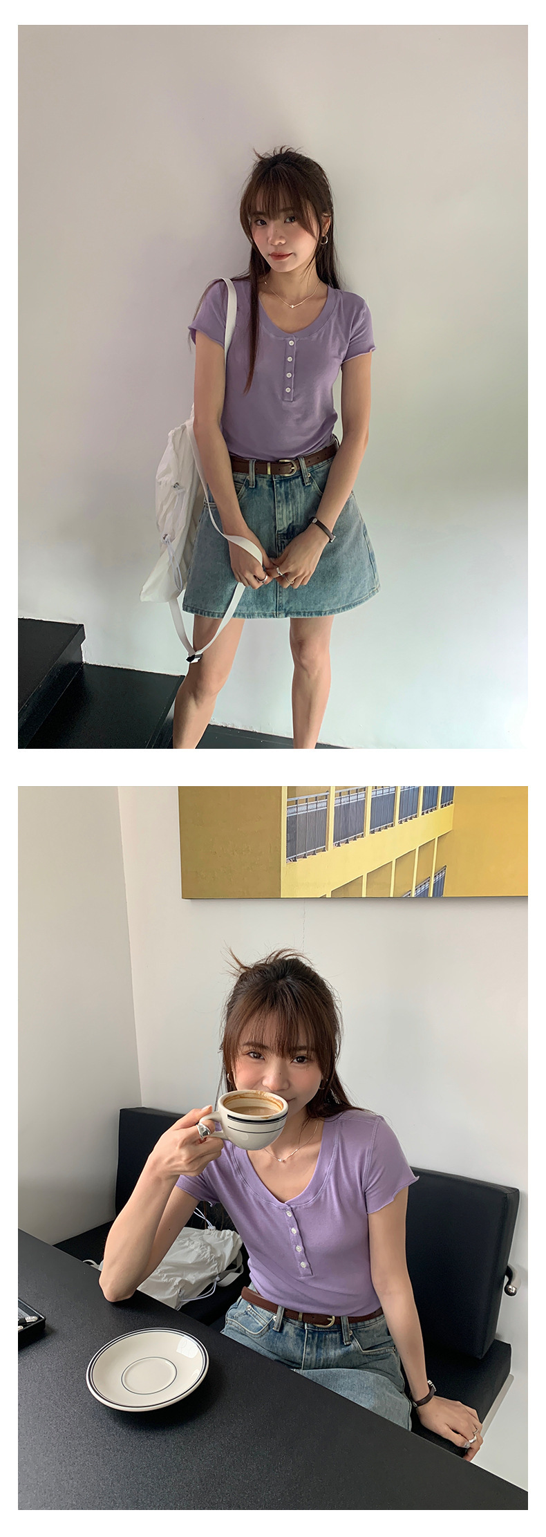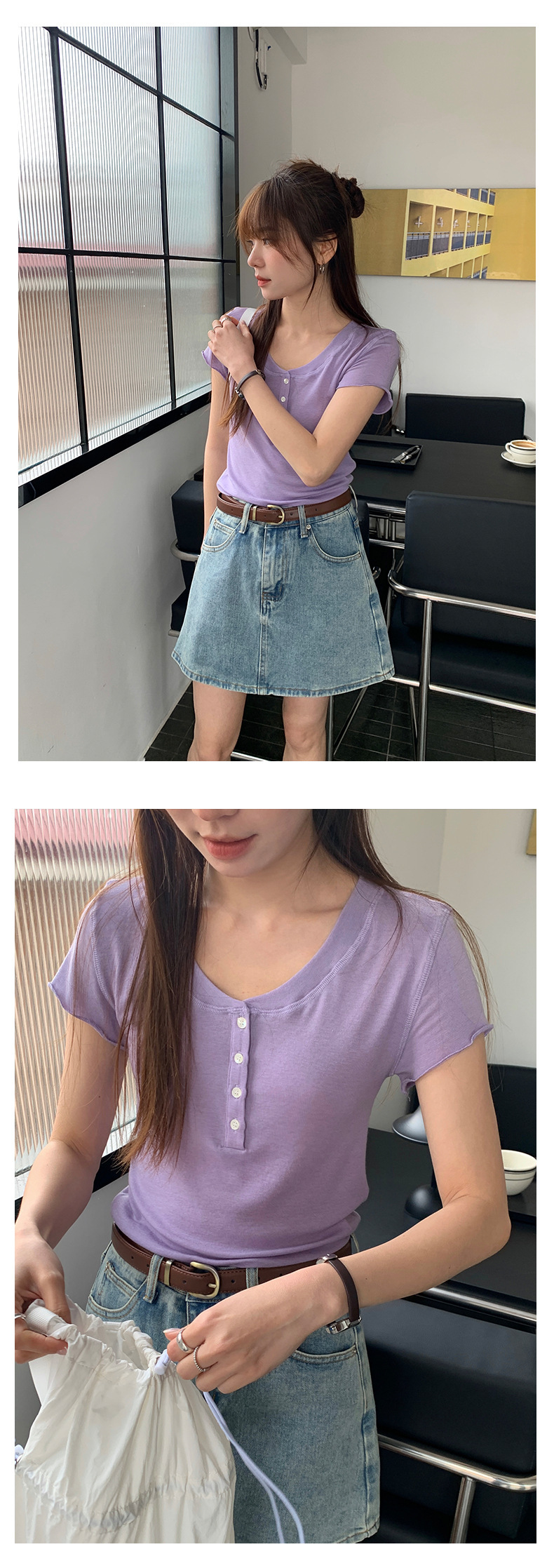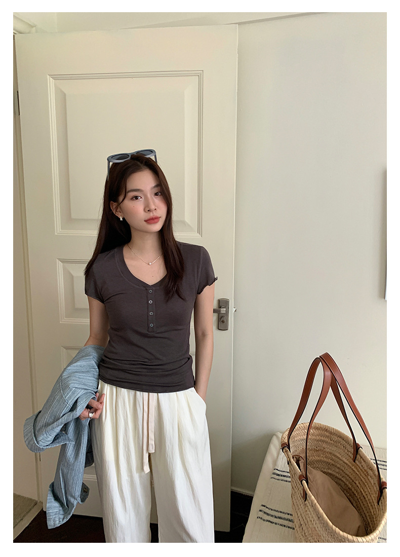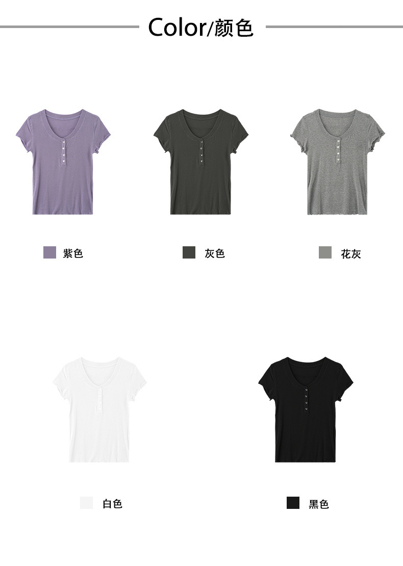 *o-ha-you*【FHZ142TH2003】高級感木耳邊天絲短袖T恤2024夏季韓版顯瘦內搭上衣-5色-如有需要請先諮詢
