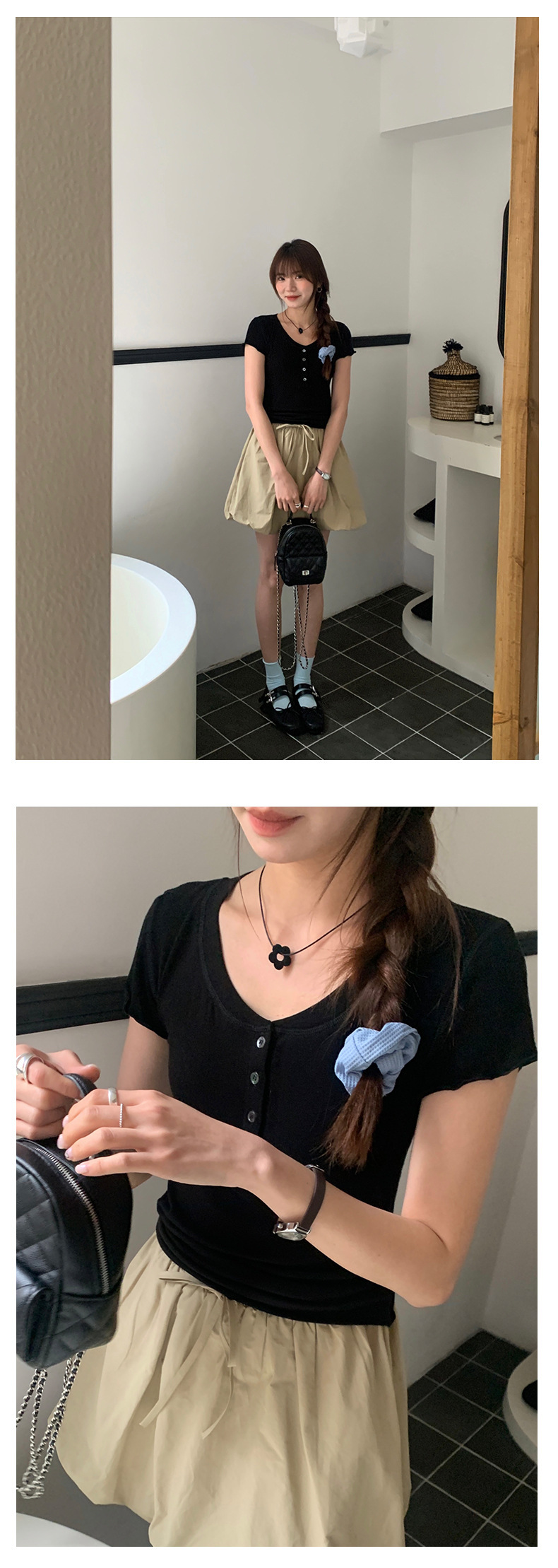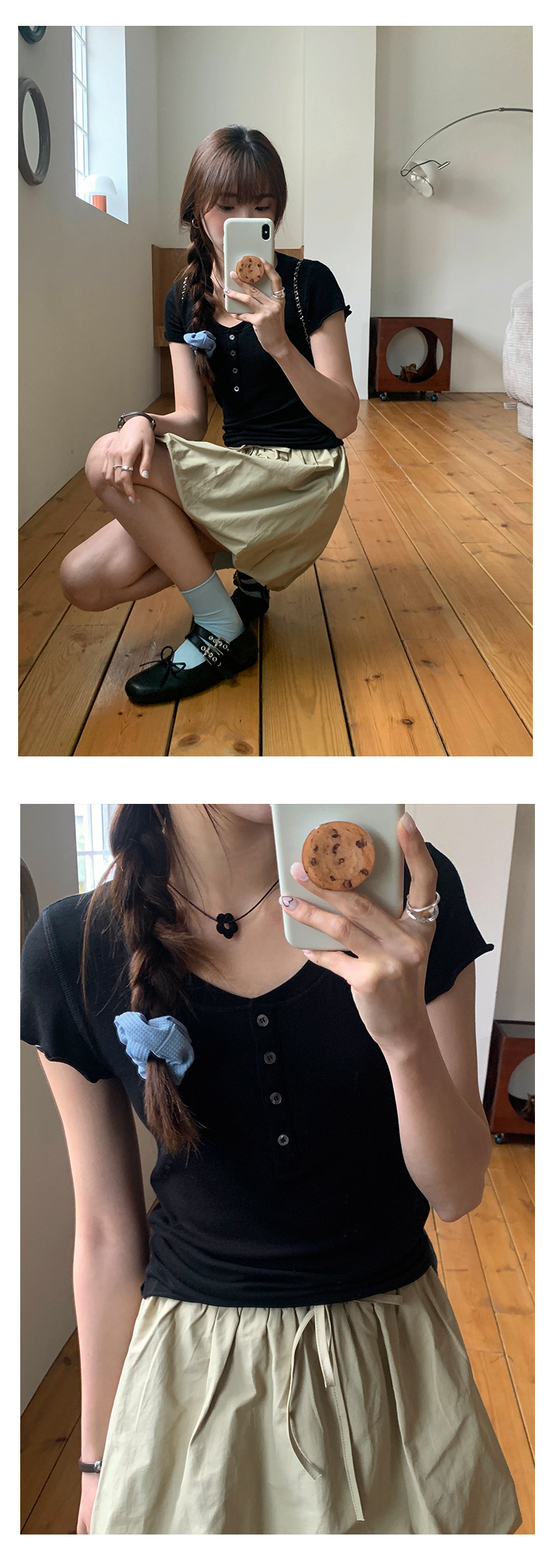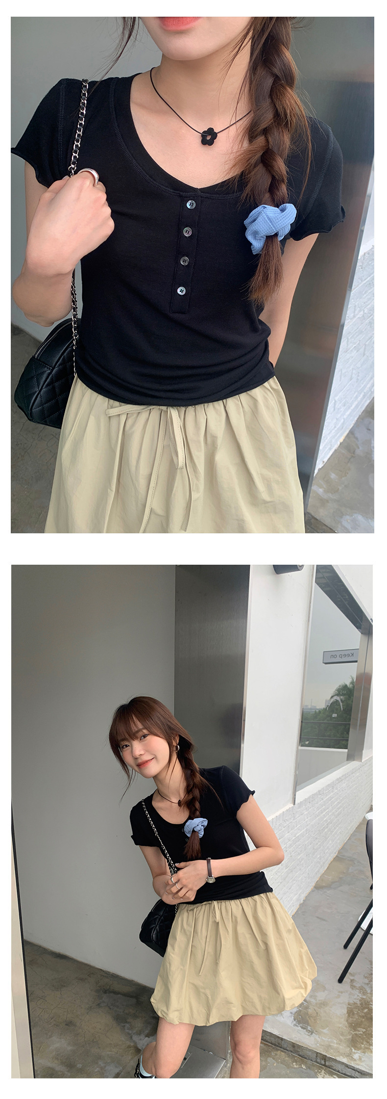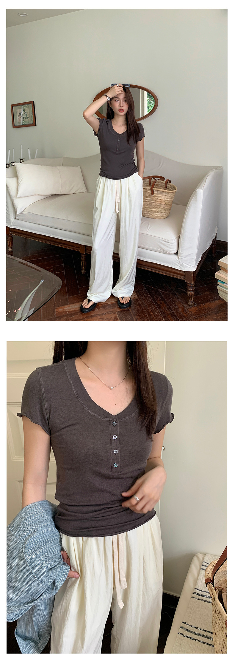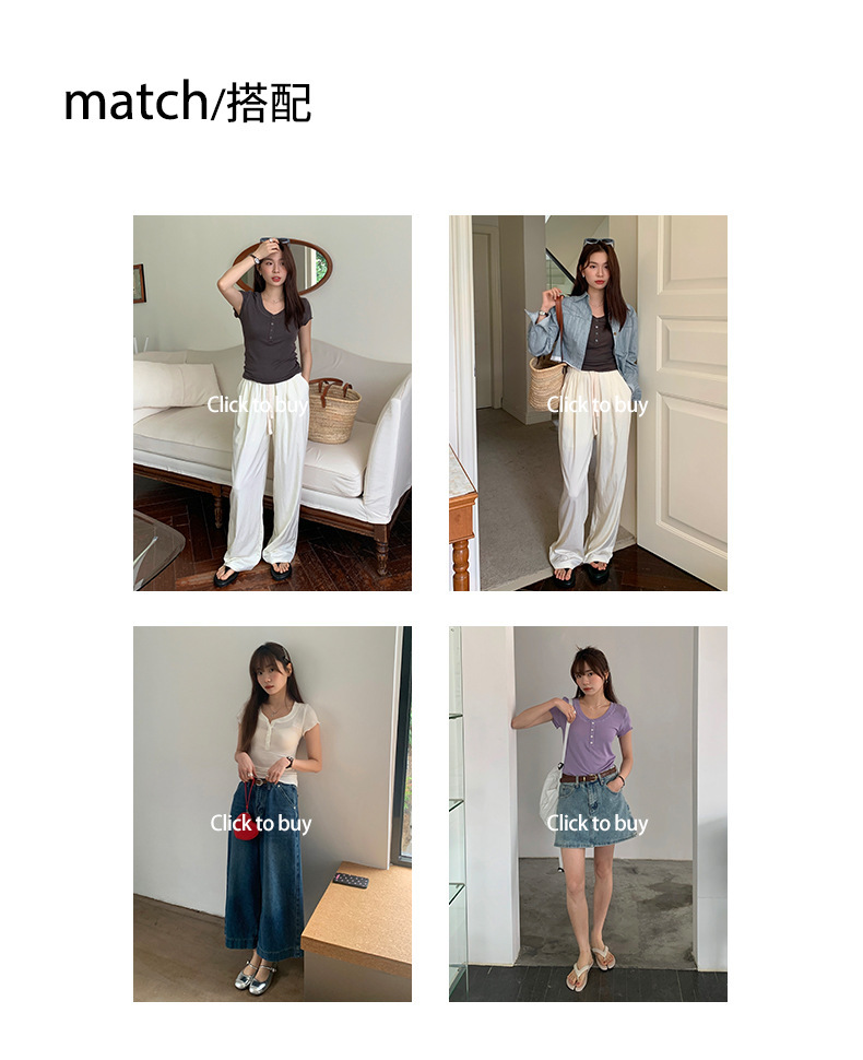 *o-ha-you*【FHZ142TH2003】高級感木耳邊天絲短袖T恤2024夏季韓版顯瘦內搭上衣-5色-如有需要請先諮詢
