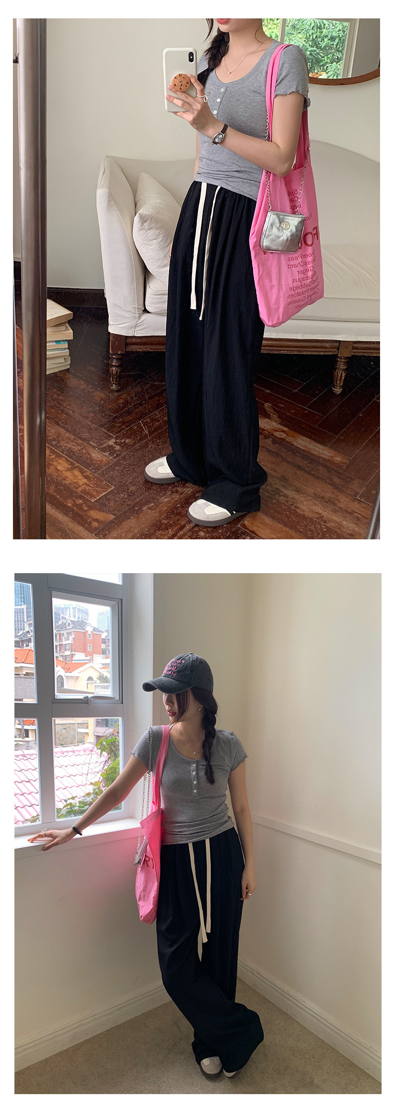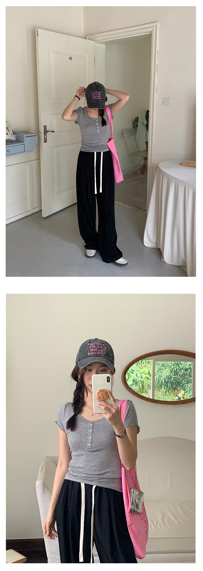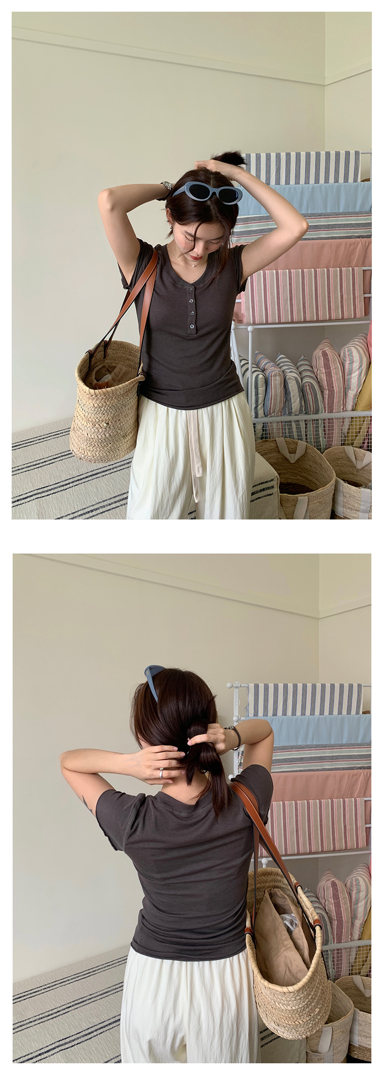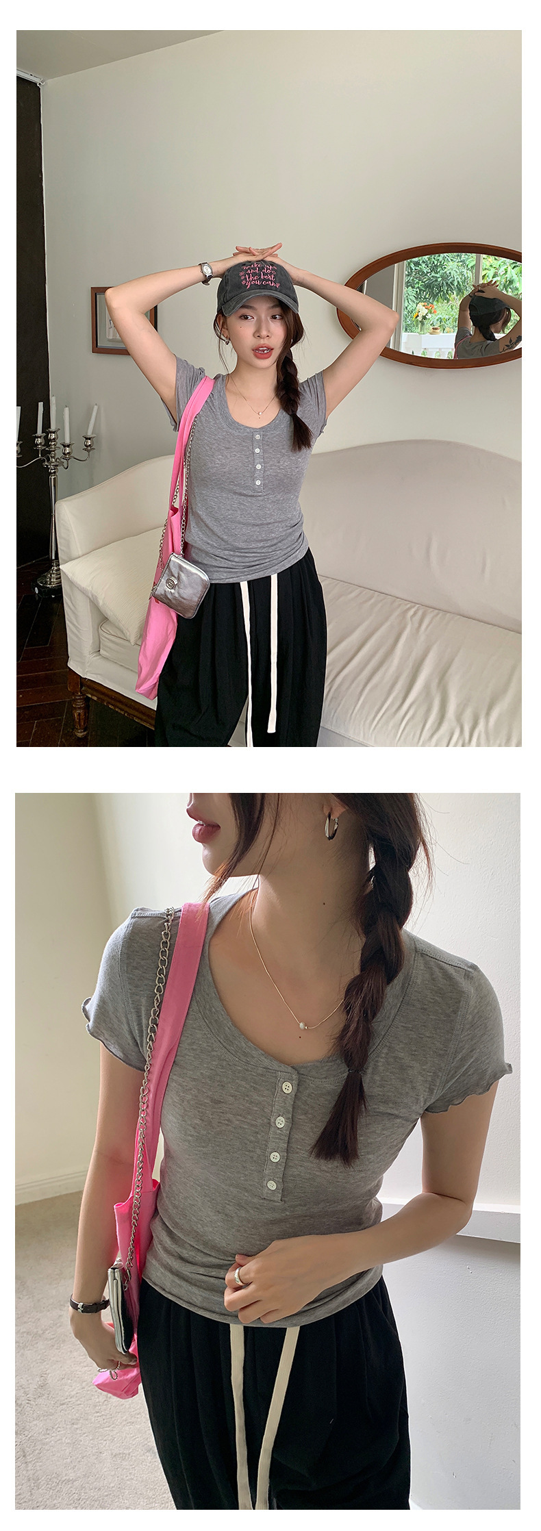 *o-ha-you*【FHZ142TH2003】高級感木耳邊天絲短袖T恤2024夏季韓版顯瘦內搭上衣-5色-如有需要請先諮詢