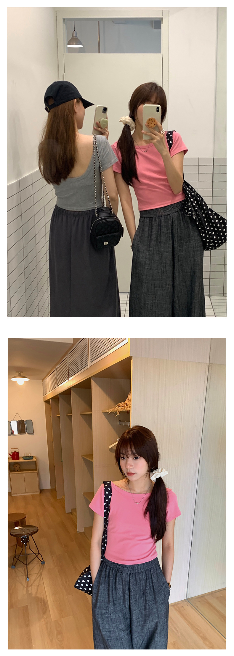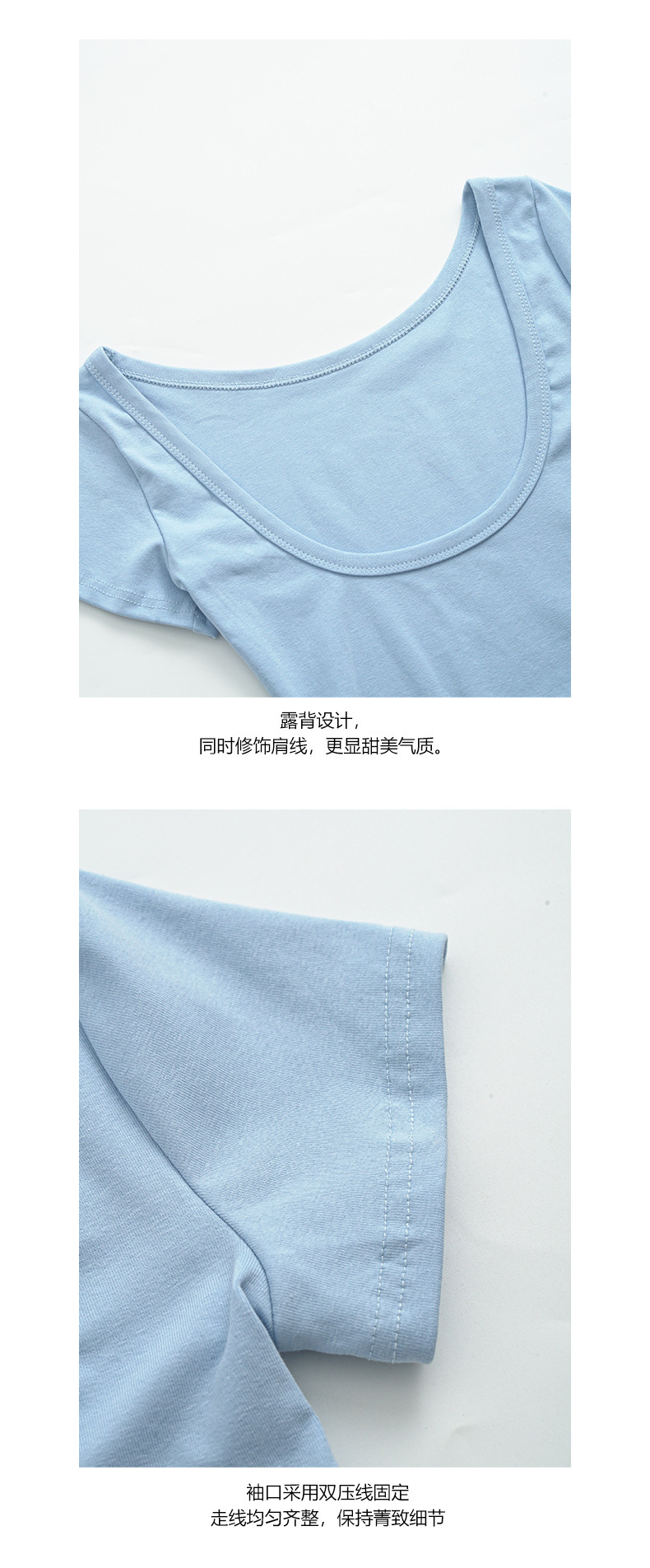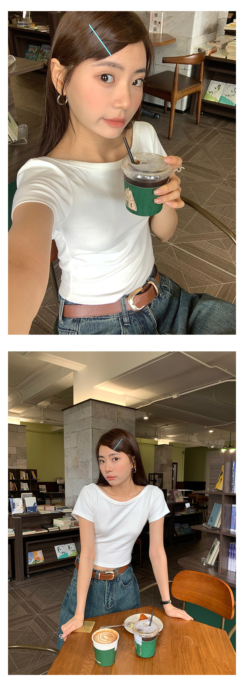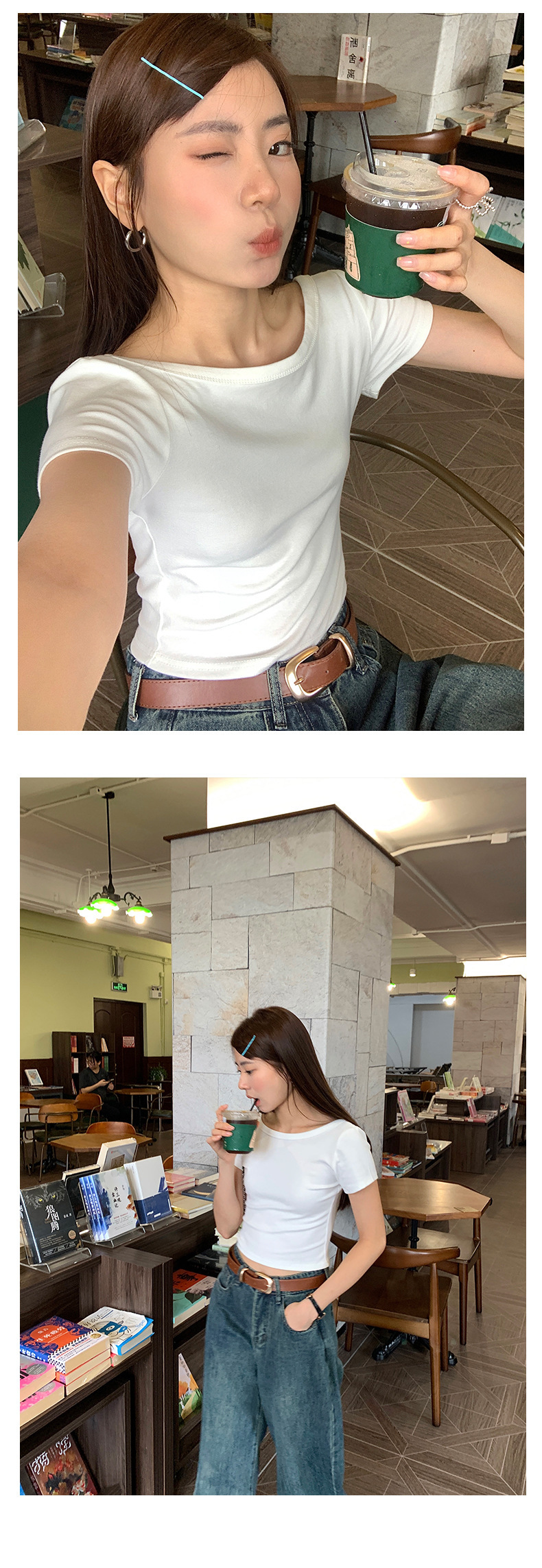 *o-ha-you*【FHZ142TH4043】辣妹風U領短款正肩T恤2024夏季修身顯瘦內搭短袖上衣-5色