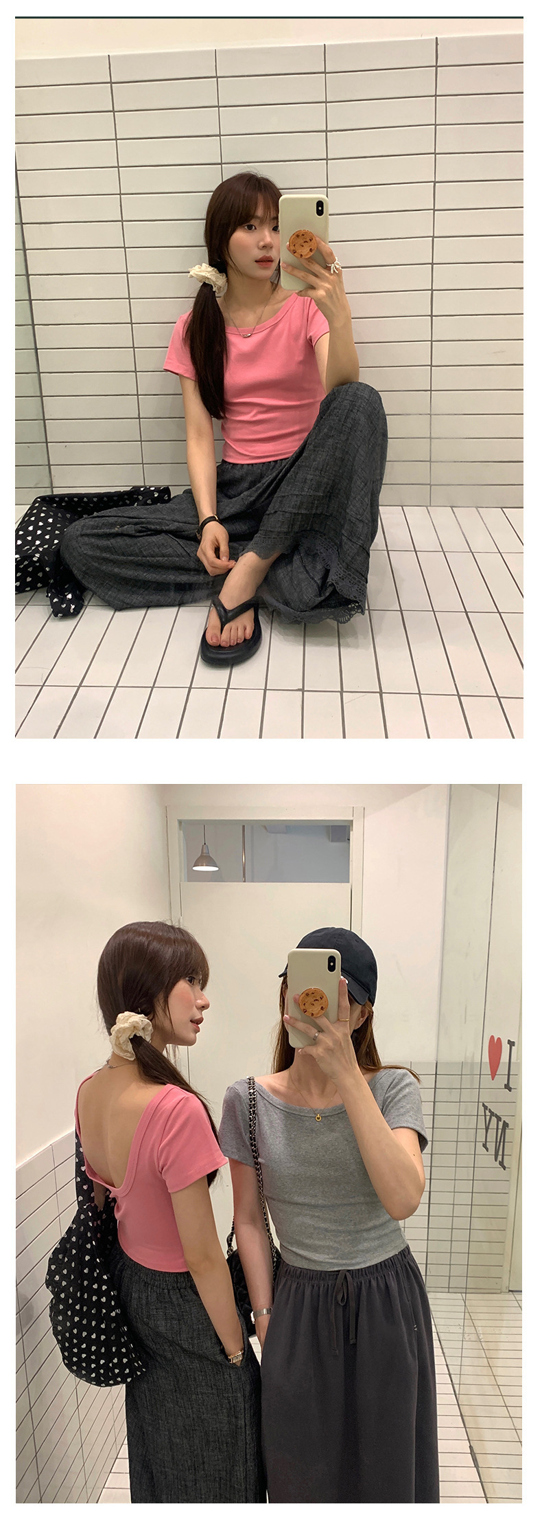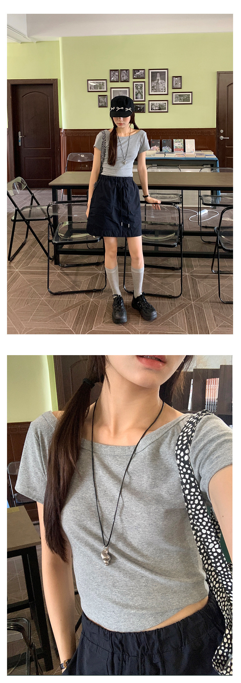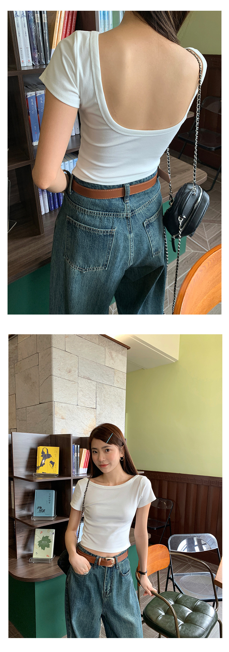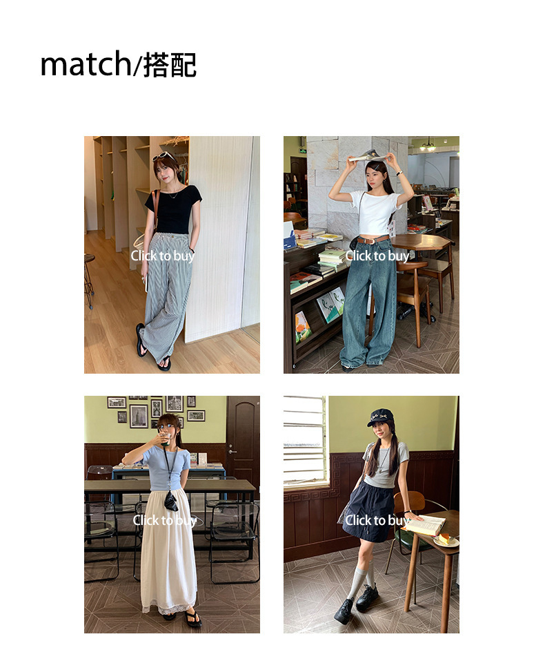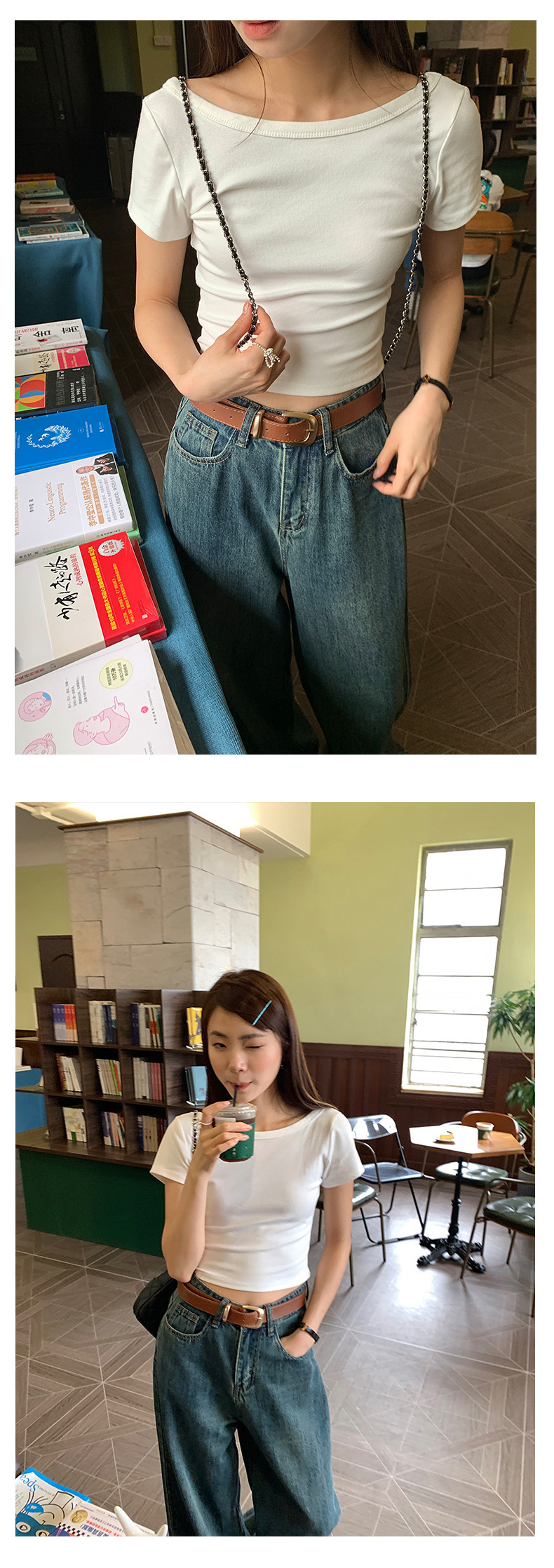 *o-ha-you*【FHZ142TH4043】辣妹風U領短款正肩T恤2024夏季修身顯瘦內搭短袖上衣-5色