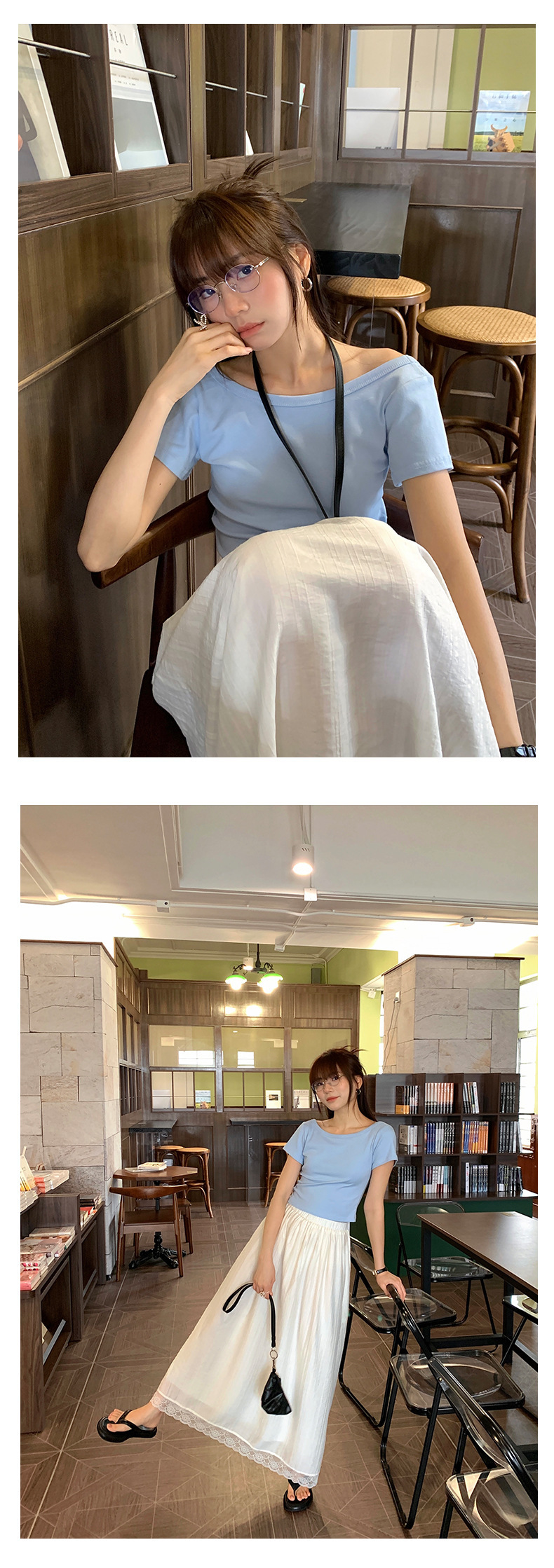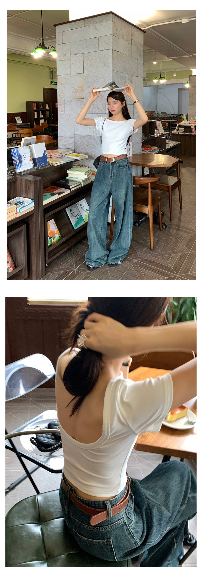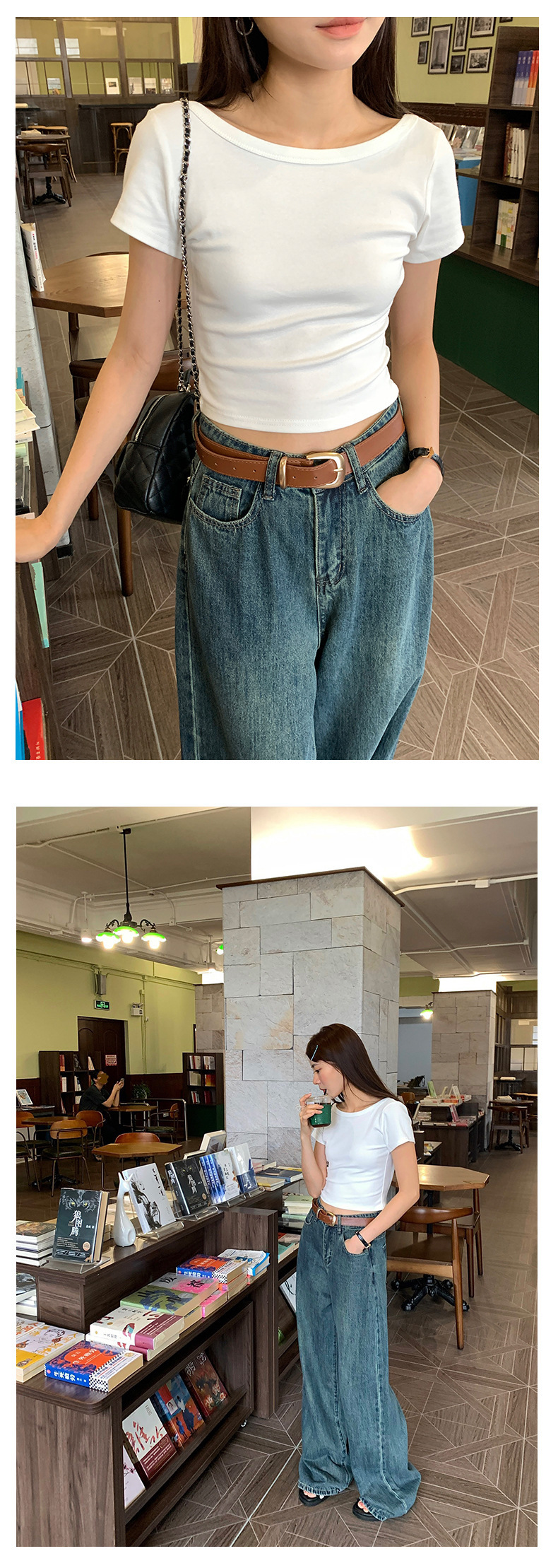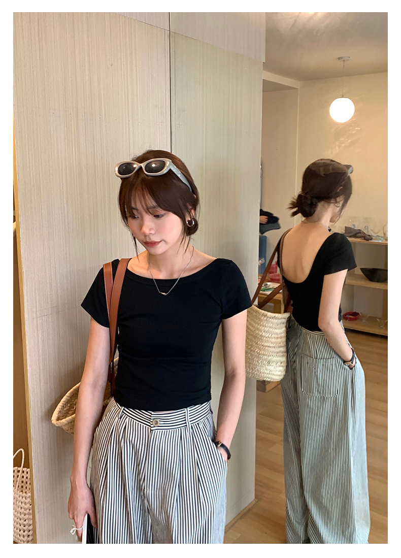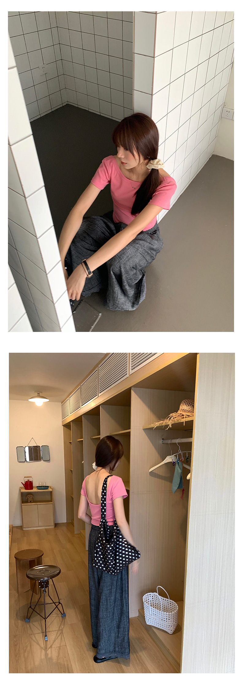 *o-ha-you*【FHZ142TH4043】辣妹風U領短款正肩T恤2024夏季修身顯瘦內搭短袖上衣-5色