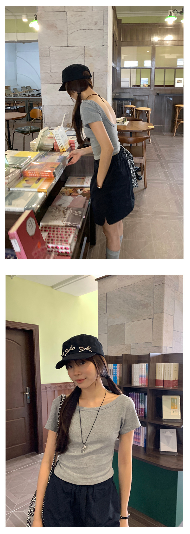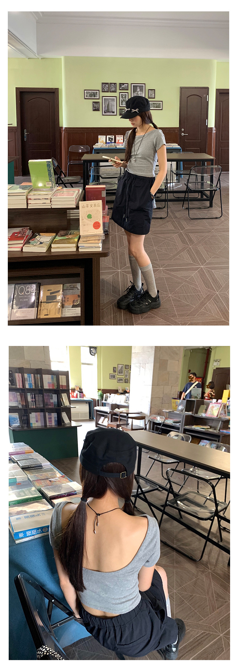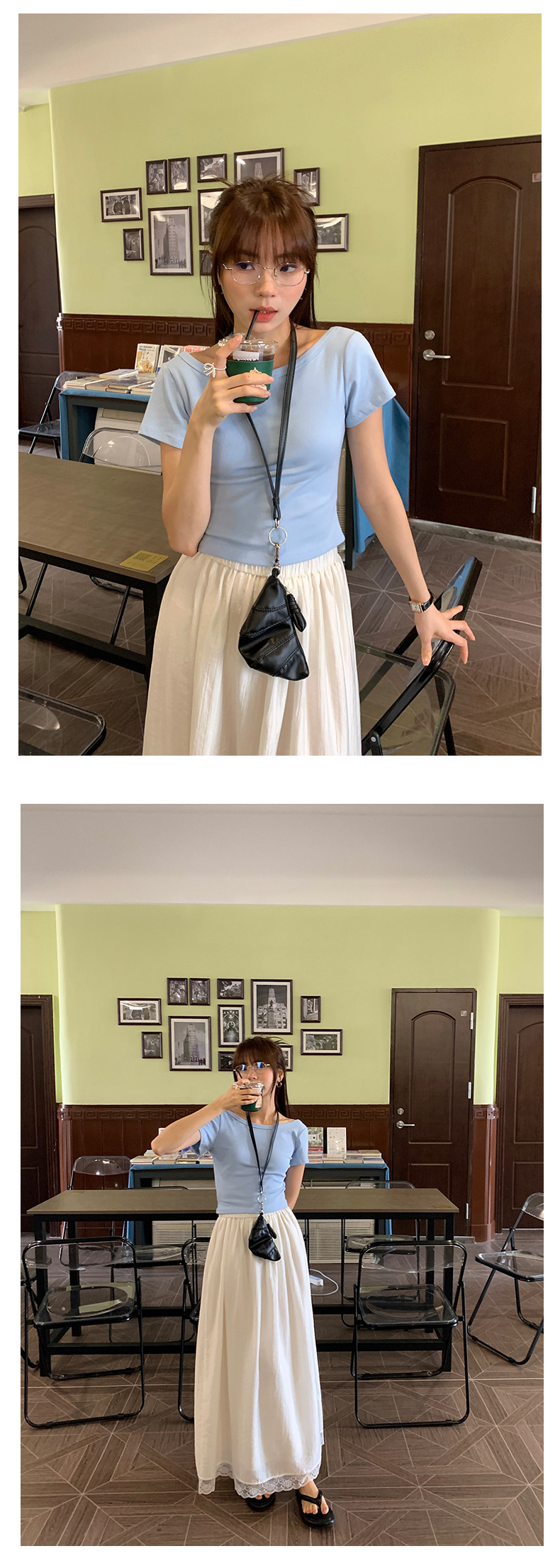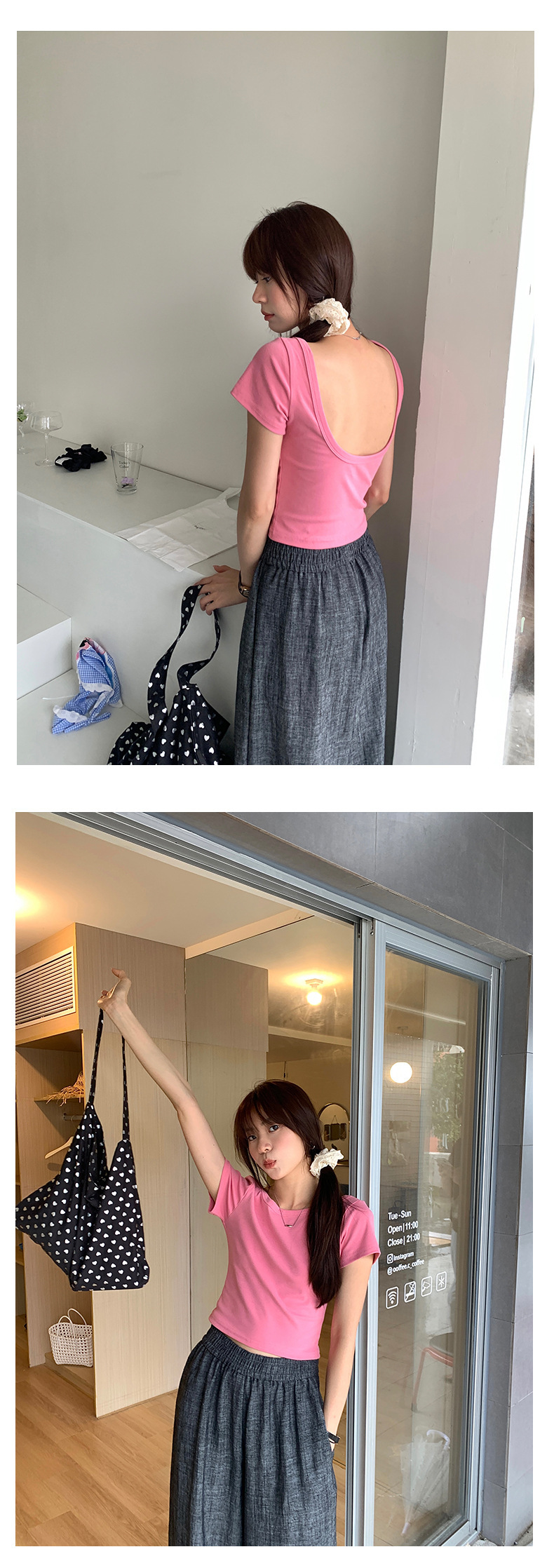 *o-ha-you*【FHZ142TH4043】辣妹風U領短款正肩T恤2024夏季修身顯瘦內搭短袖上衣-5色