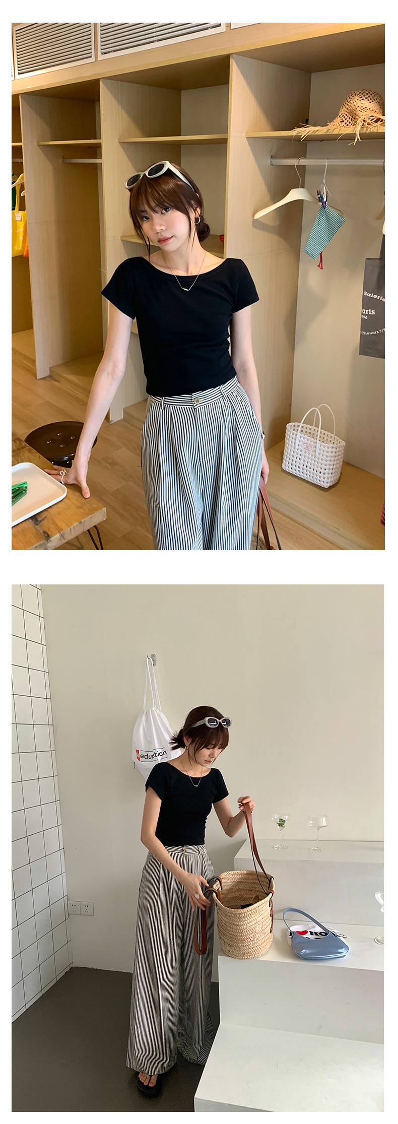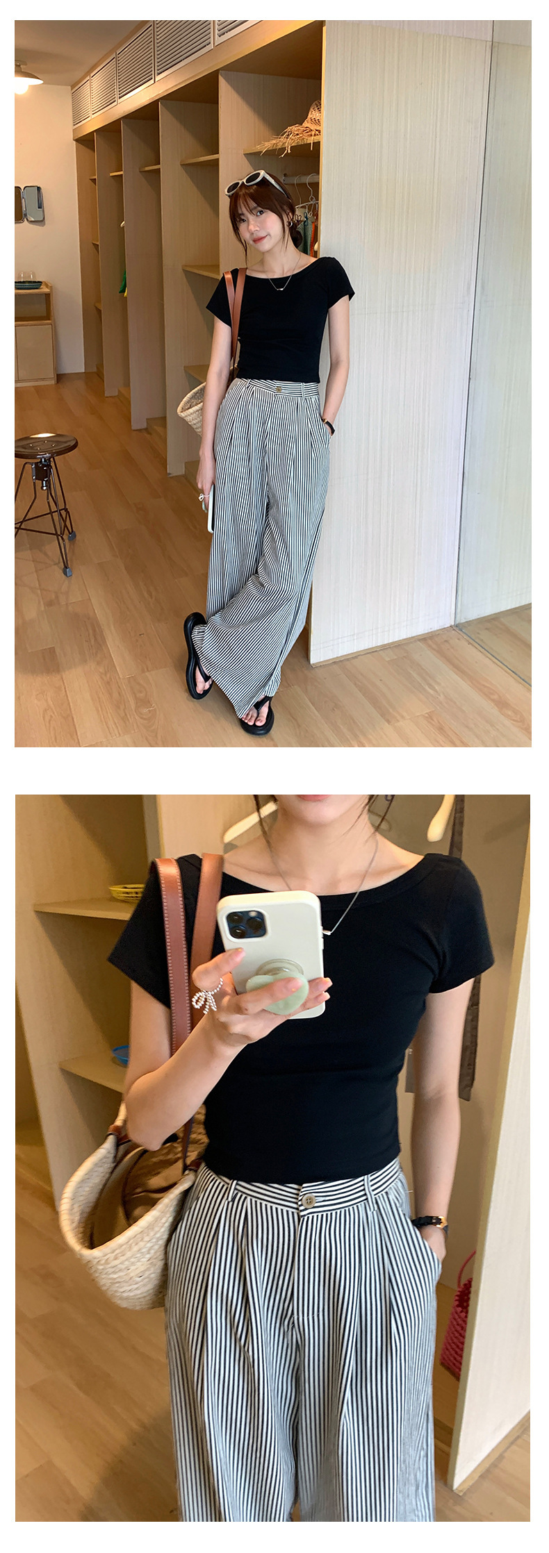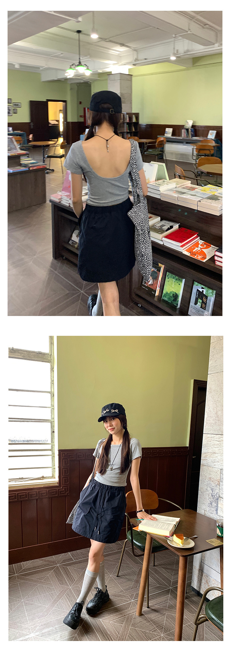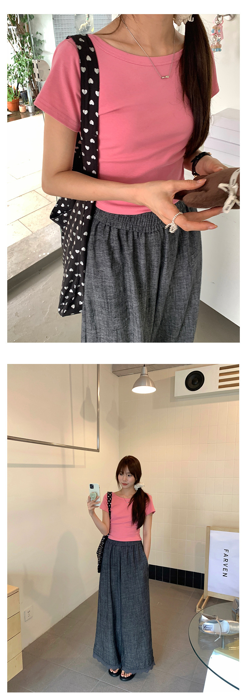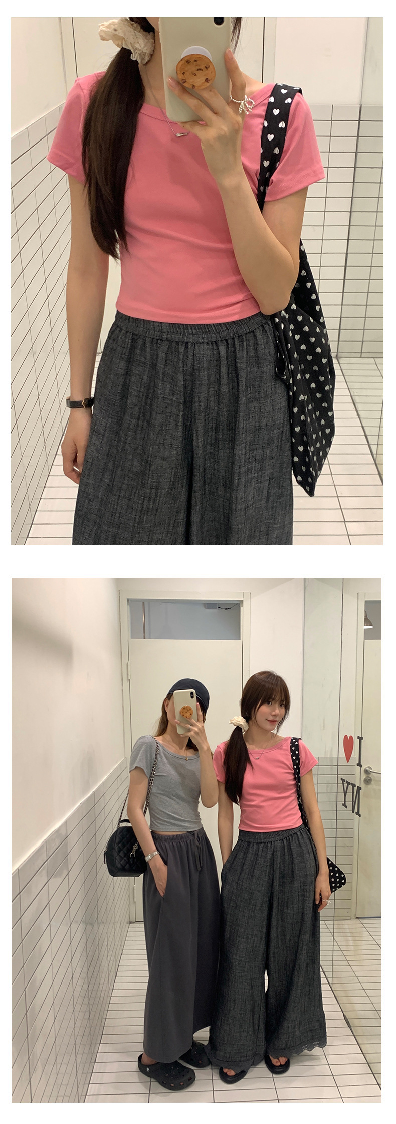 *o-ha-you*【FHZ142TH4043】辣妹風U領短款正肩T恤2024夏季修身顯瘦內搭短袖上衣-5色