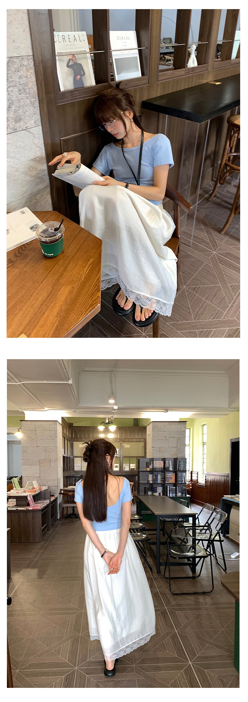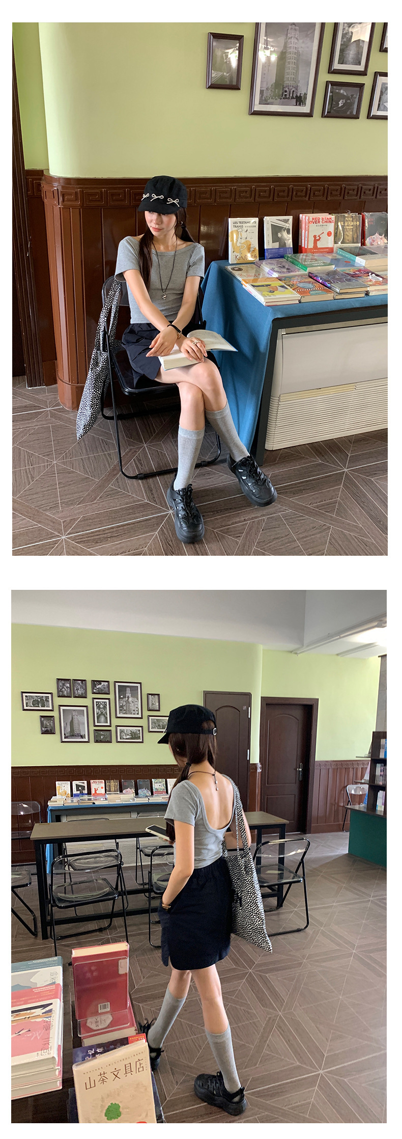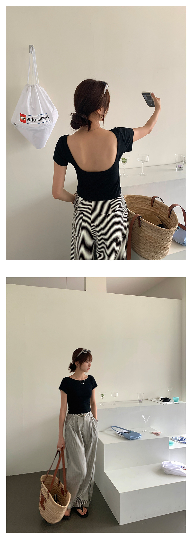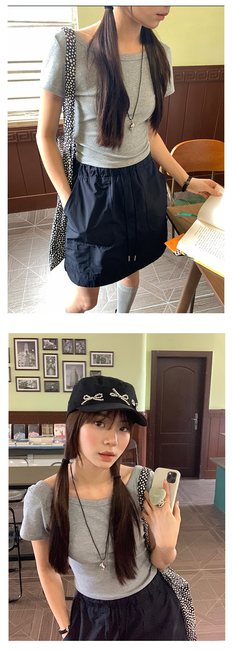 *o-ha-you*【FHZ142TH4043】辣妹風U領短款正肩T恤2024夏季修身顯瘦內搭短袖上衣-5色