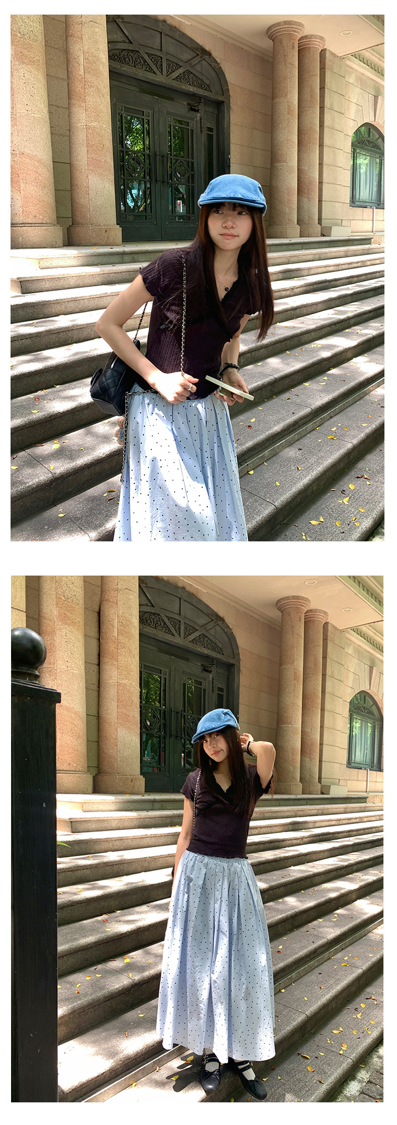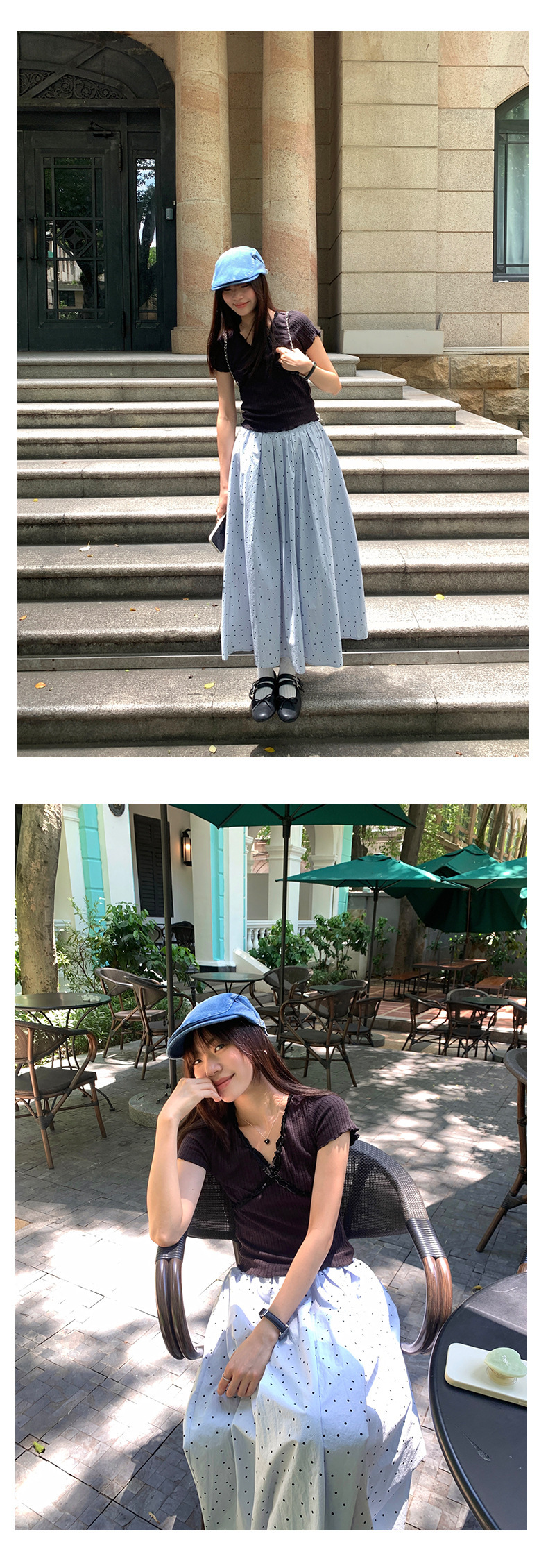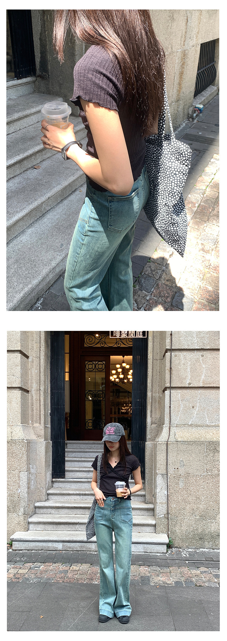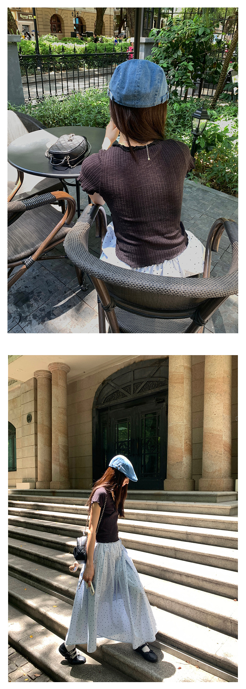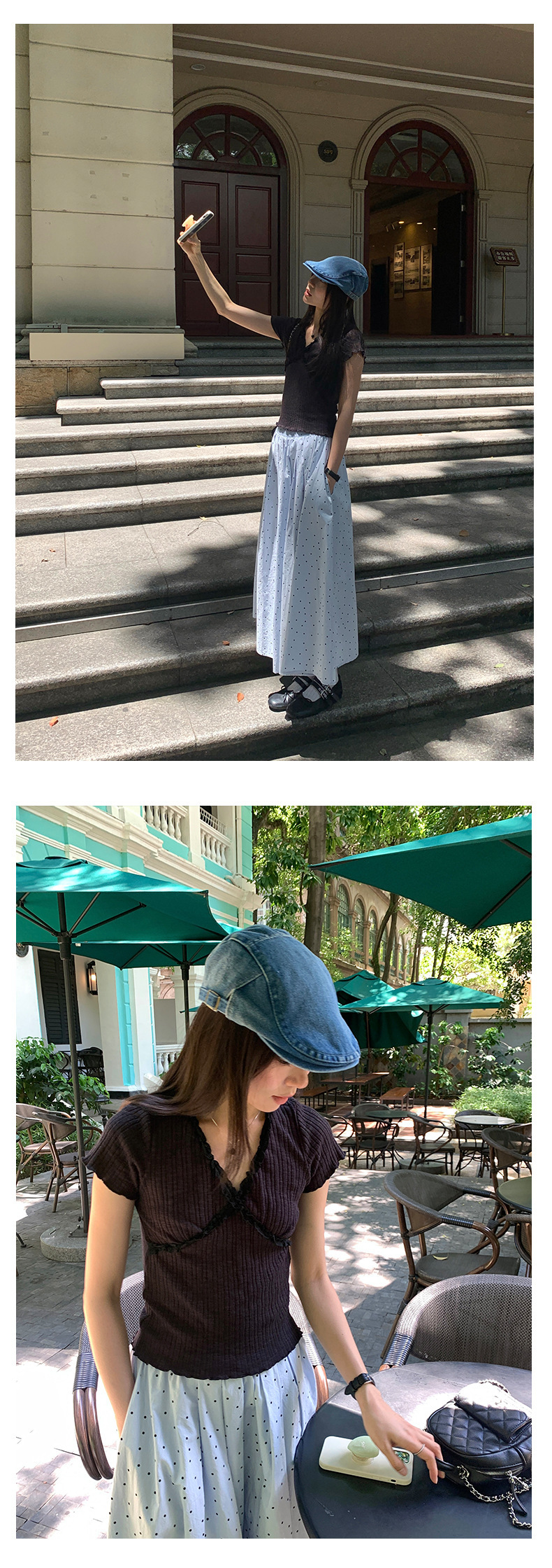 *o-ha-you*【FHZ142TH5069】甜美V領木耳花邊短袖T恤2024夏季修身顯瘦短版上衣-4色