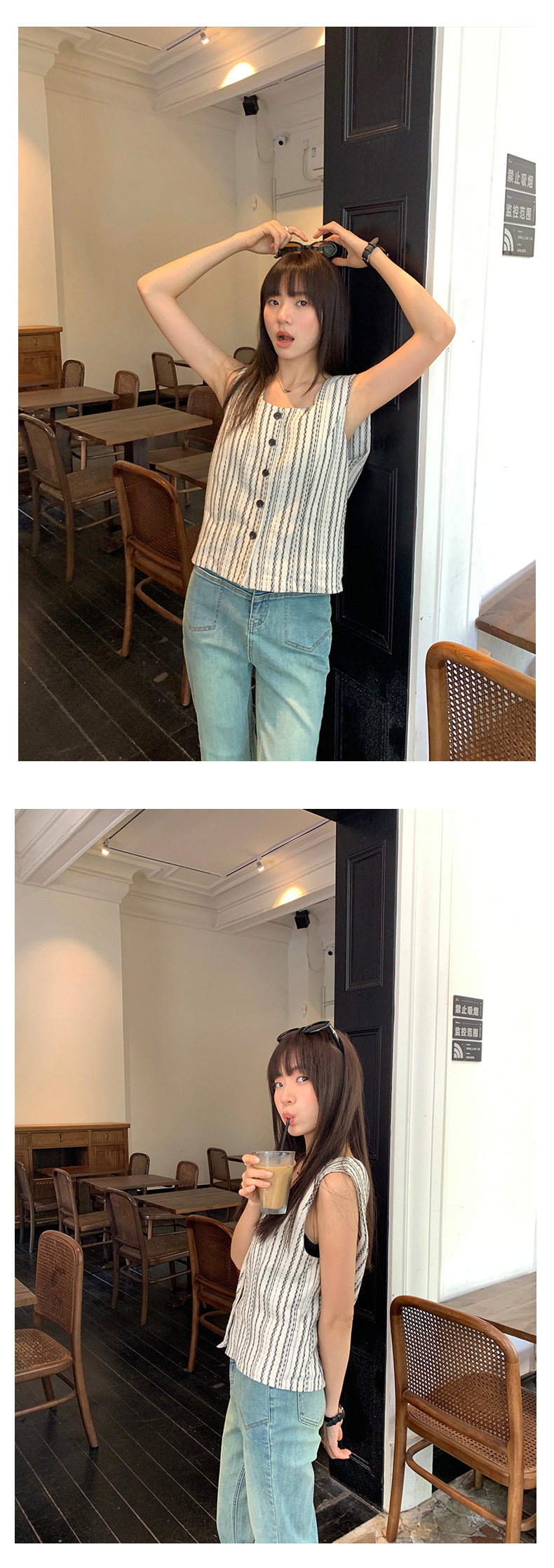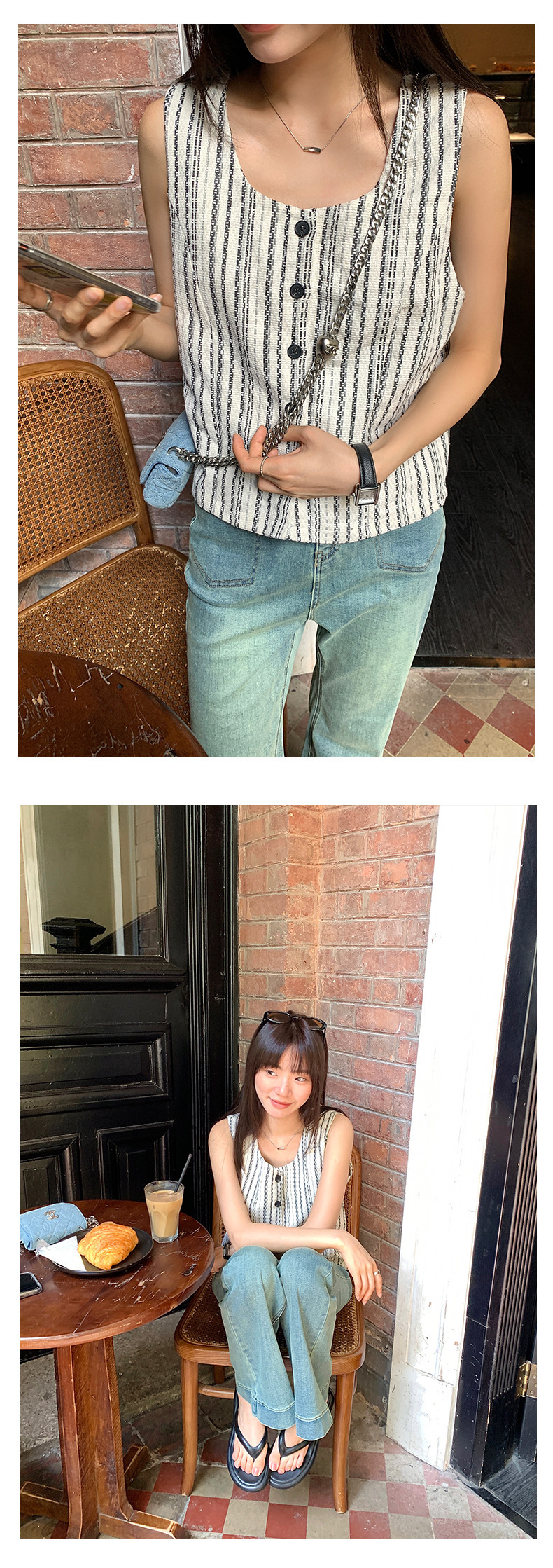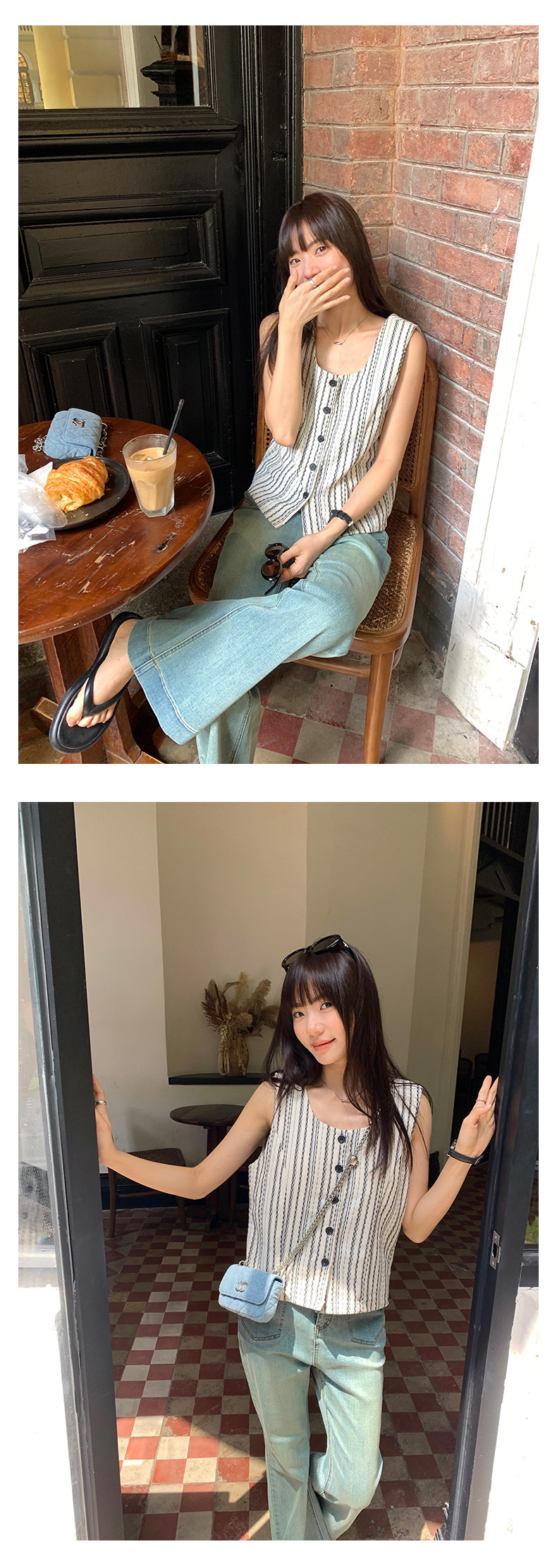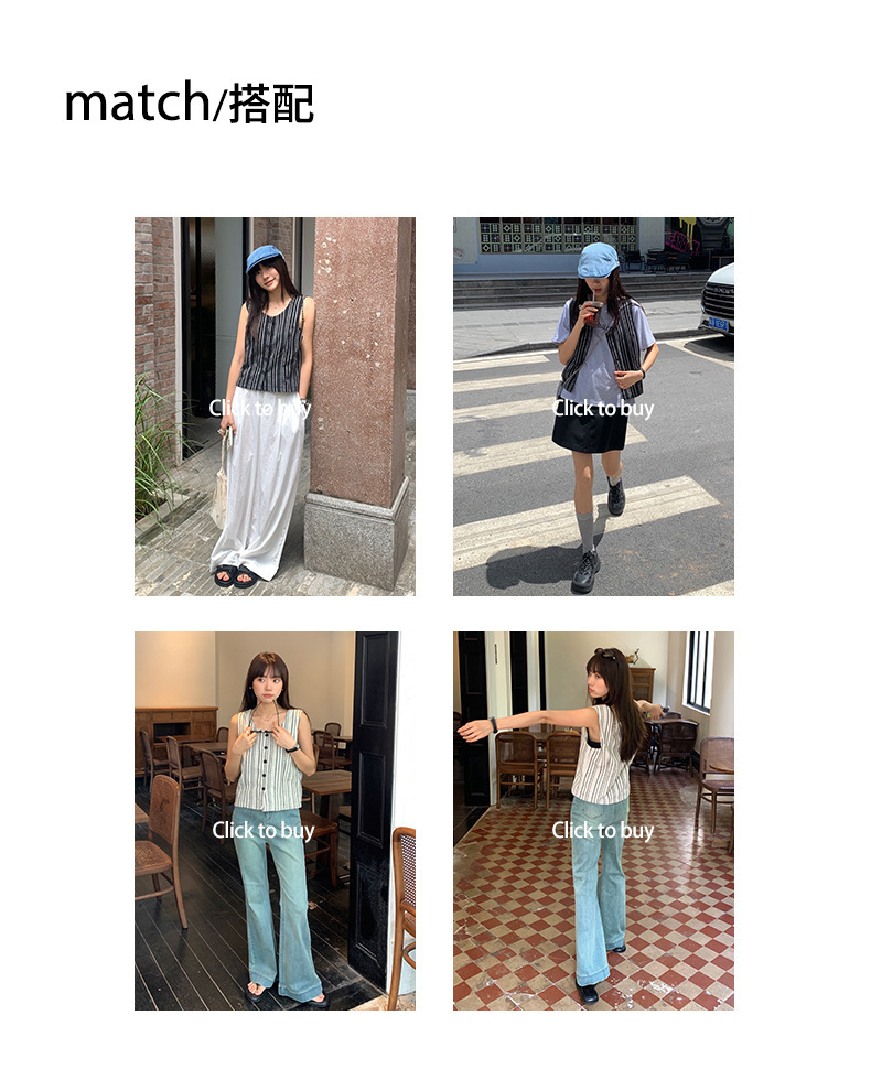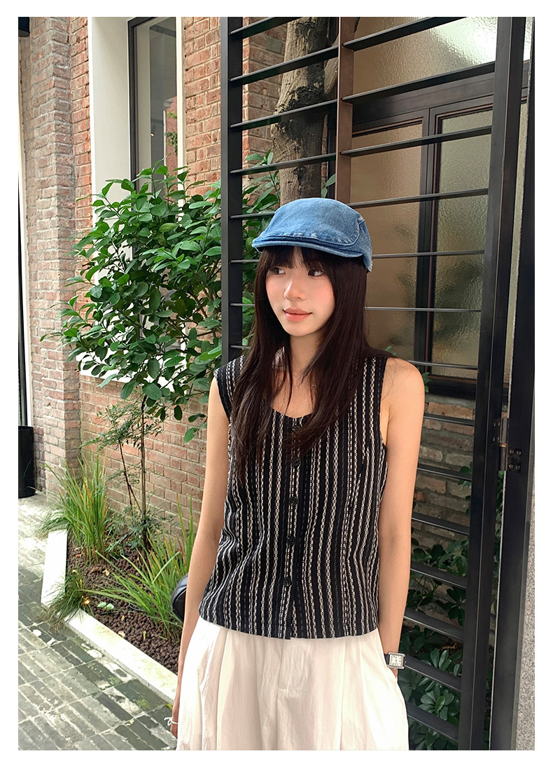 *o-ha-you*【FHZ142WH5068】老錢風條紋馬甲背心2024夏季休閒無袖外搭開襟上衣-2色