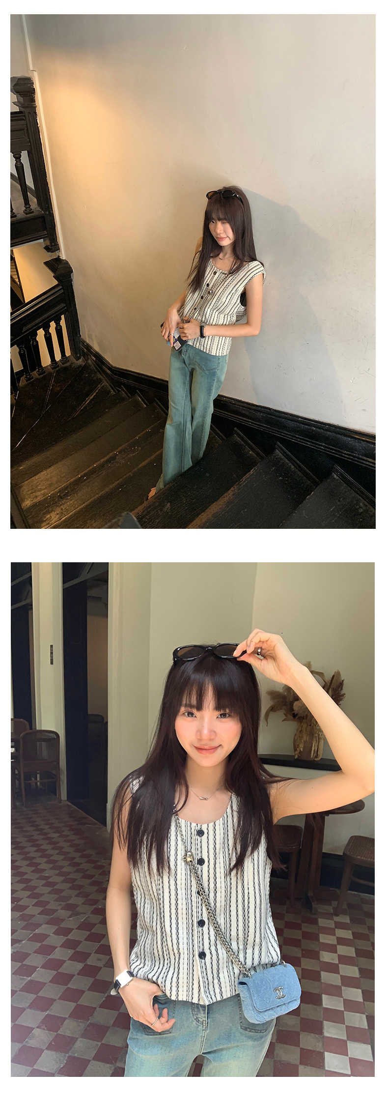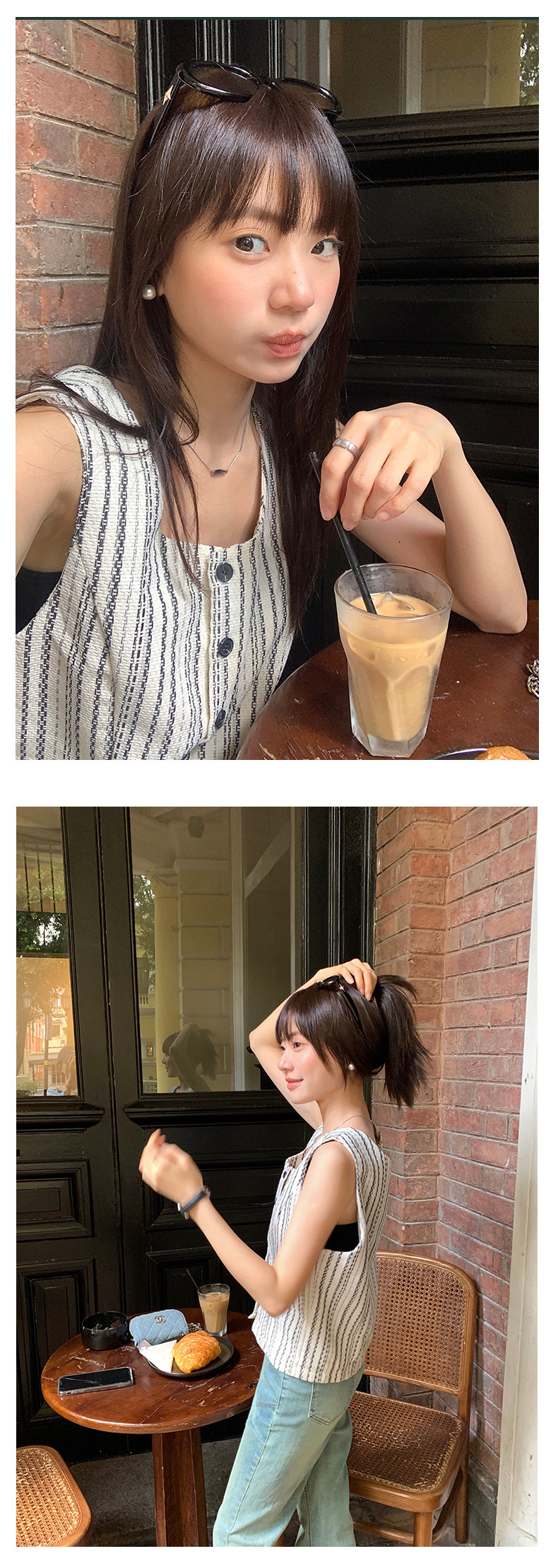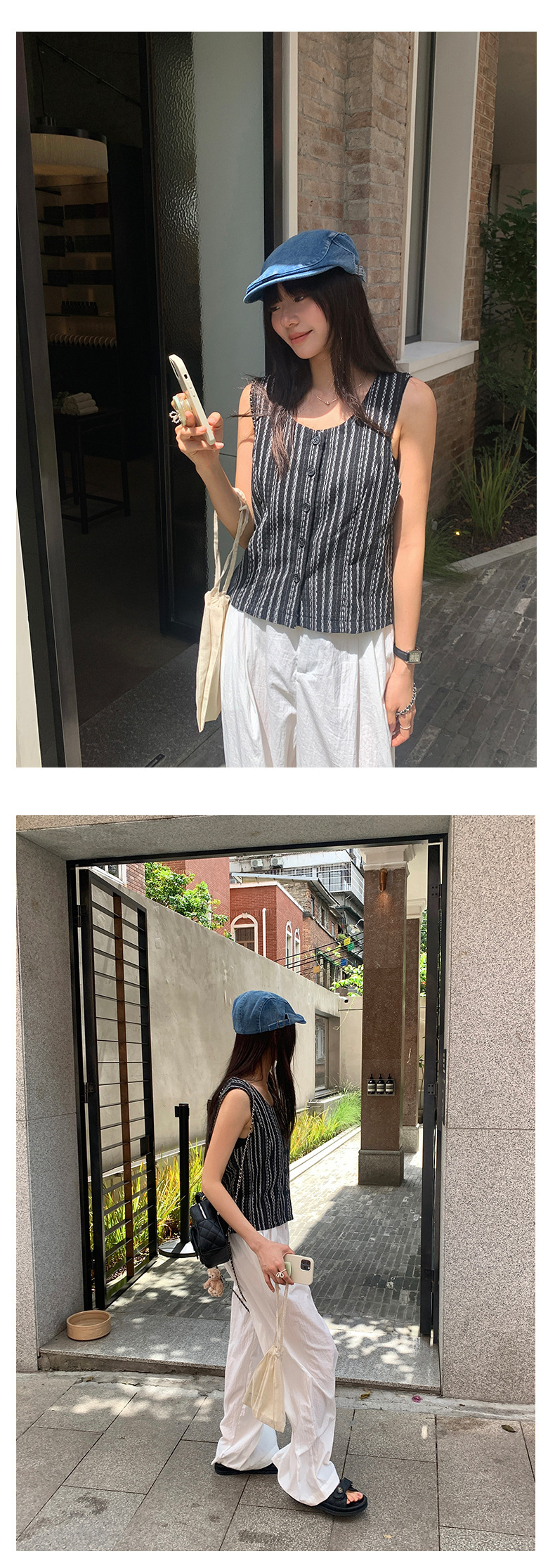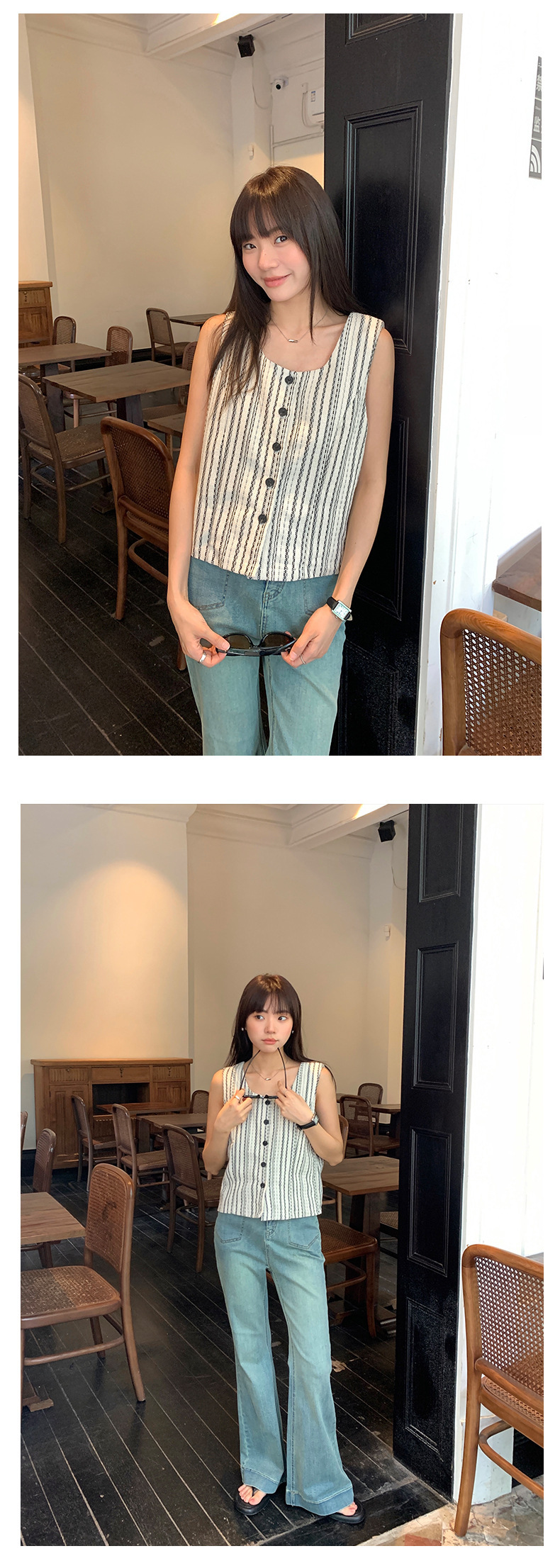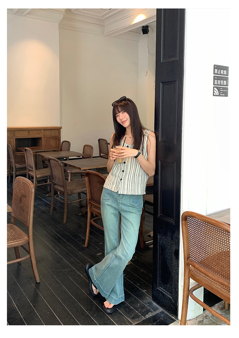 *o-ha-you*【FHZ142WH5068】老錢風條紋馬甲背心2024夏季休閒無袖外搭開襟上衣-2色