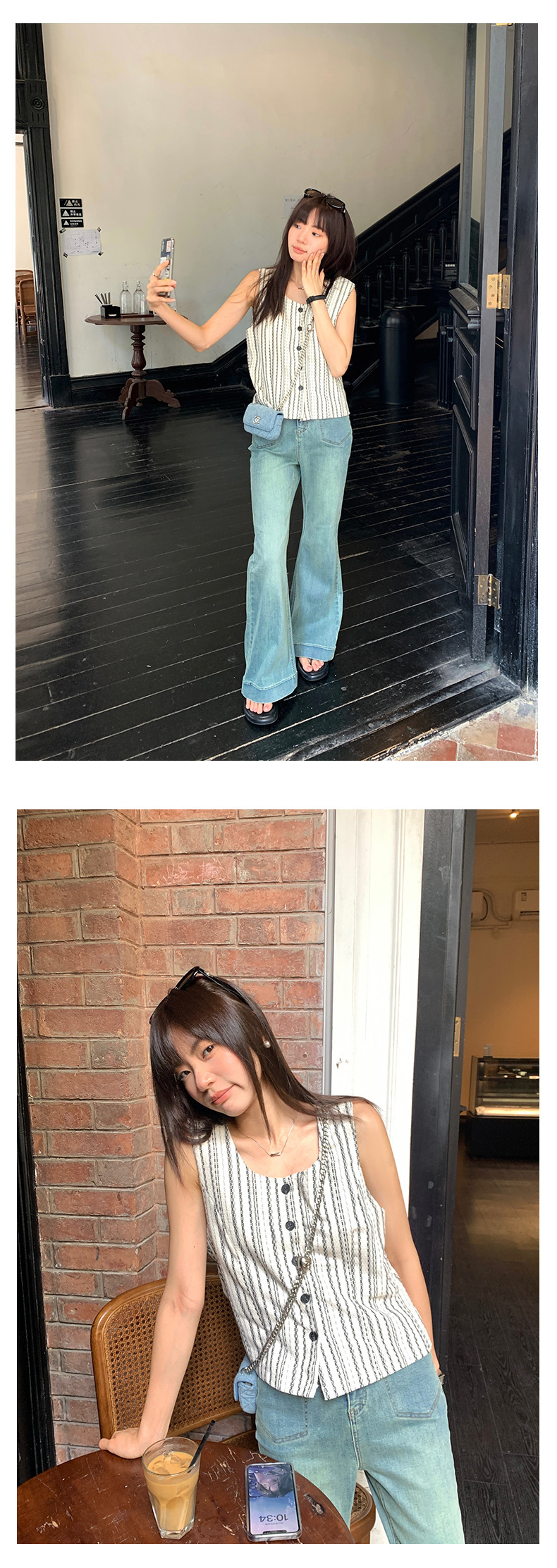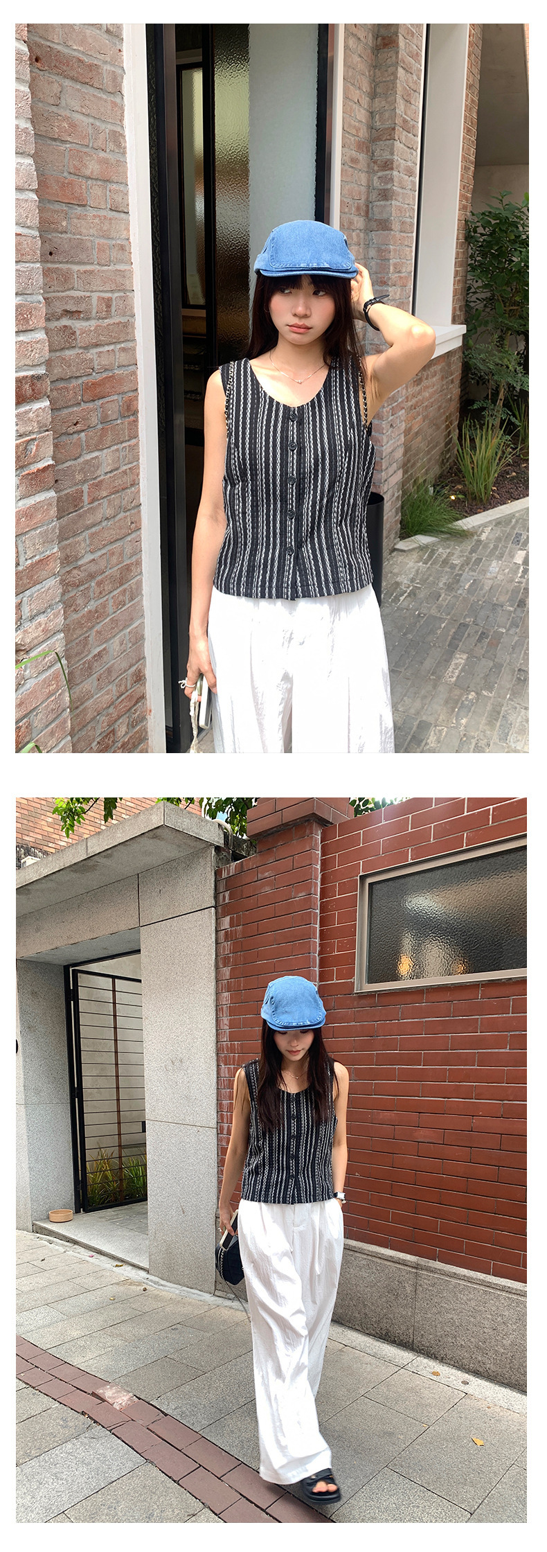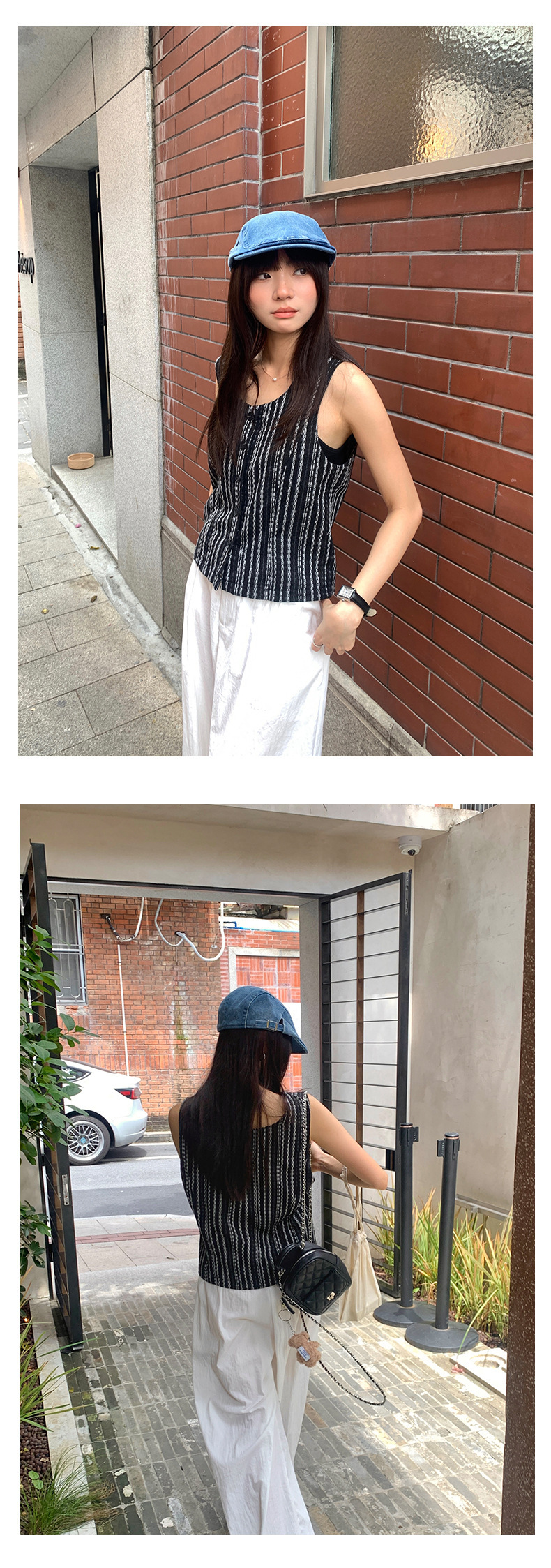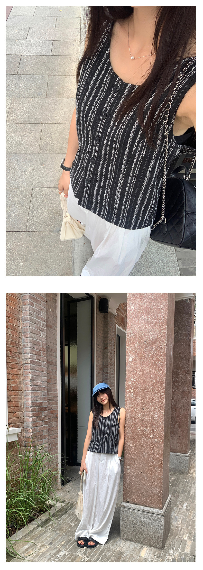 *o-ha-you*【FHZ142WH5068】老錢風條紋馬甲背心2024夏季休閒無袖外搭開襟上衣-2色
