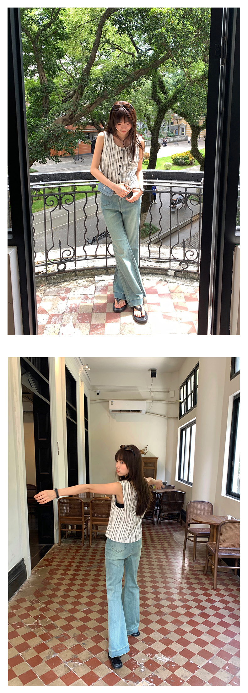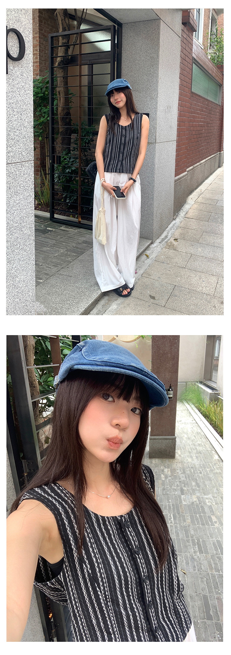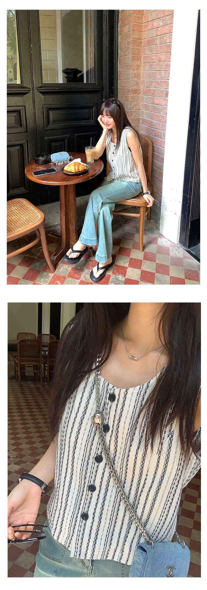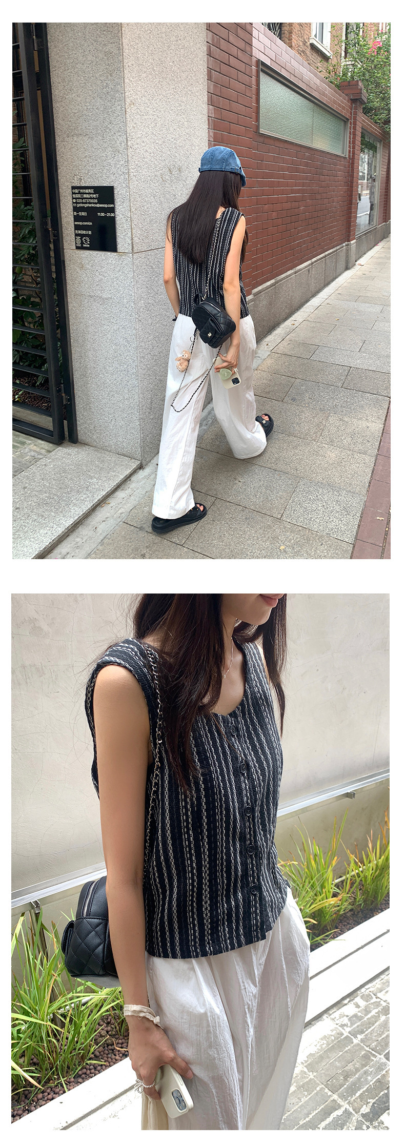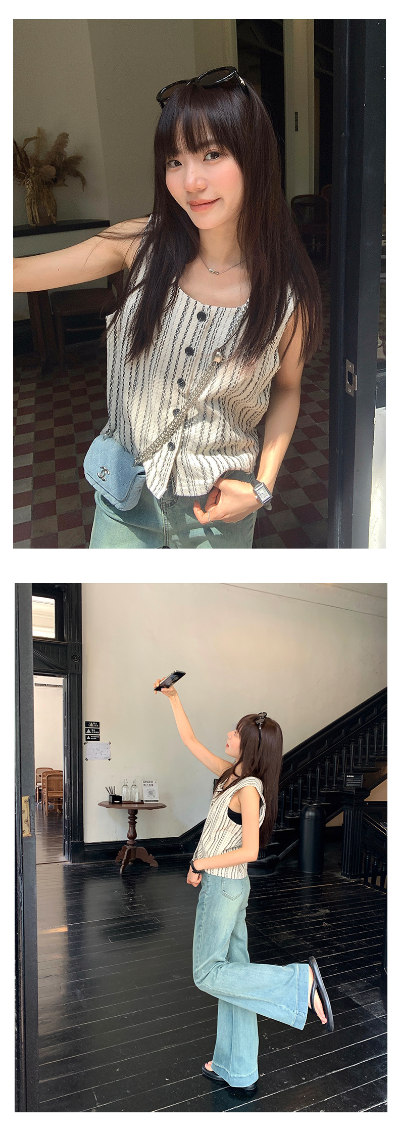 *o-ha-you*【FHZ142WH5068】老錢風條紋馬甲背心2024夏季休閒無袖外搭開襟上衣-2色