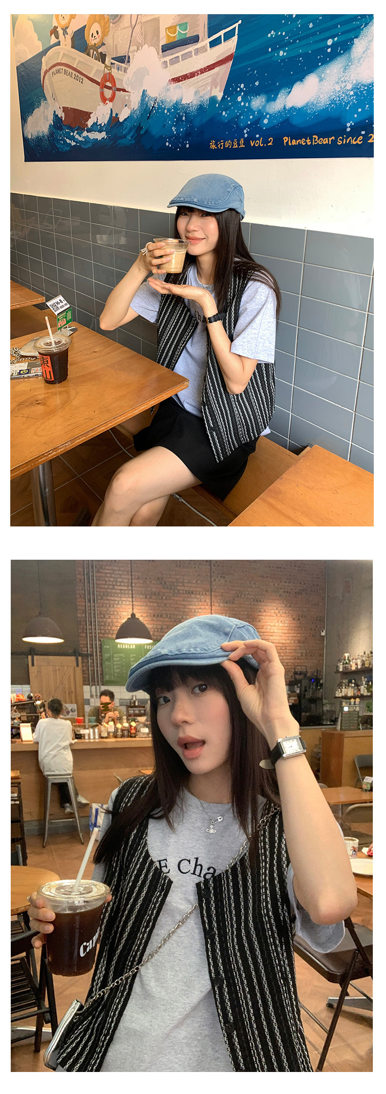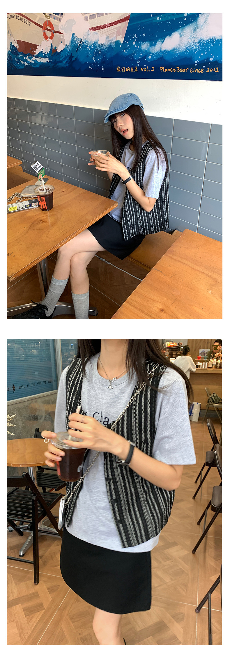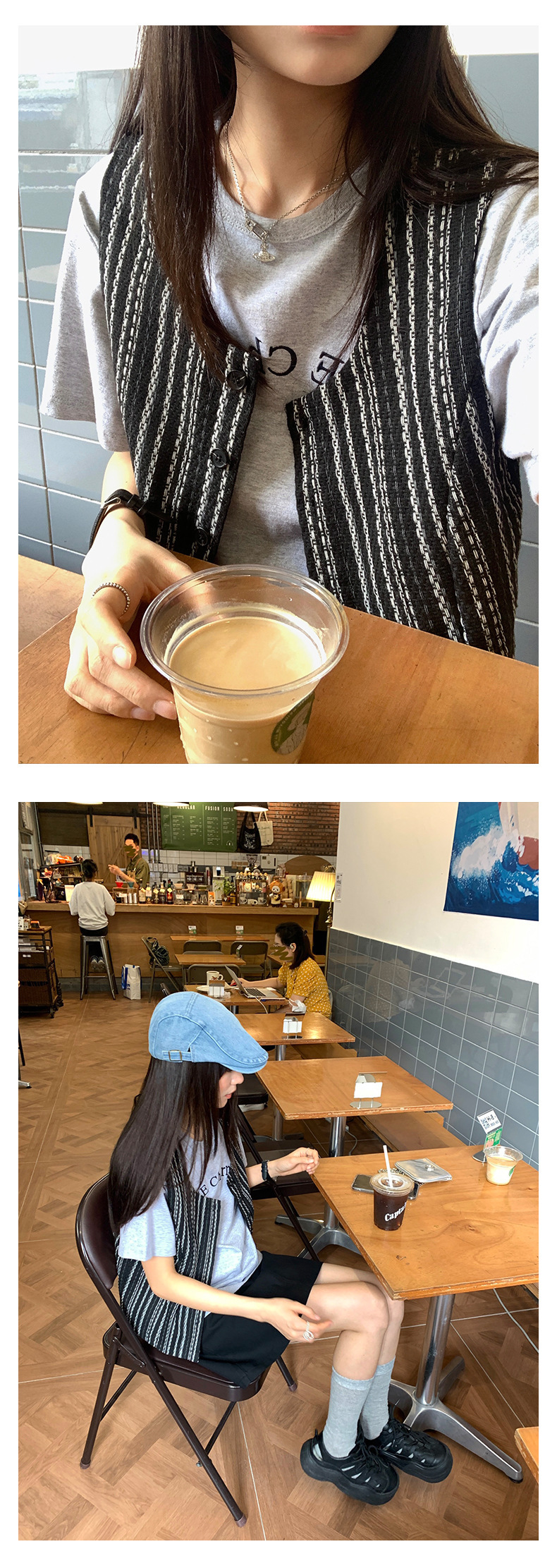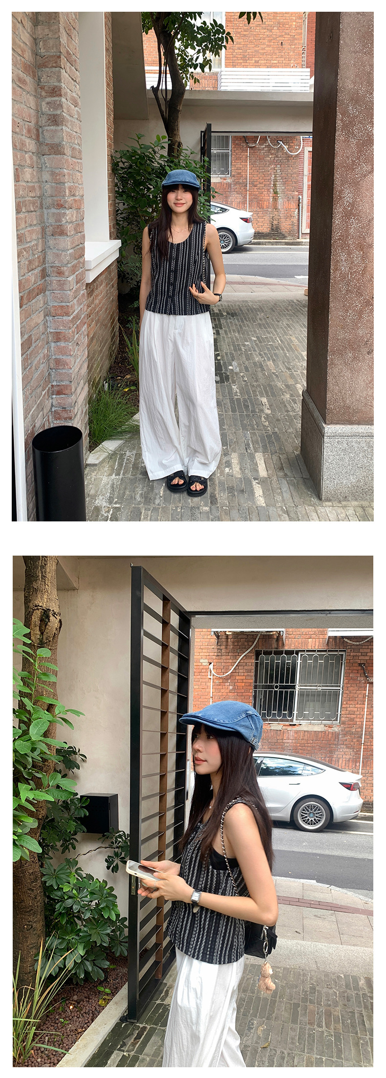 *o-ha-you*【FHZ142WH5068】老錢風條紋馬甲背心2024夏季休閒無袖外搭開襟上衣-2色