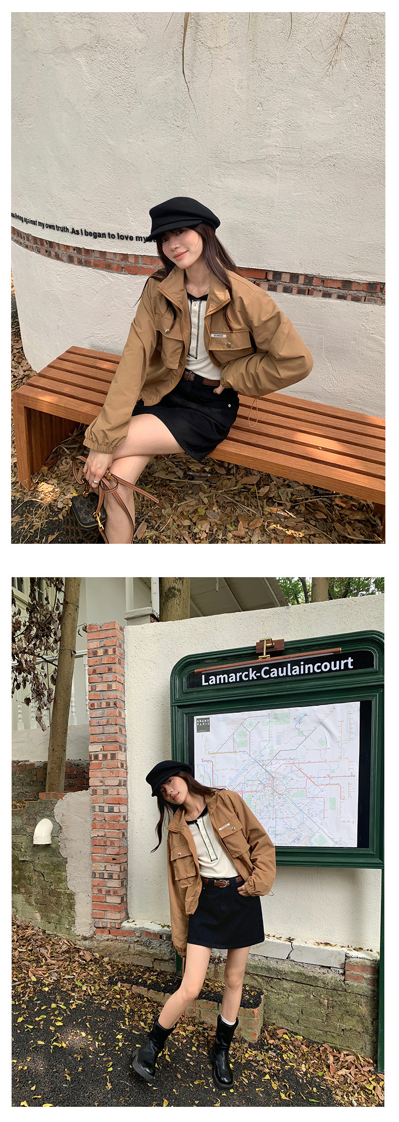 *o-ha-you*【FHZ143AY6042】高級感立領工裝拉鍊外套2024秋季韓版休閒短款上衣-2色-如有需要請先諮詢