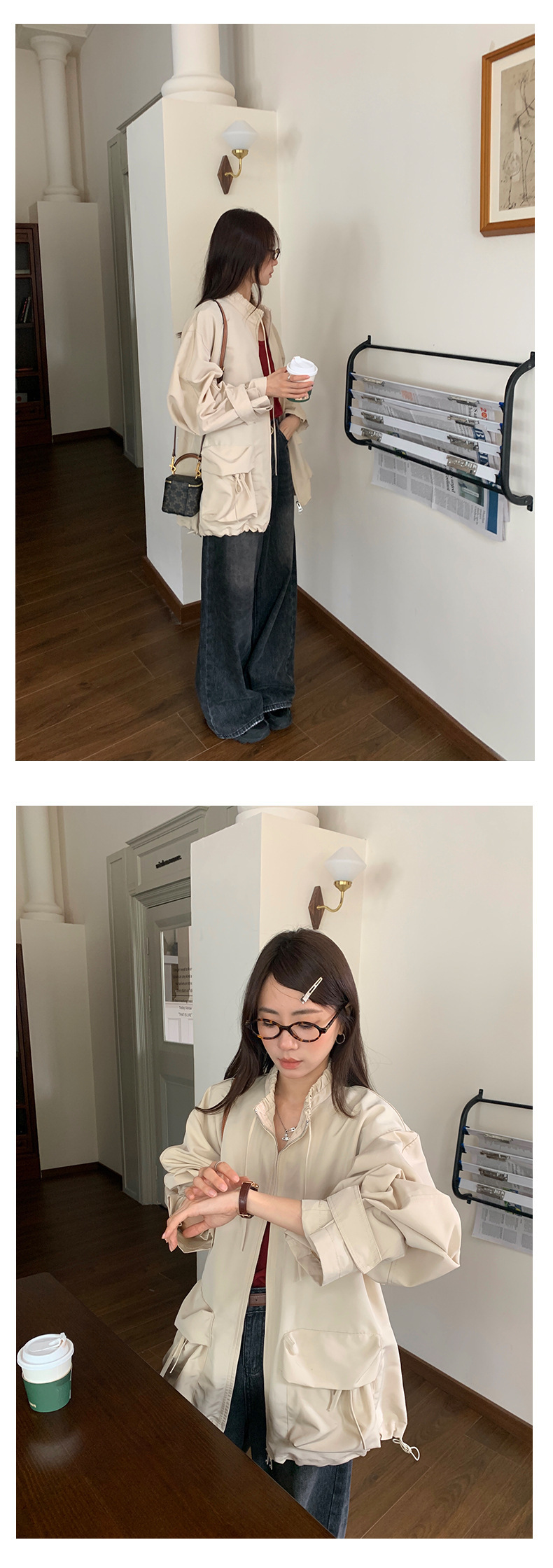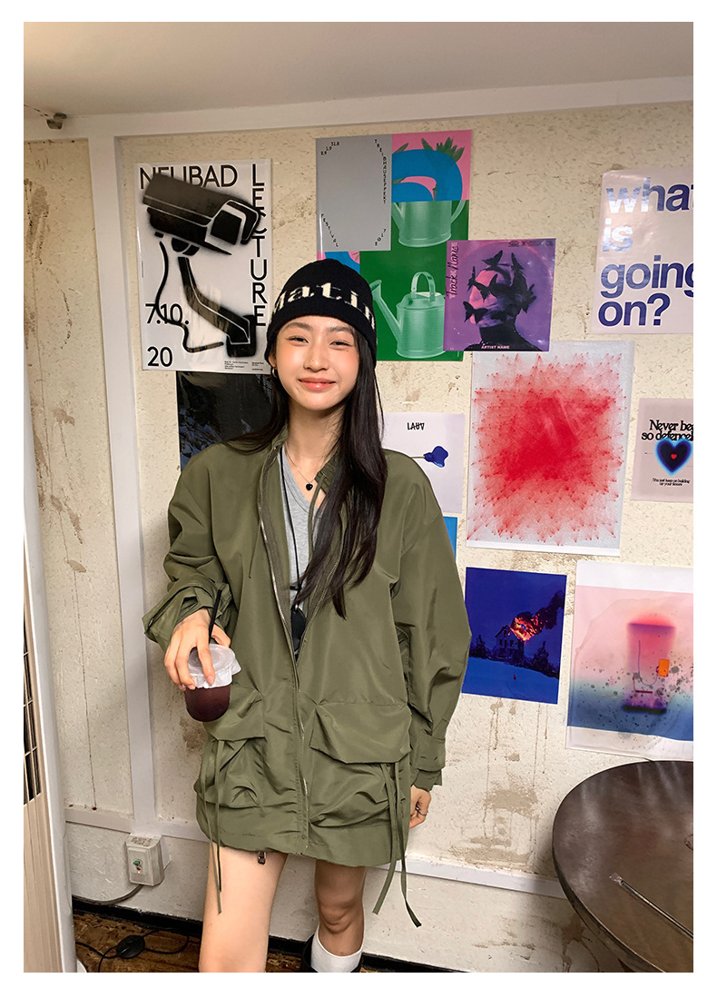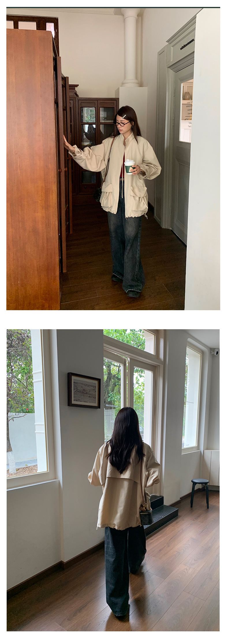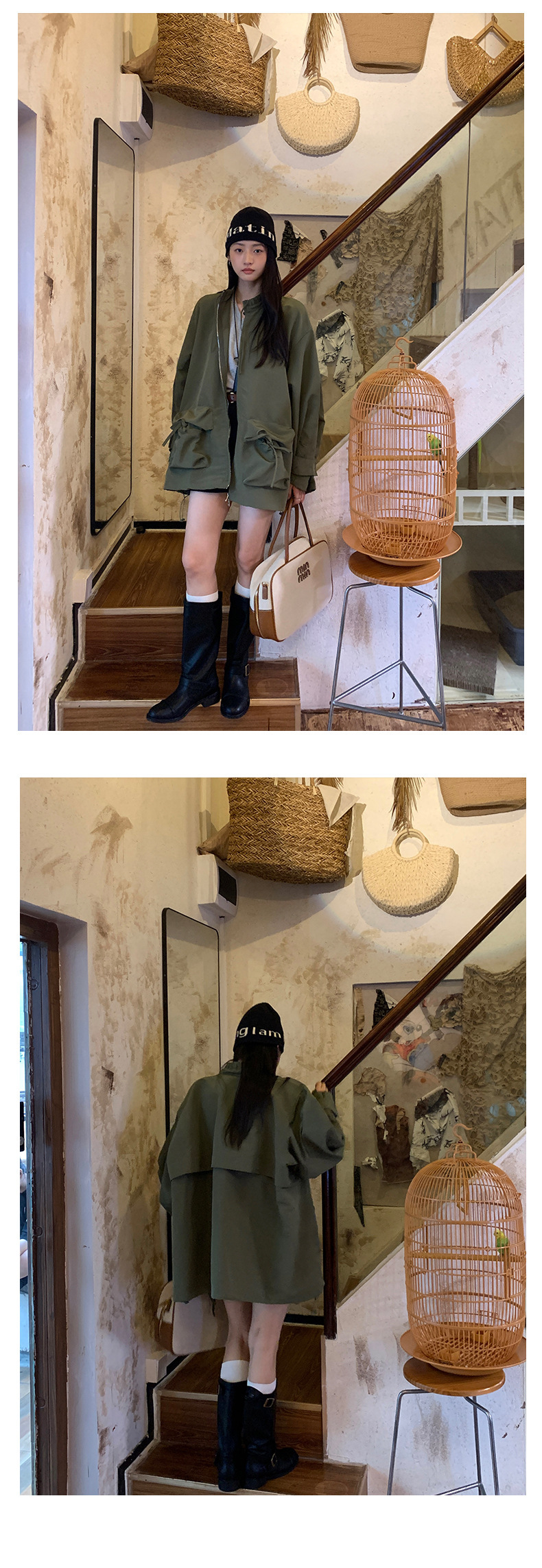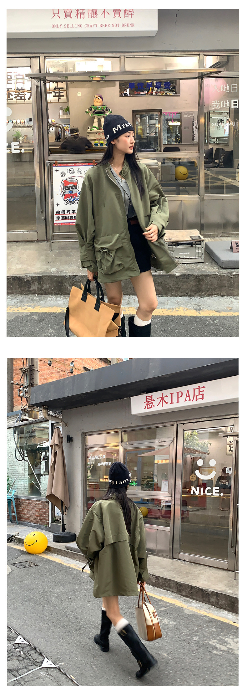 *o-ha-you*【FHZ143AY6084】復古抽繩立領工裝風衣外套2024秋寬鬆休閒薄款上衣-2色