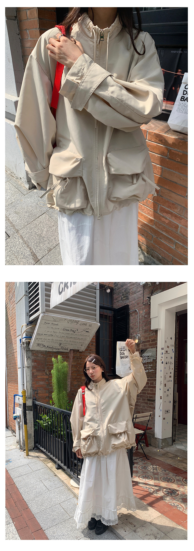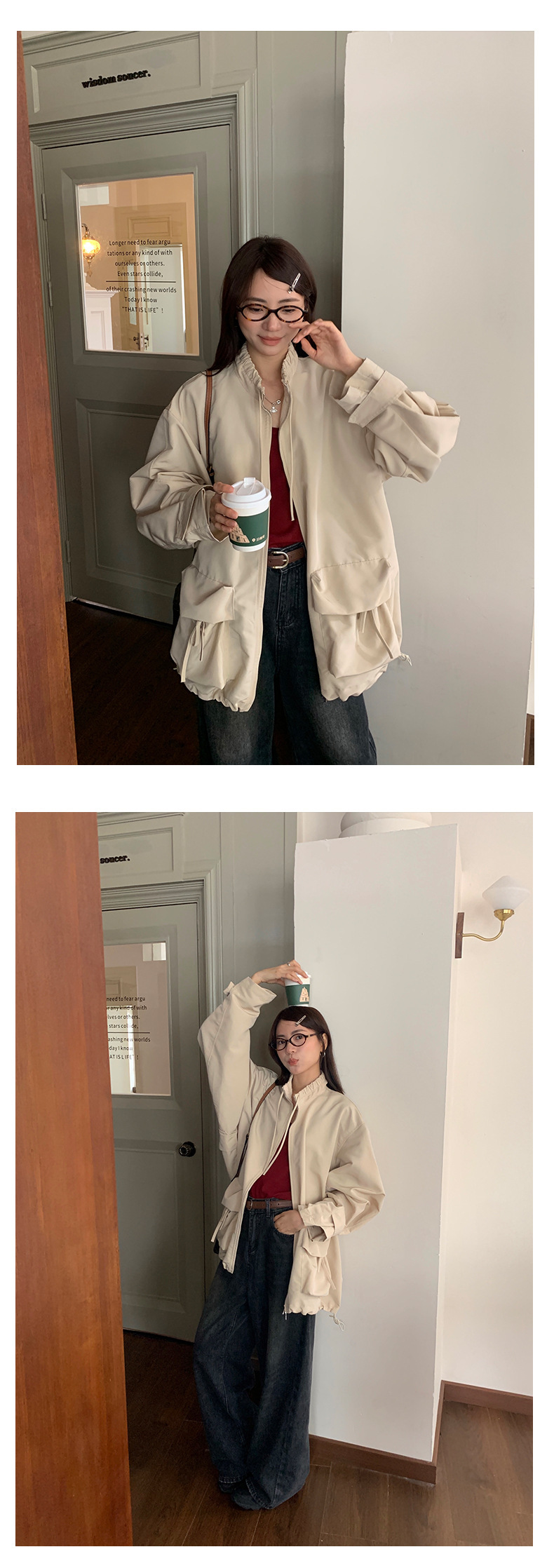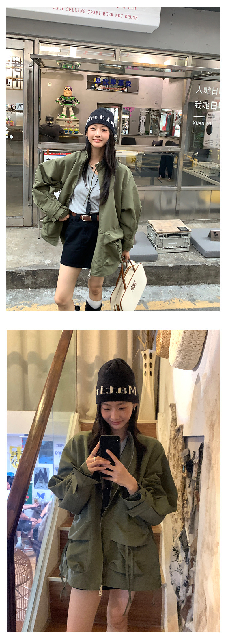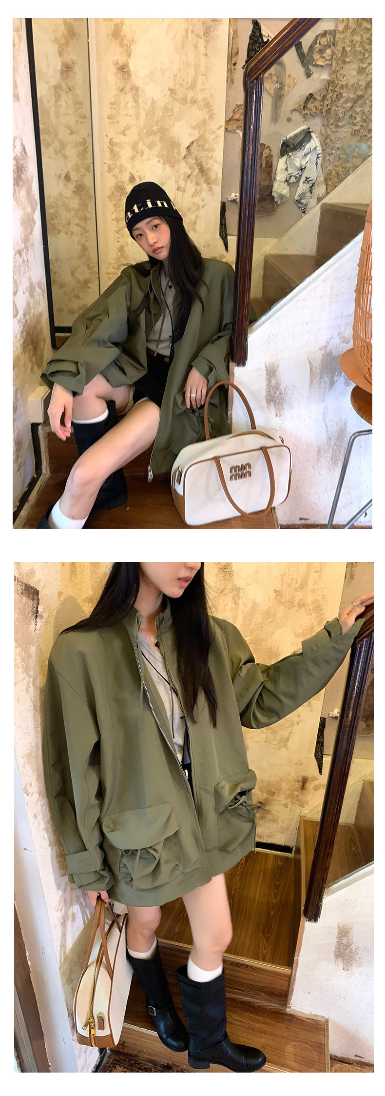 *o-ha-you*【FHZ143AY6084】復古抽繩立領工裝風衣外套2024秋寬鬆休閒薄款上衣-2色