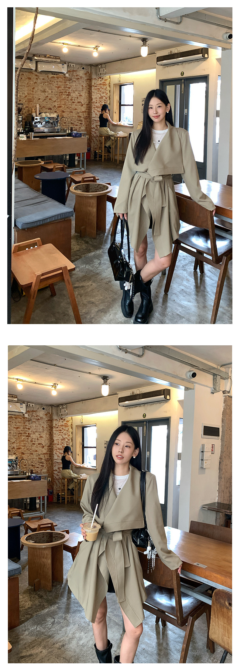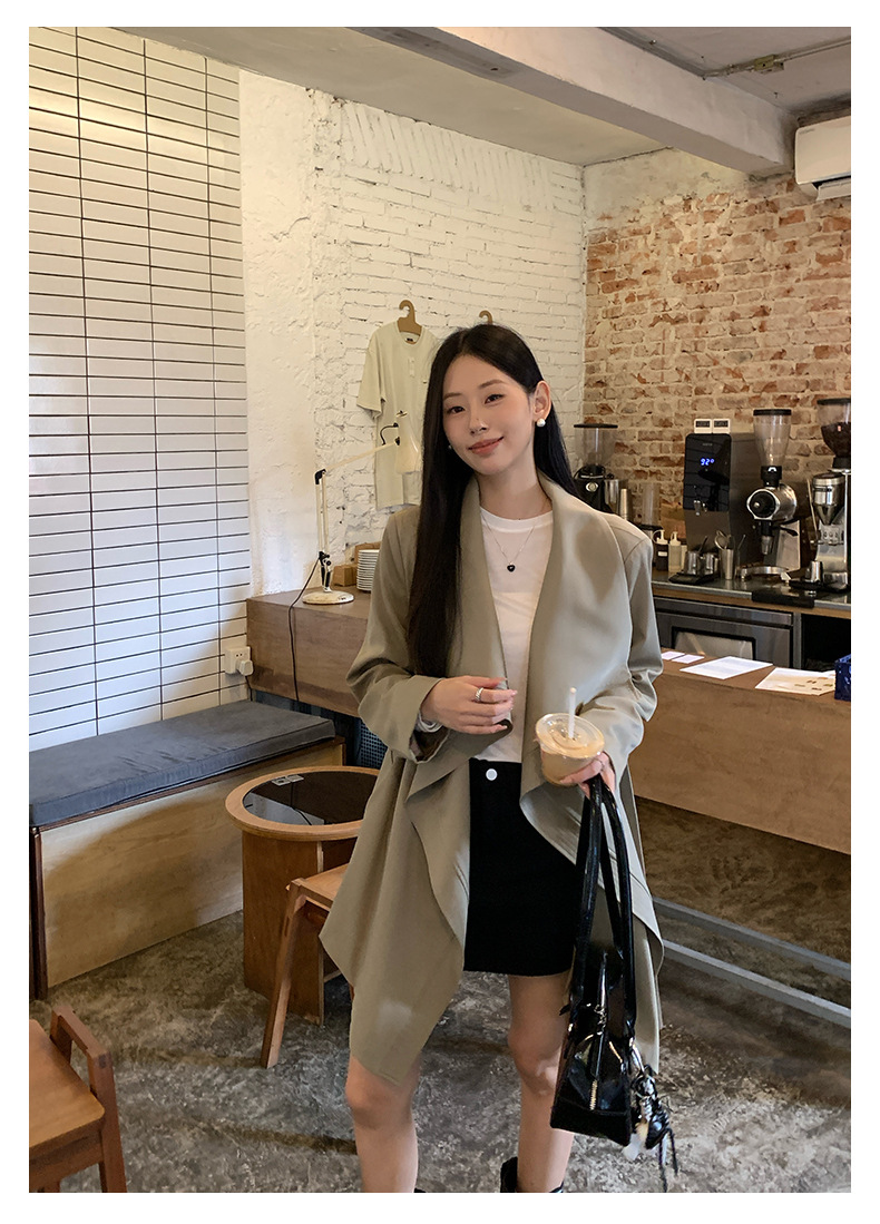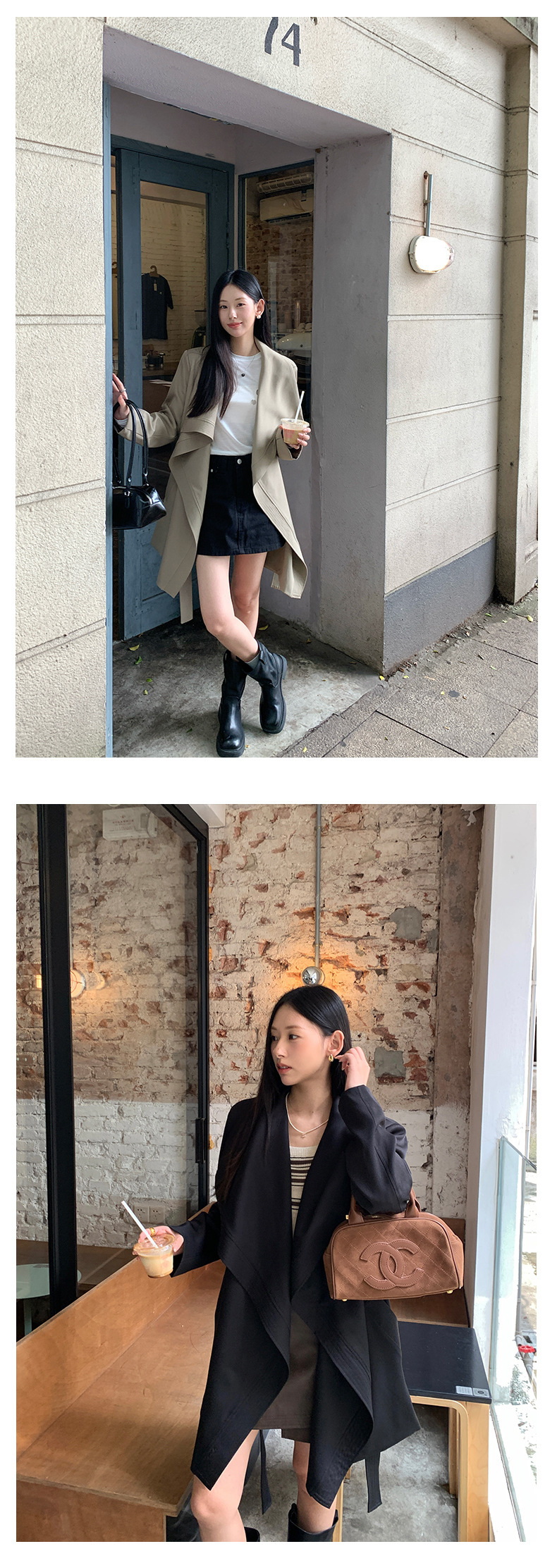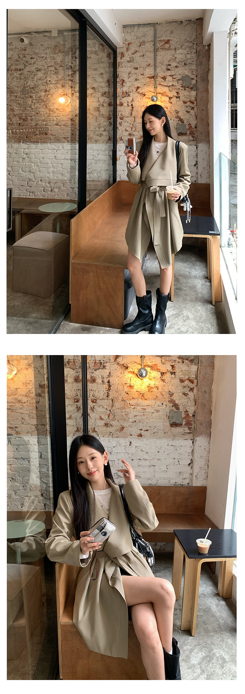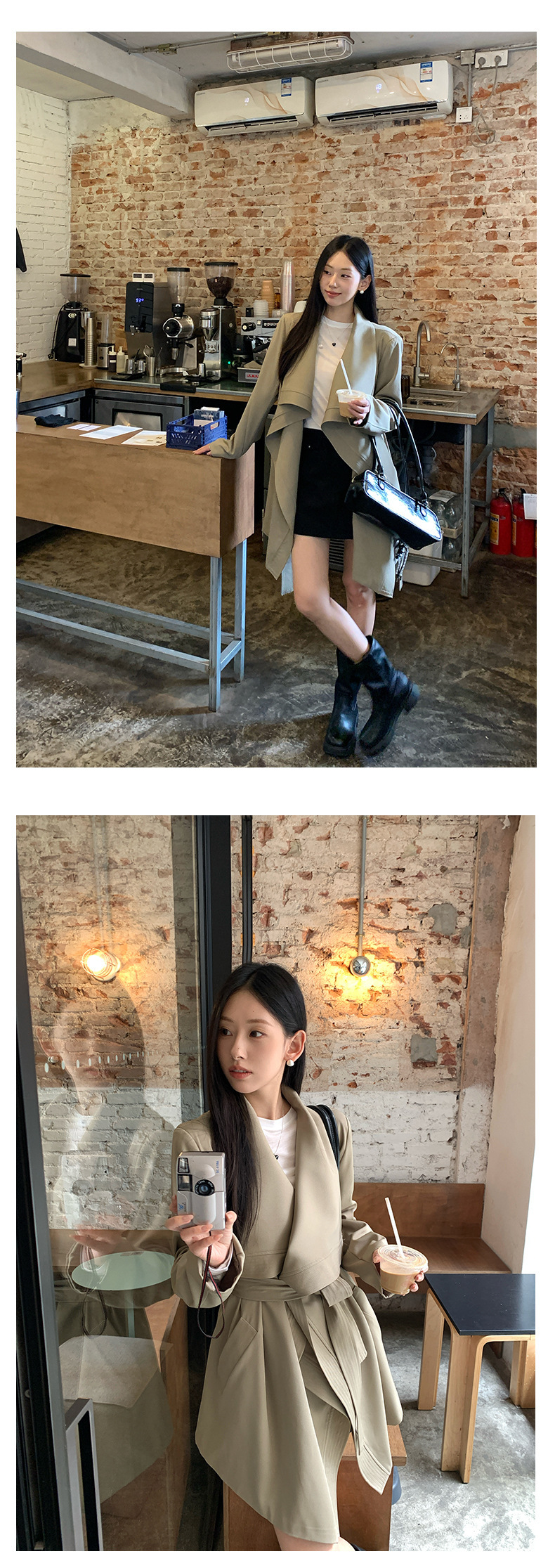 *o-ha-you*【FHZ143AY7082】英倫風不規則長版風衣外套2024秋寬鬆顯瘦收腰上衣-2色