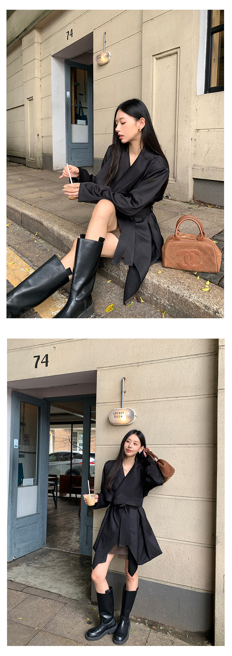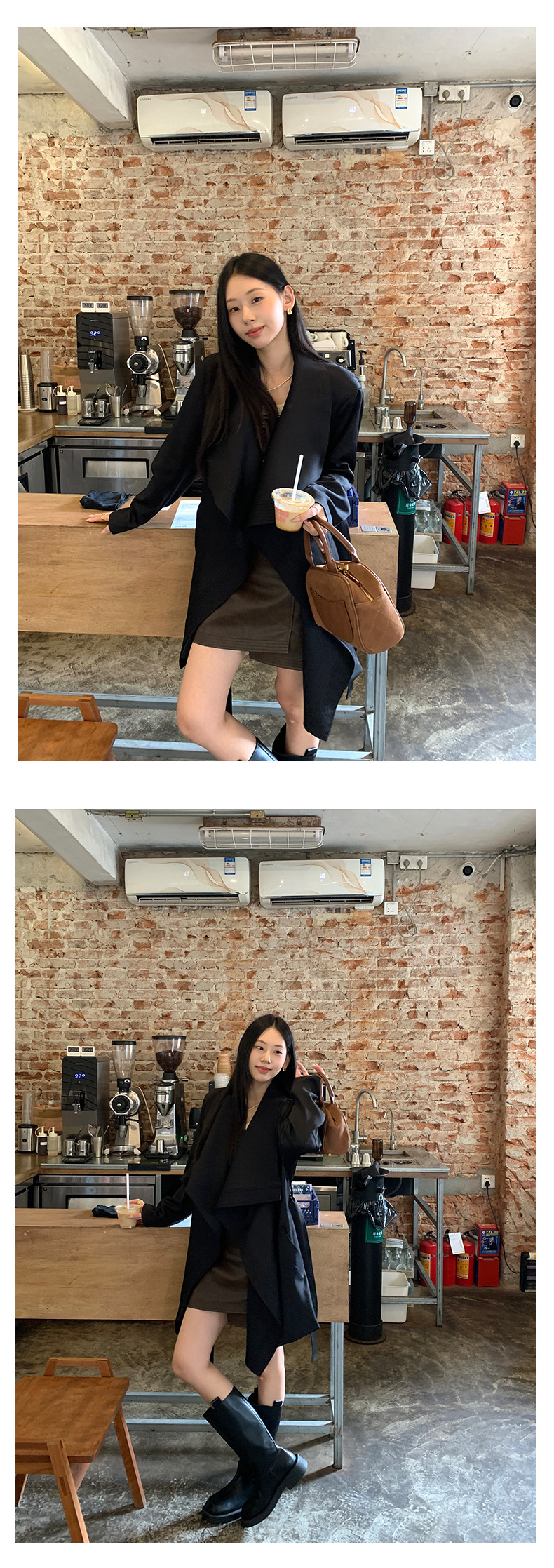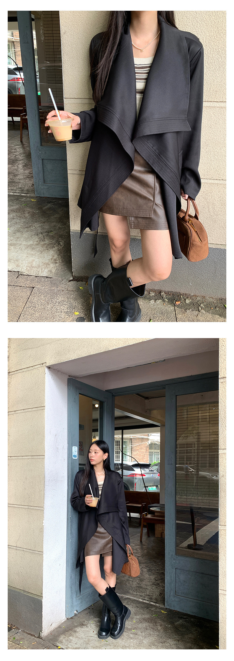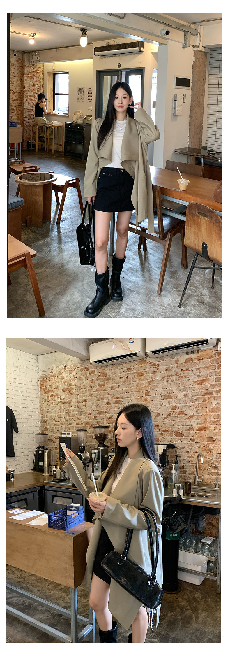 *o-ha-you*【FHZ143AY7082】英倫風不規則長版風衣外套2024秋寬鬆顯瘦收腰上衣-2色