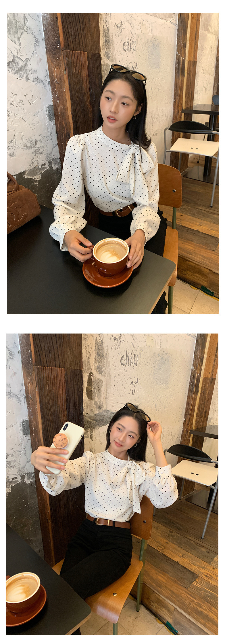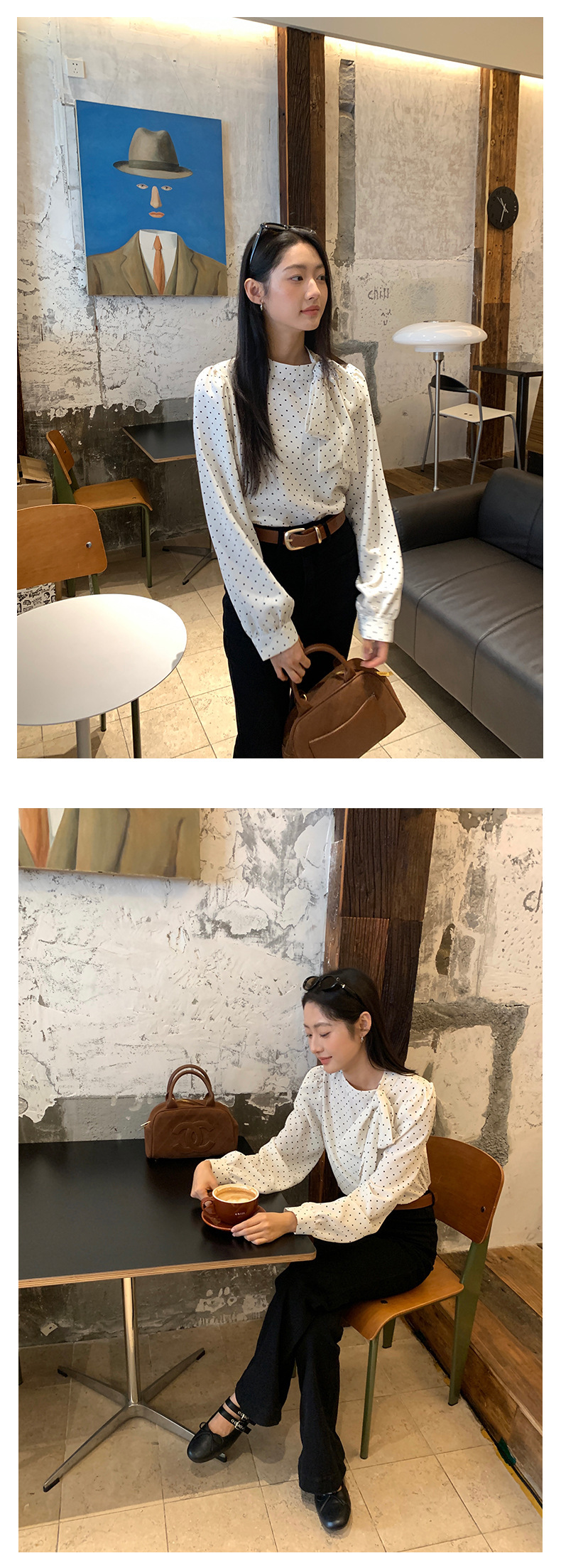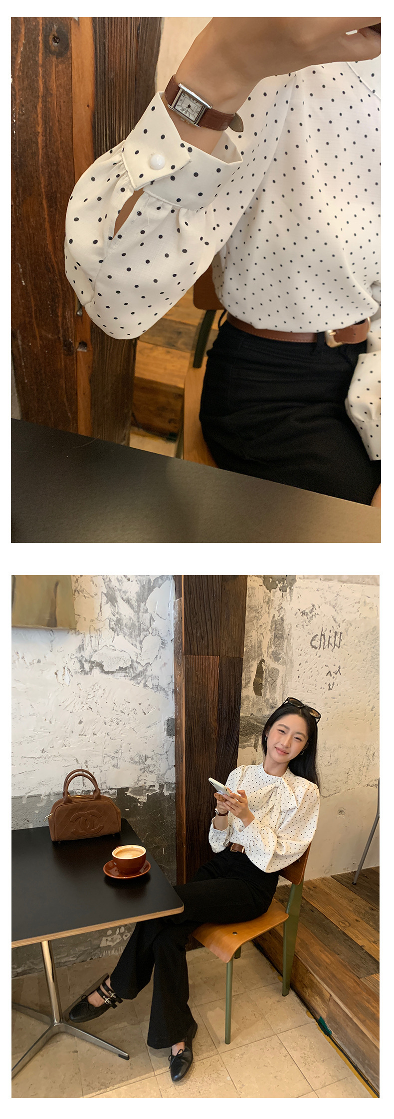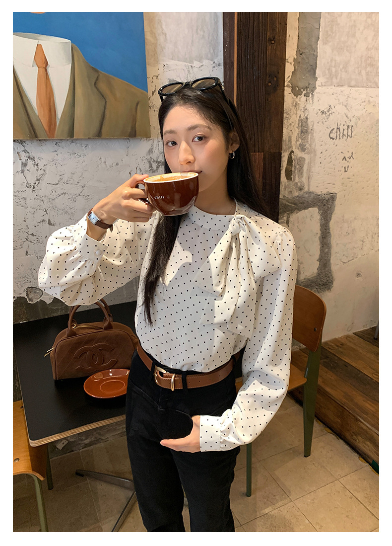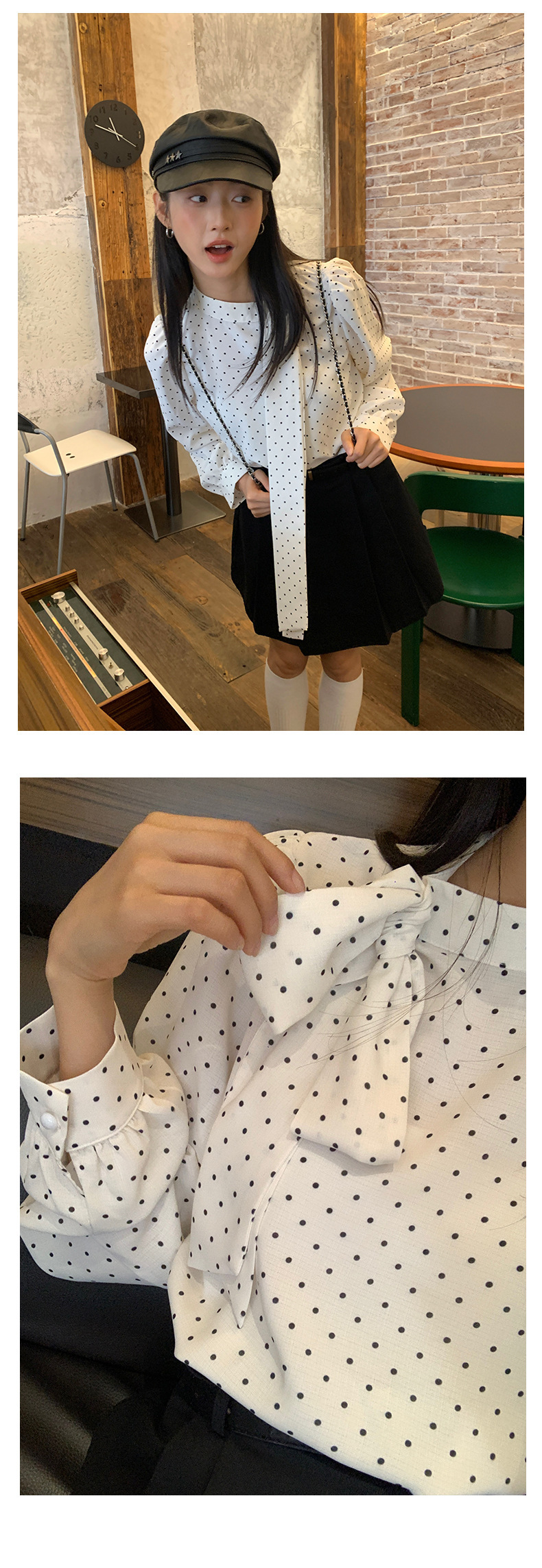*o-ha-you*【FHZ143CH5098】法式波點繫帶長袖襯衫2024秋季寬鬆顯瘦襯衣打底衫