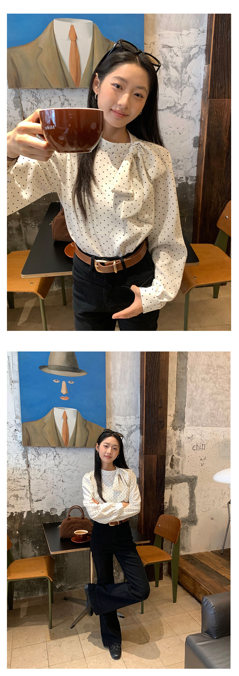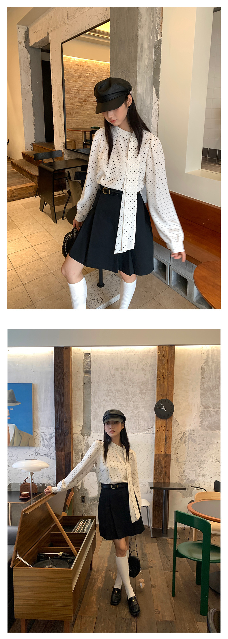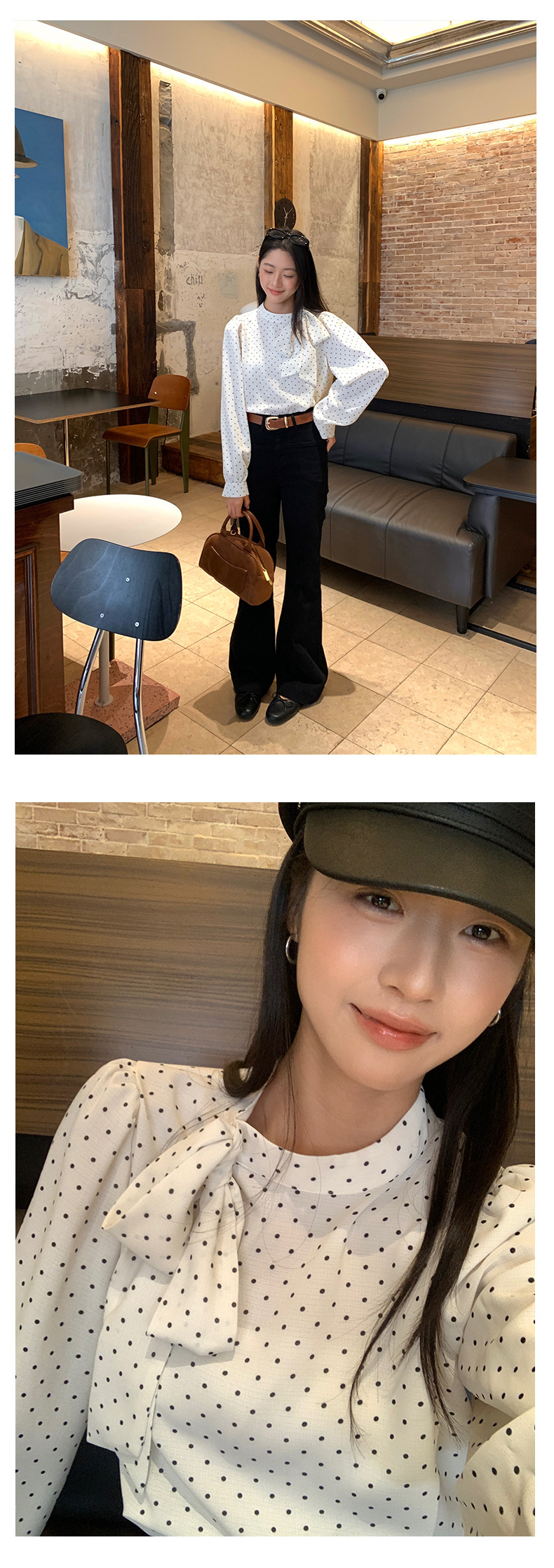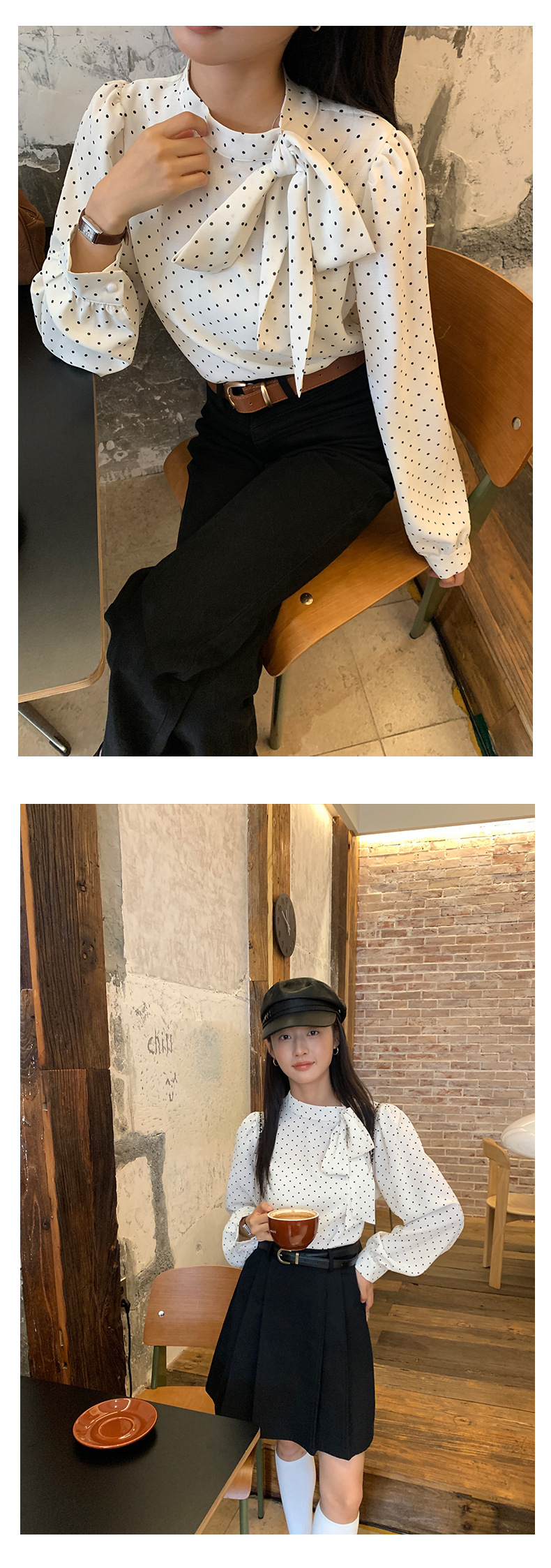 *o-ha-you*【FHZ143CH5098】法式波點繫帶長袖襯衫2024秋季寬鬆顯瘦襯衣打底衫