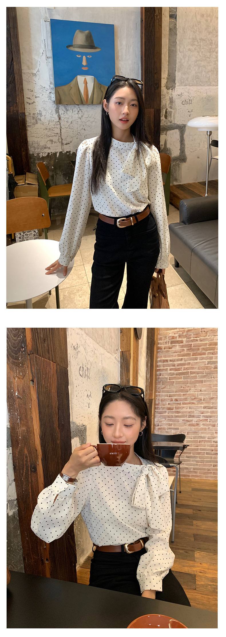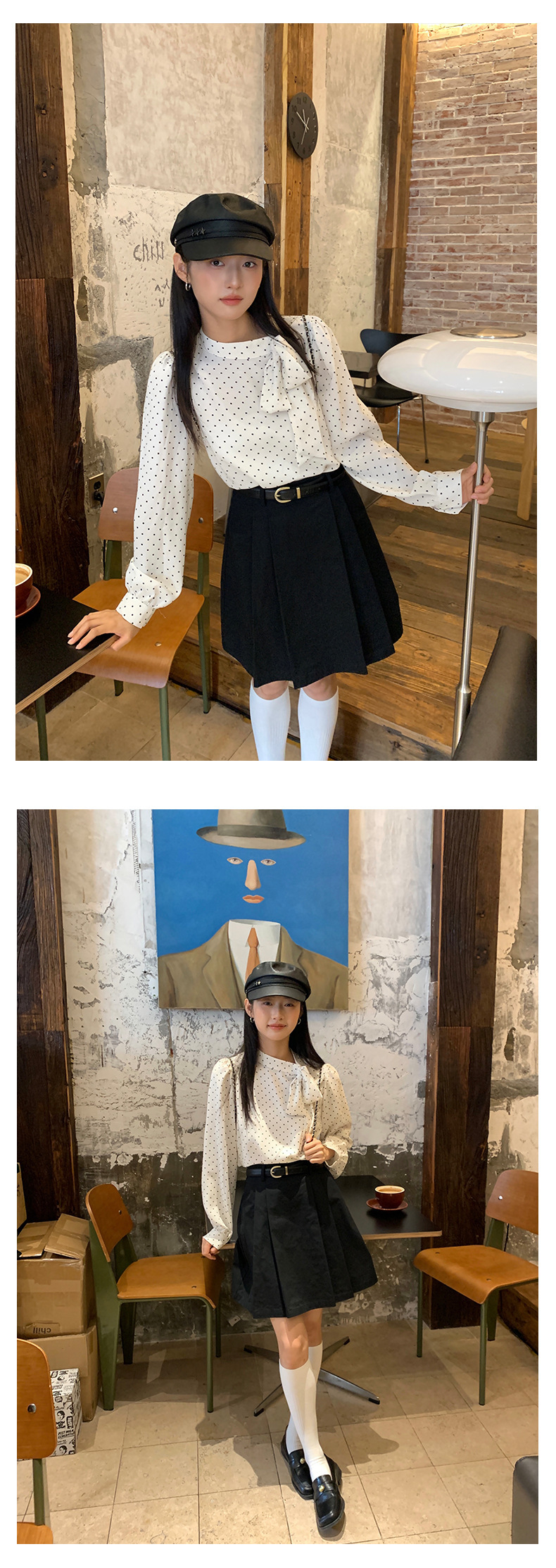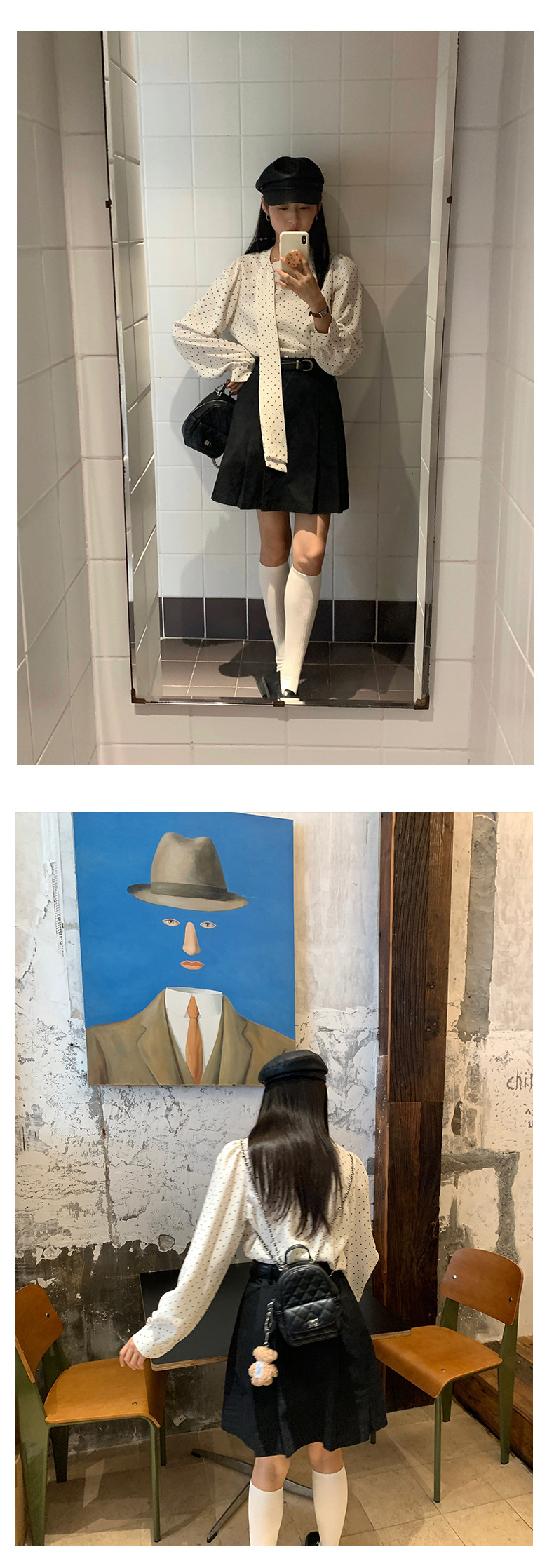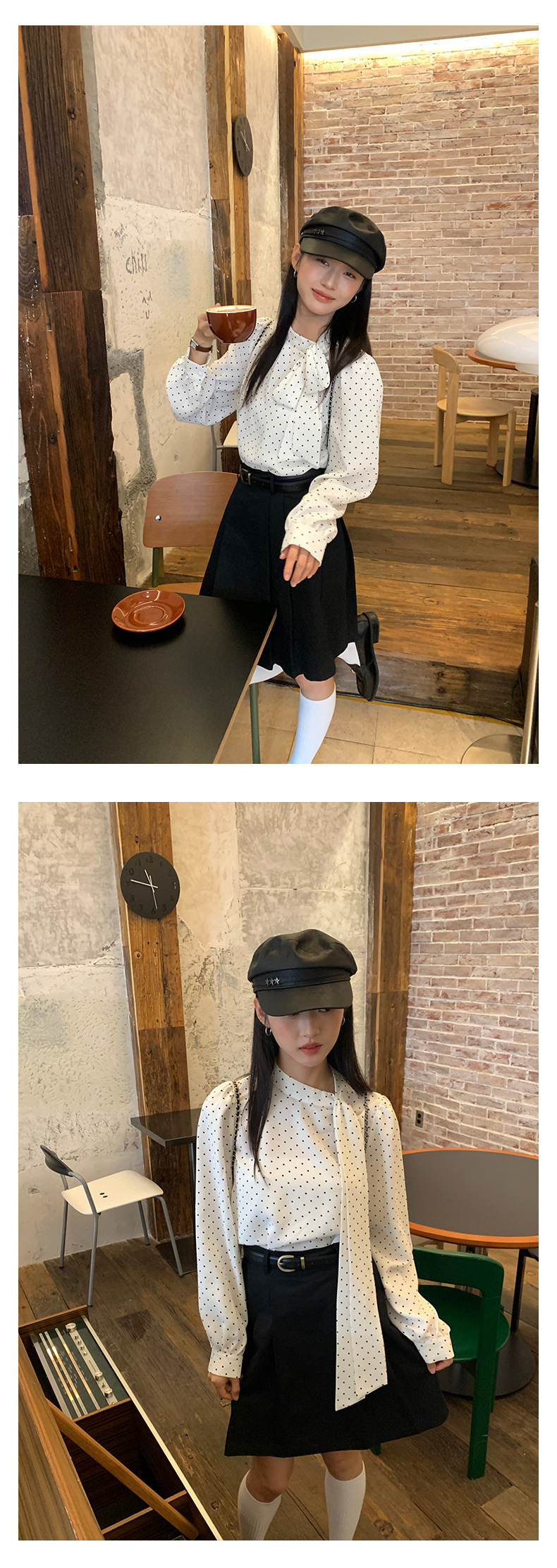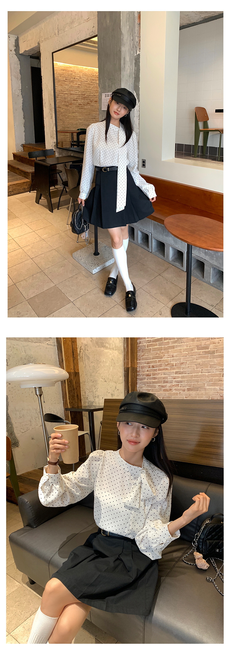*o-ha-you*【FHZ143CH5098】法式波點繫帶長袖襯衫2024秋季寬鬆顯瘦襯衣打底衫