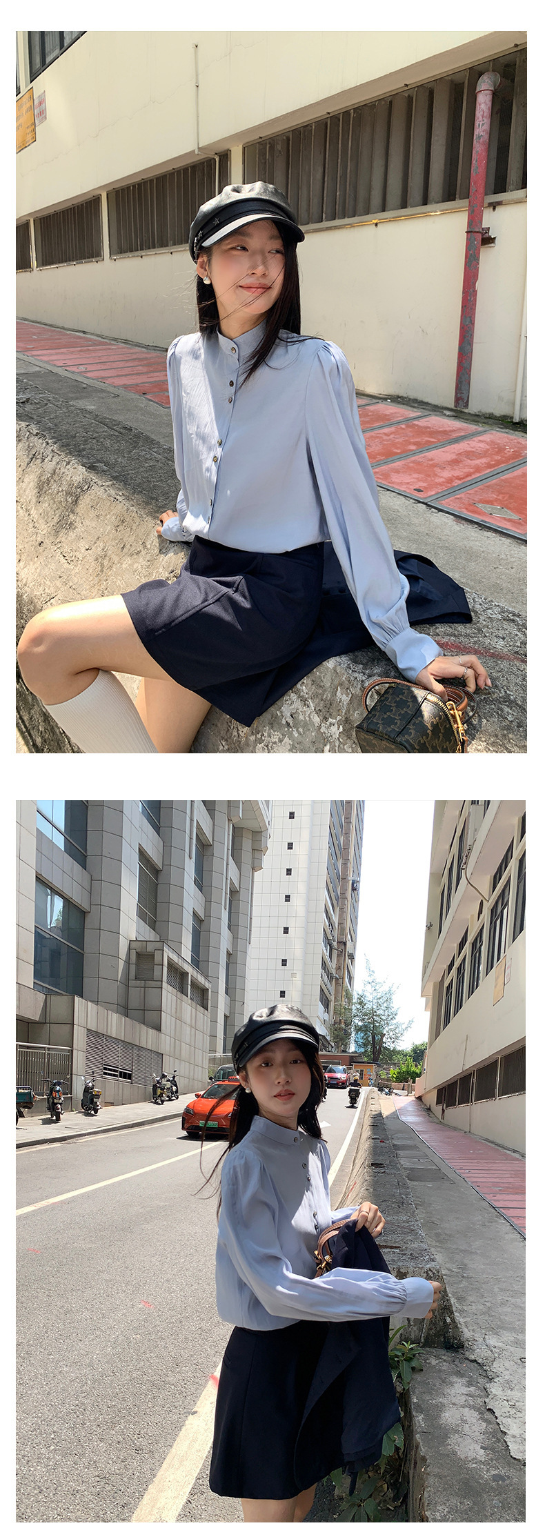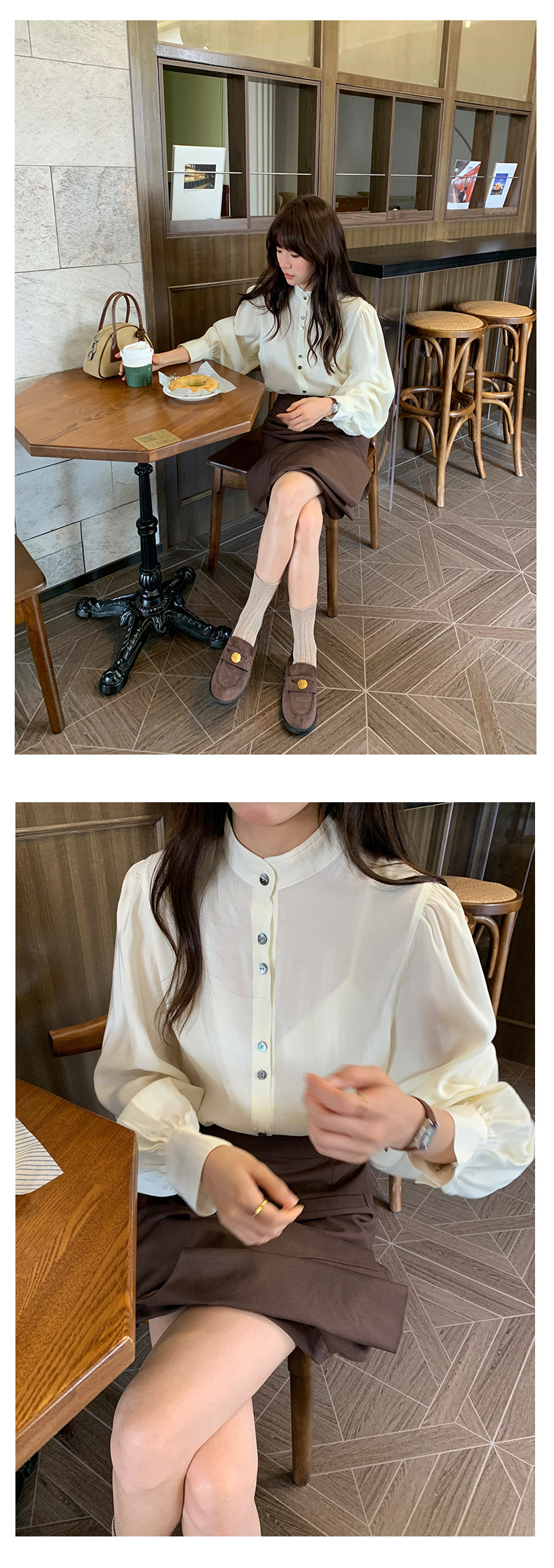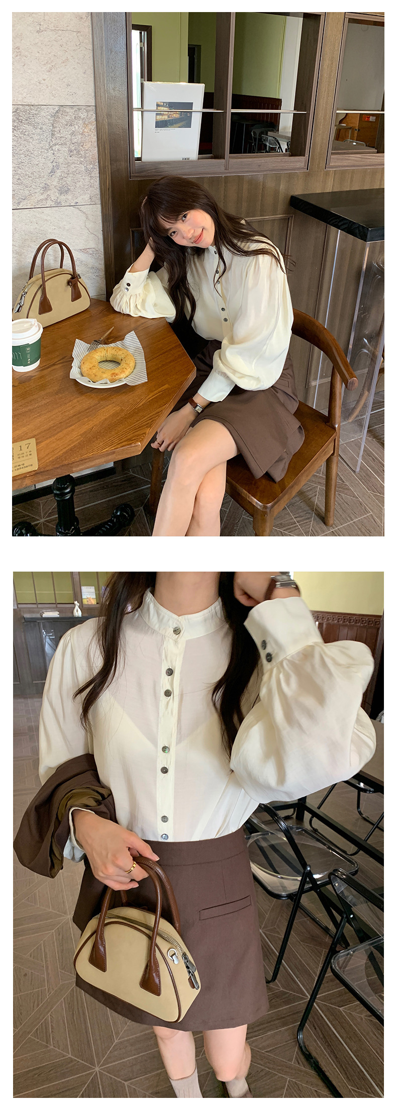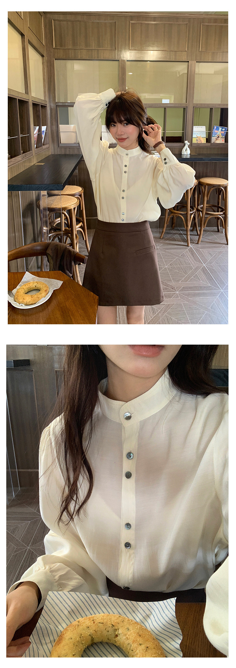 *o-ha-you*【FHZ143CY6041】簡約立領紐扣開衫襯衫2024秋韓版寬鬆休閒長袖襯衫-2色