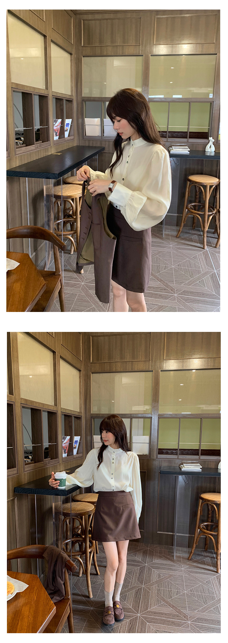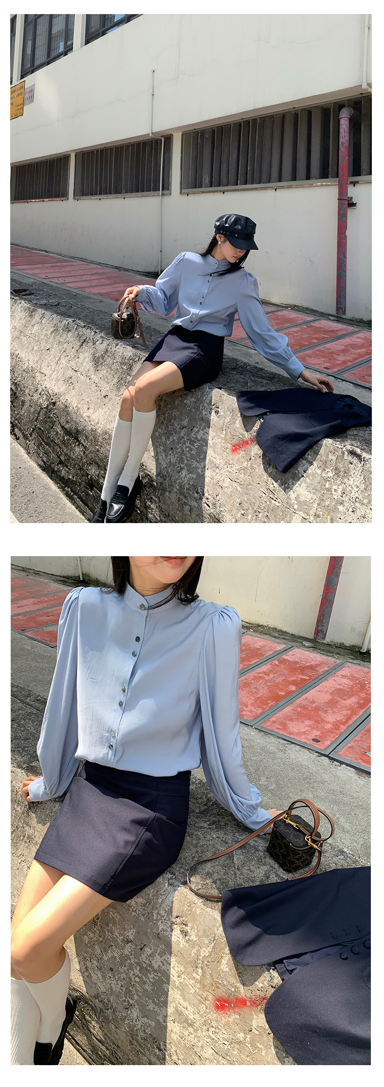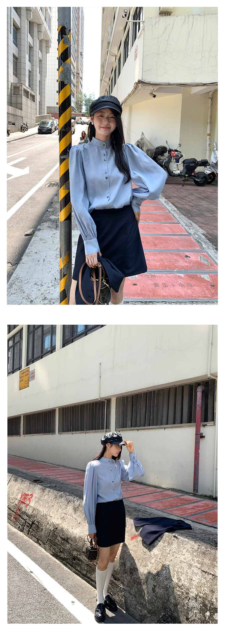 *o-ha-you*【FHZ143CY6041】簡約立領紐扣開衫襯衫2024秋韓版寬鬆休閒長袖襯衫-2色