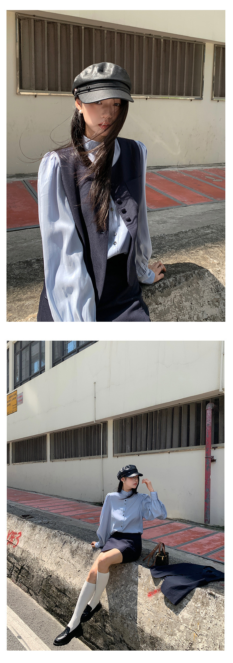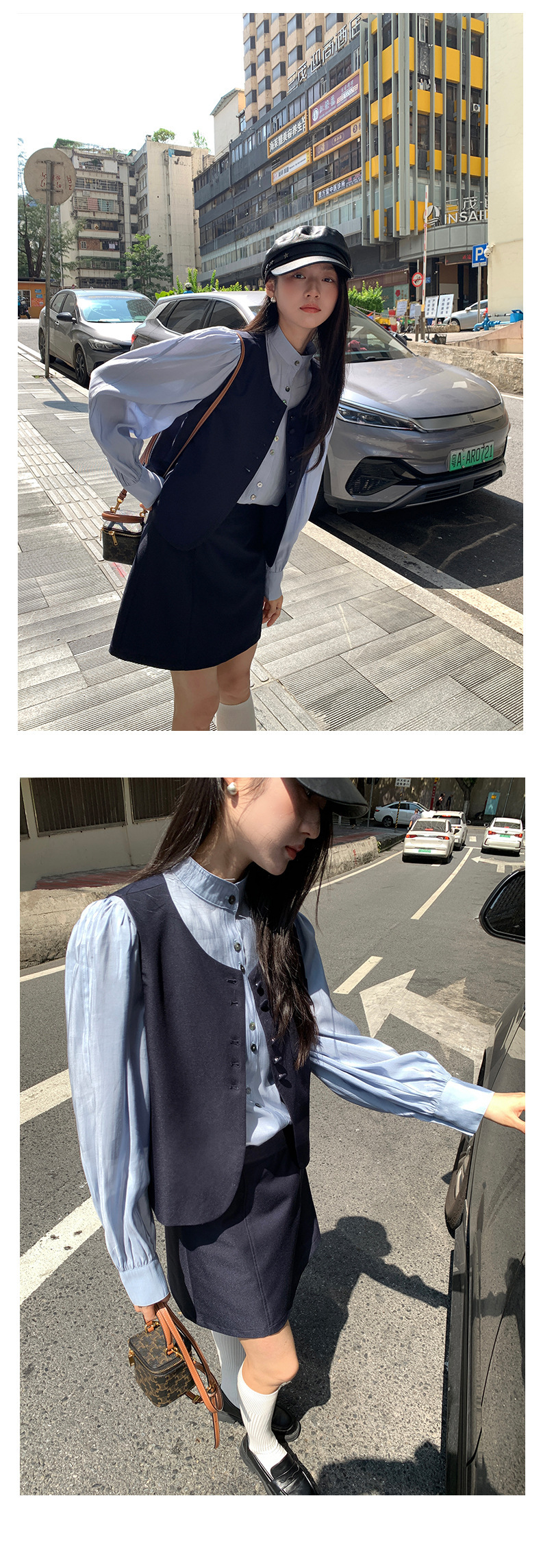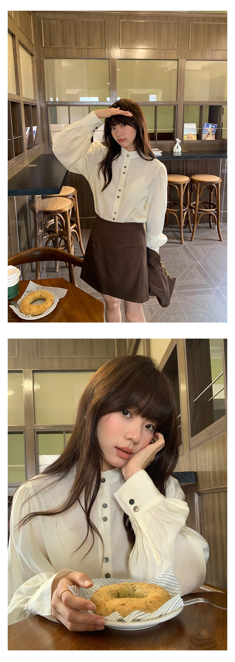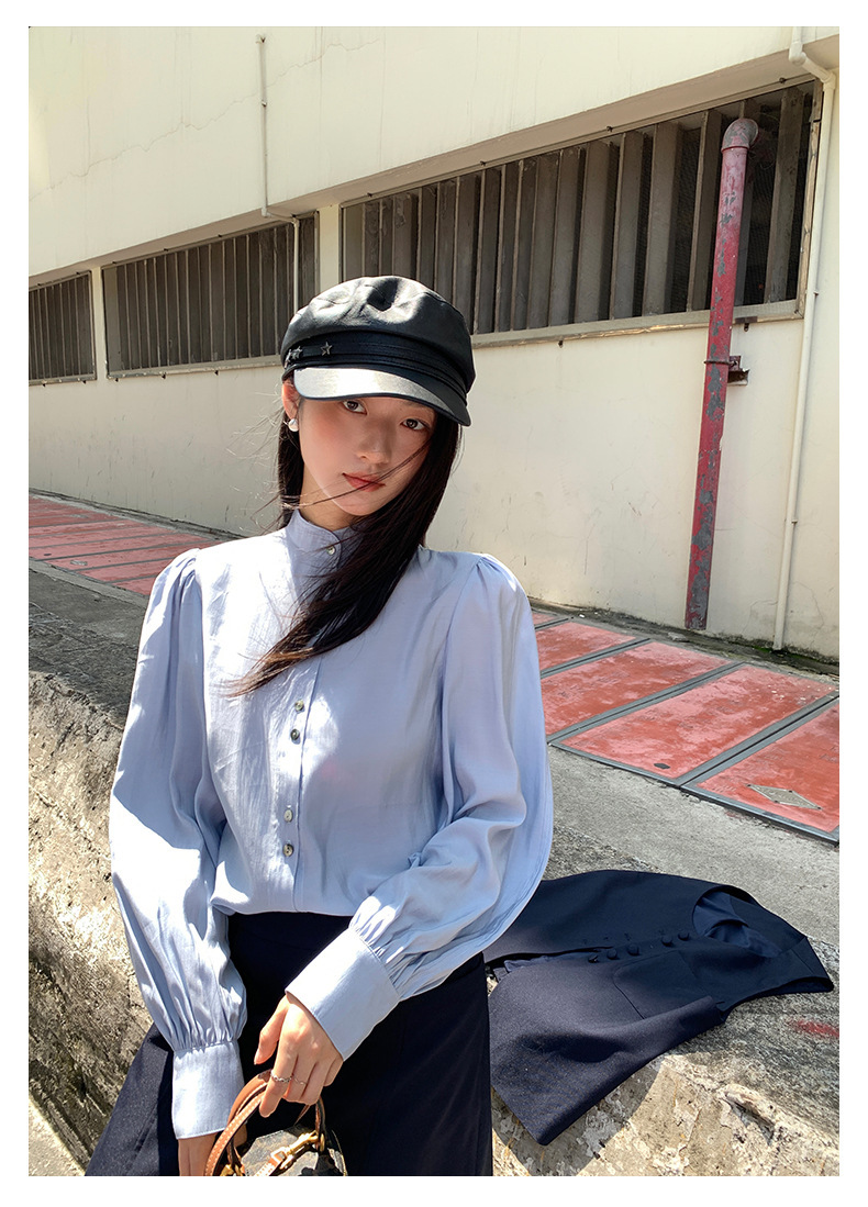 *o-ha-you*【FHZ143CY6041】簡約立領紐扣開衫襯衫2024秋韓版寬鬆休閒長袖襯衫-2色