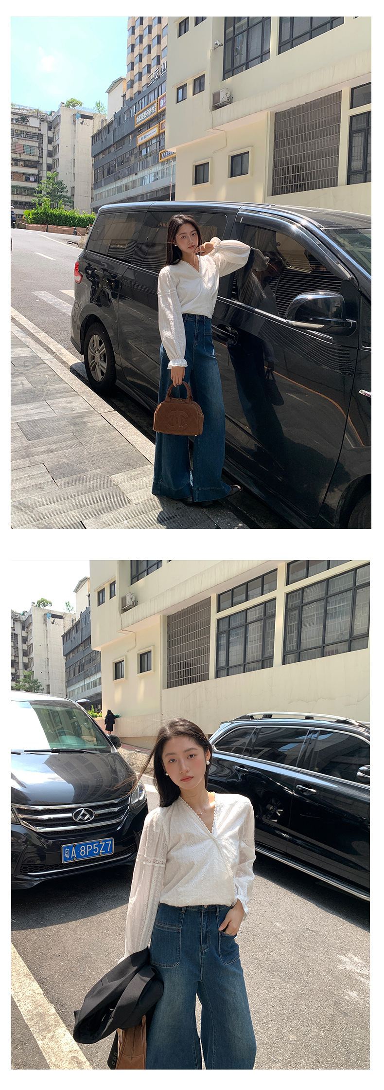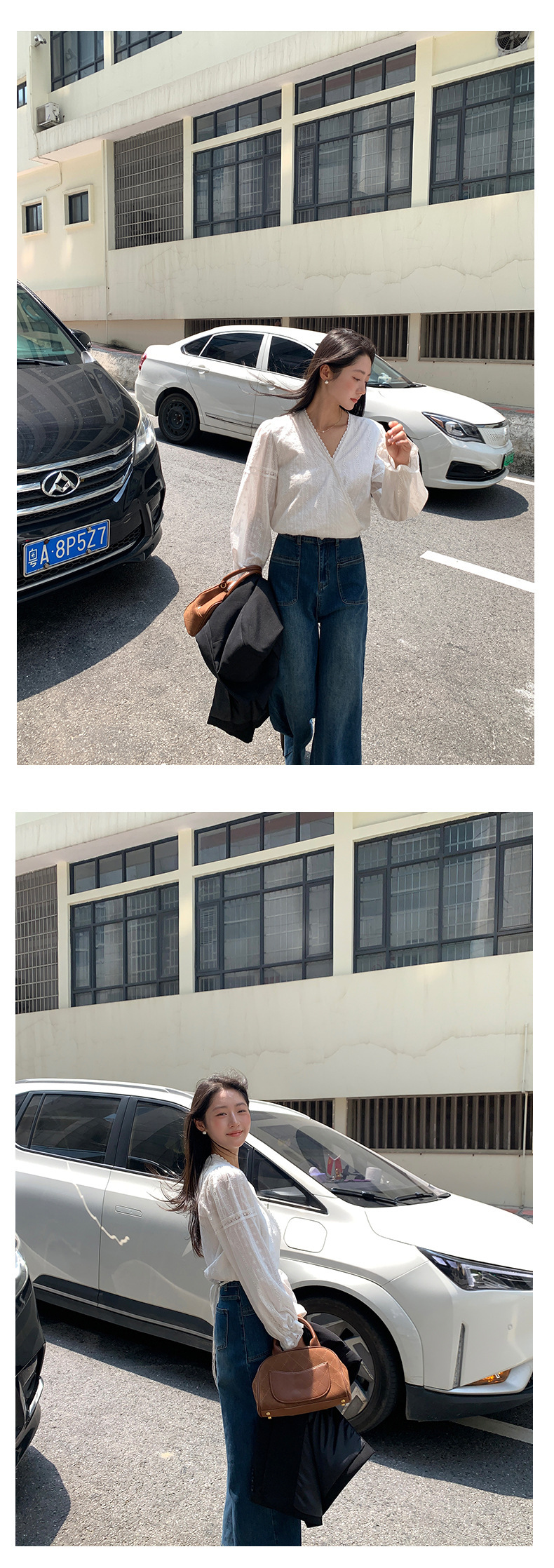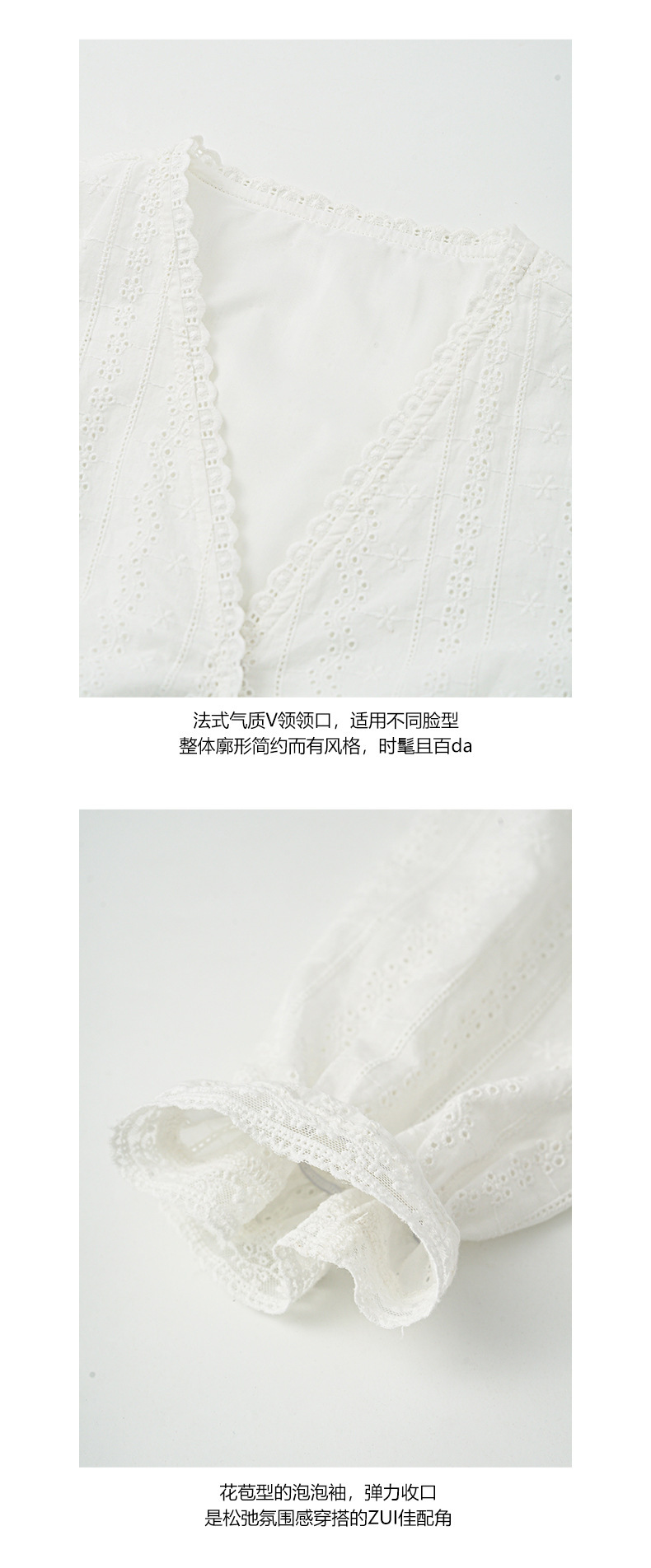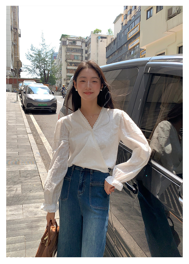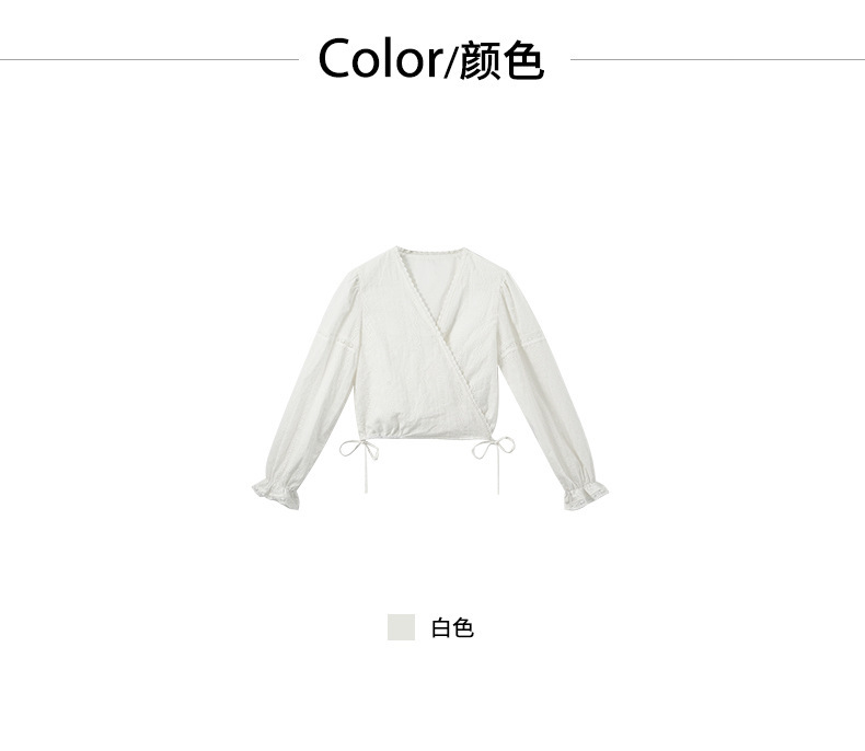 *o-ha-you*【FHZ143CY6059】韓系V領綁帶刺繡襯衫2024秋韓版短版修身上衣