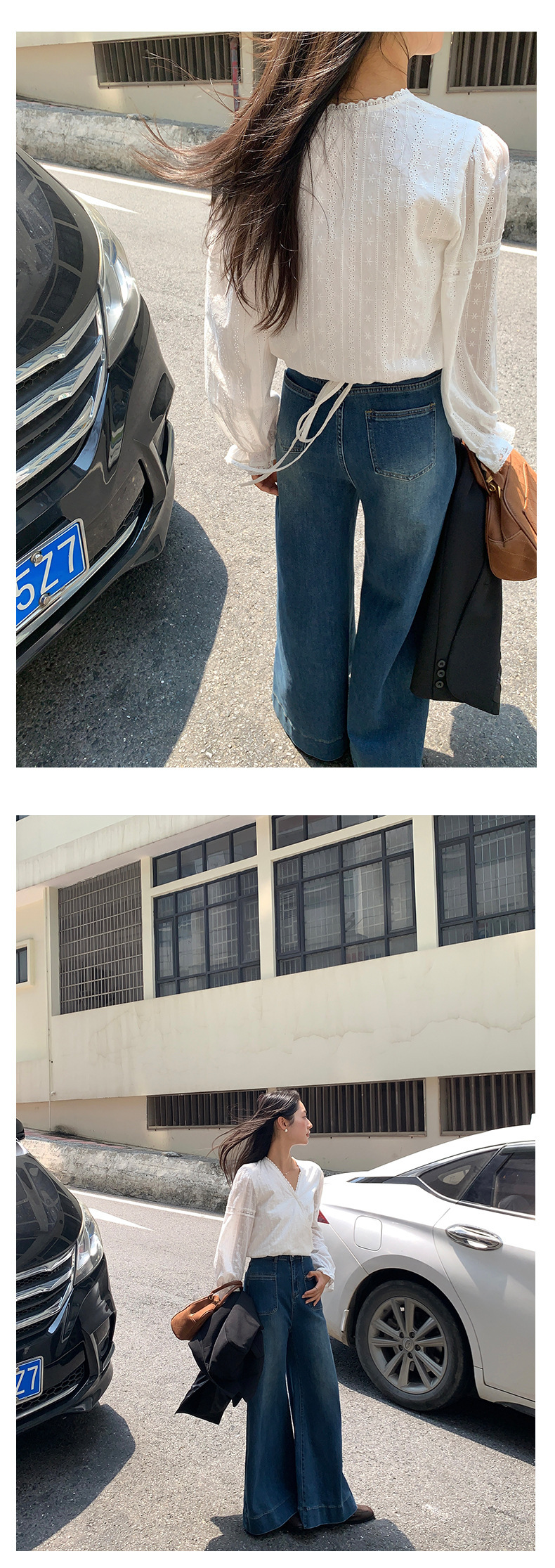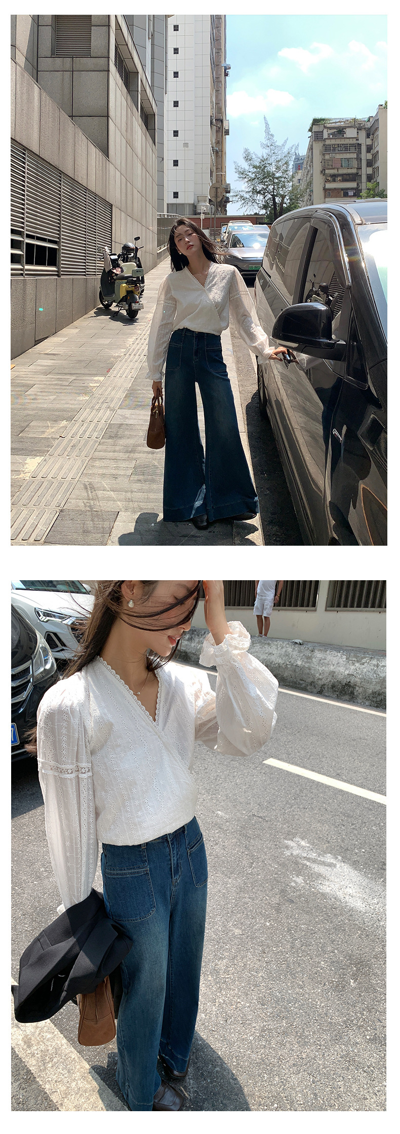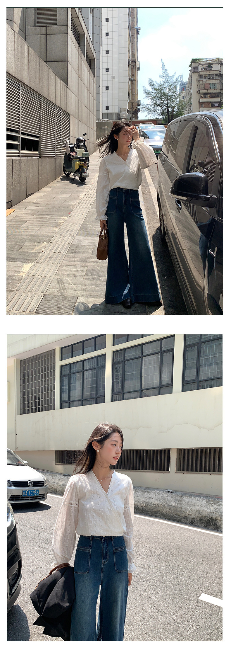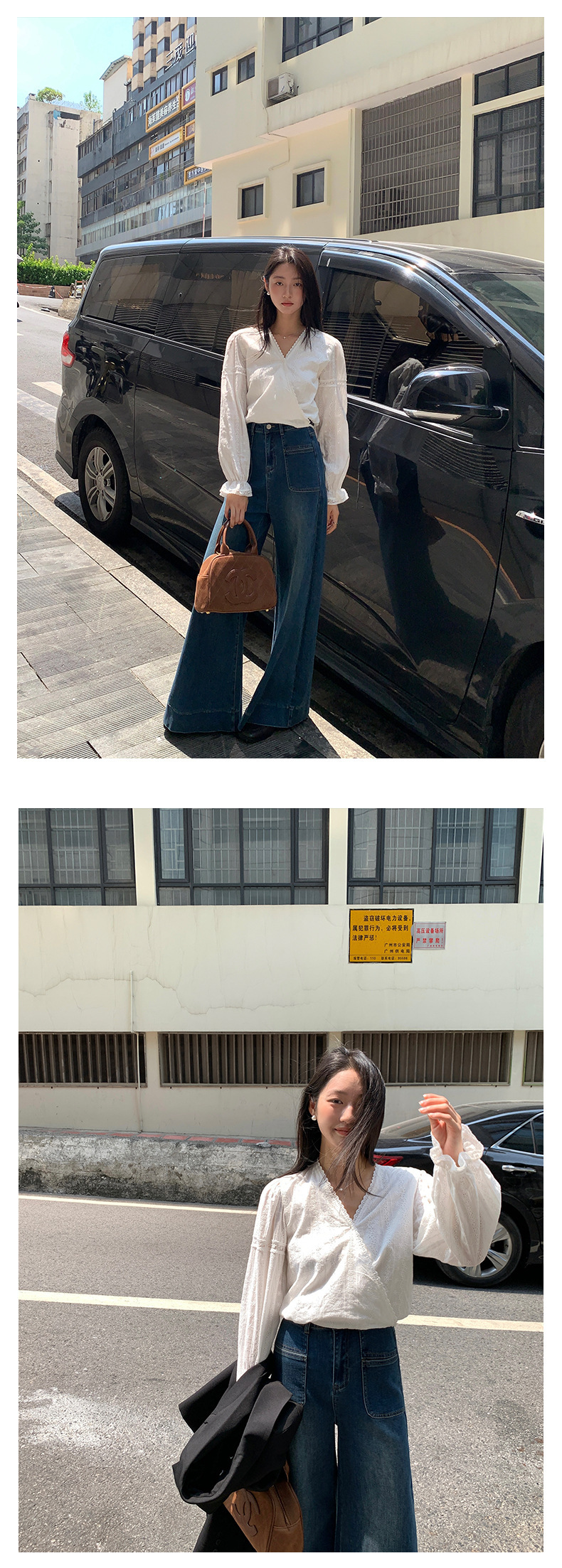 *o-ha-you*【FHZ143CY6059】韓系V領綁帶刺繡襯衫2024秋韓版短版修身上衣