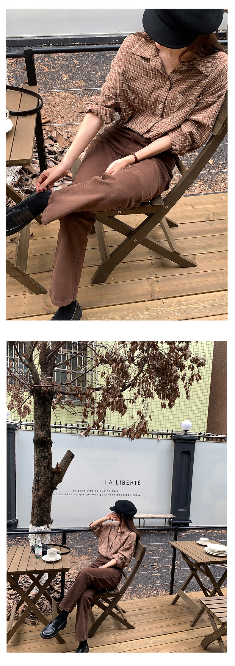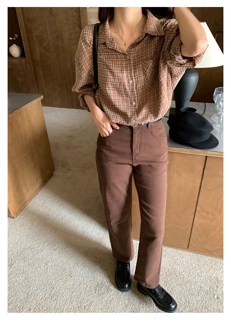 *o-ha-you*【FHZ143KY6063】復古高腰彈性直筒牛仔長褲2024早秋顯瘦修身煙管褲