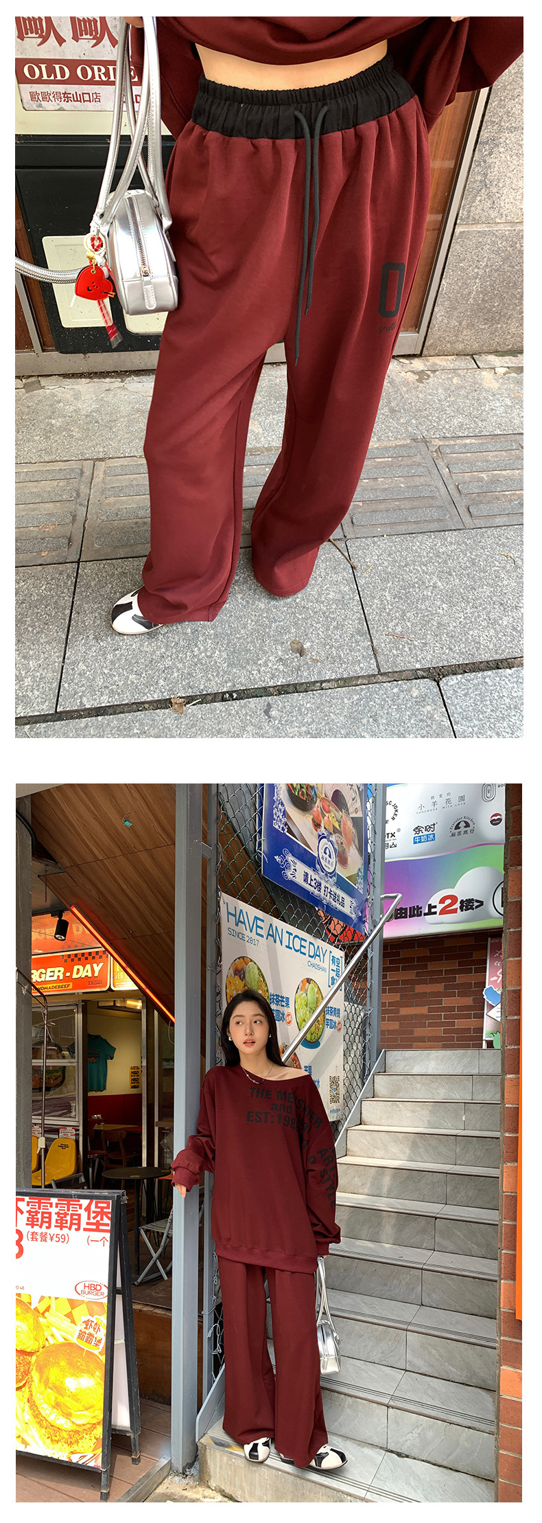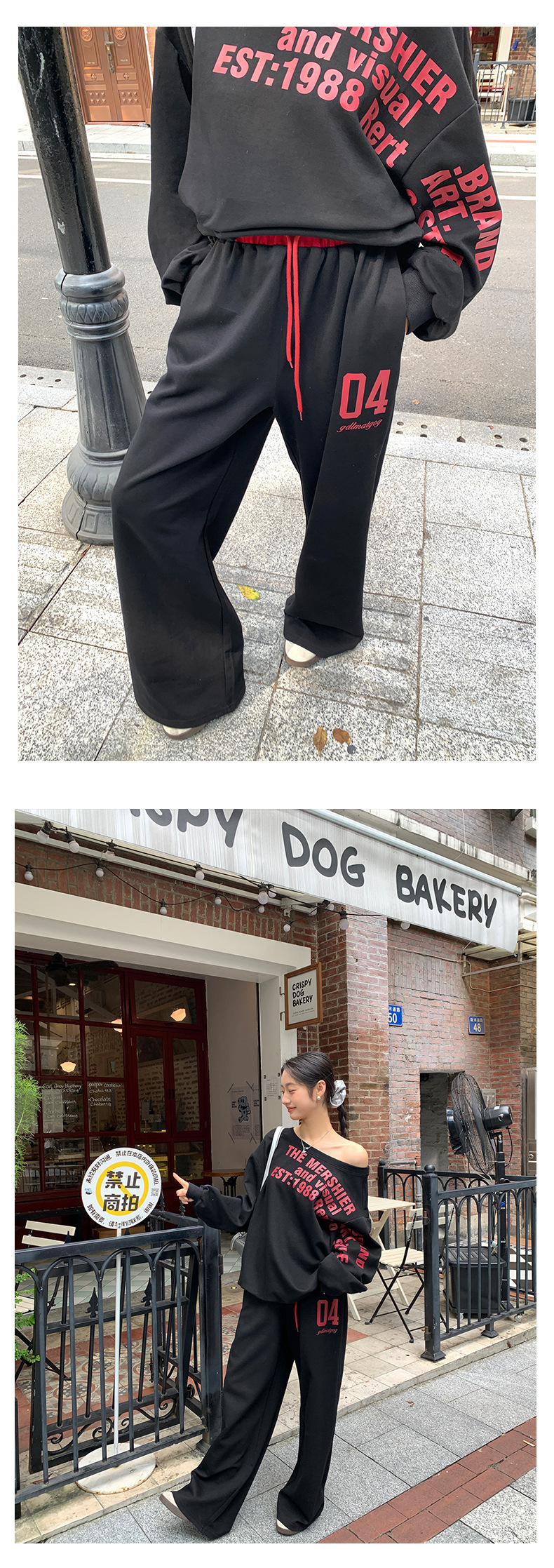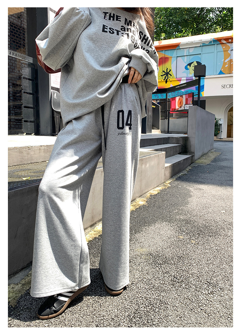 *o-ha-you*【FHZ143KY7078】美式數位印花抽繩休閒衛褲2024秋寬鬆顯瘦闊腿長褲-3色