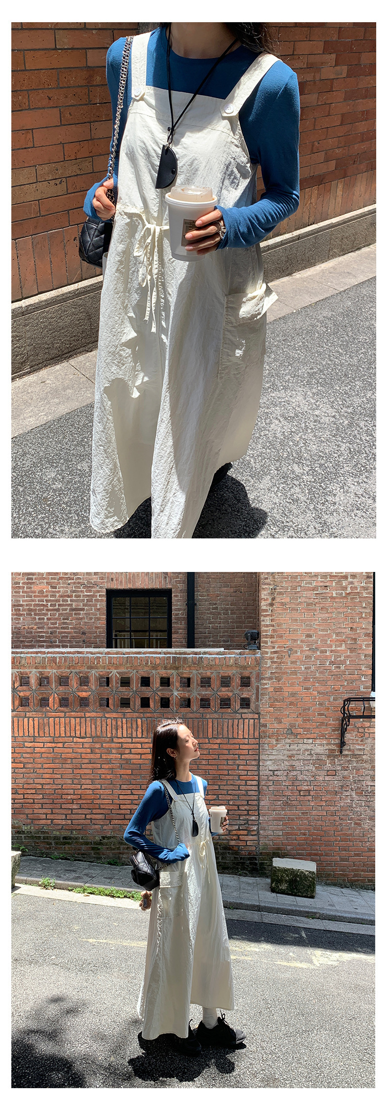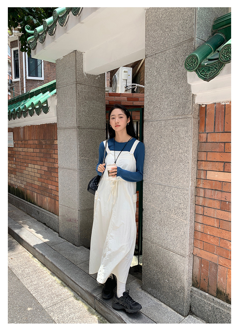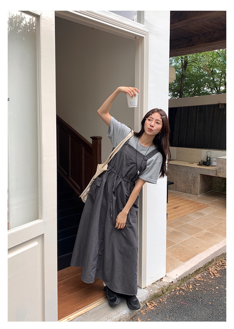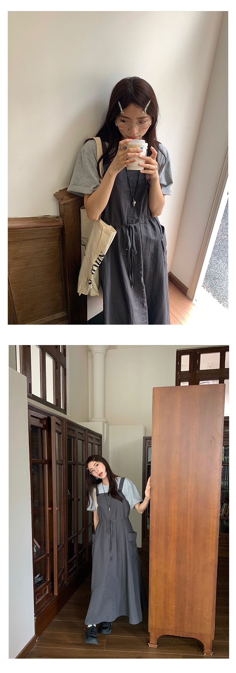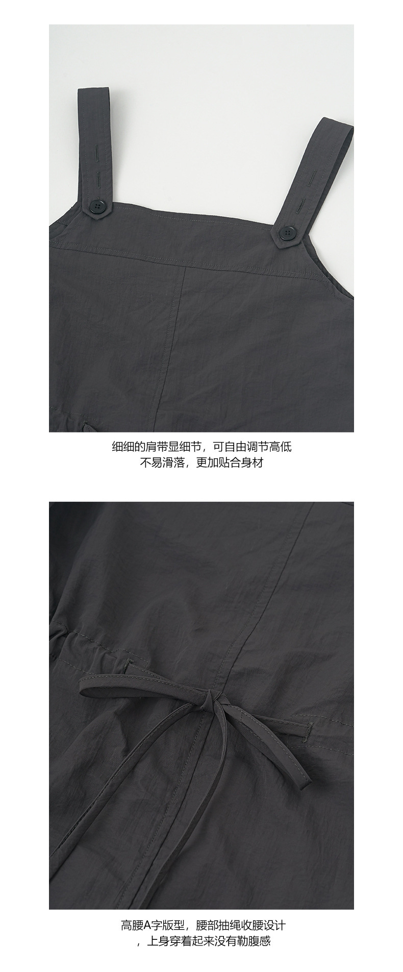 *o-ha-you*【FHZ143LY6008】慵懶風抽繩工裝吊帶連衣裙2024秋休閒收腰背帶長裙洋裝-2色