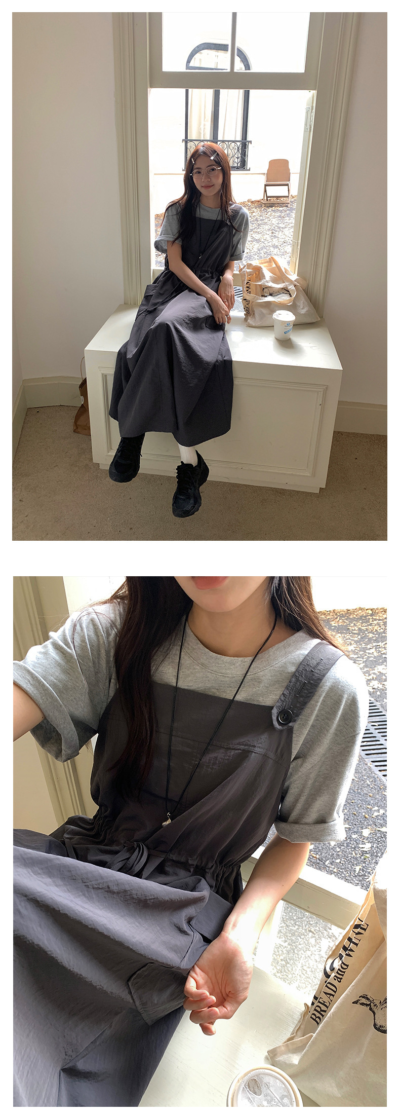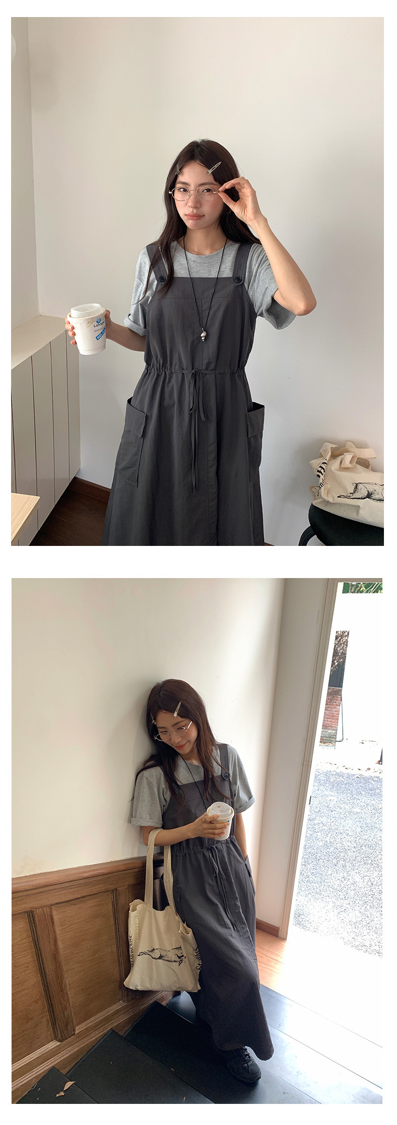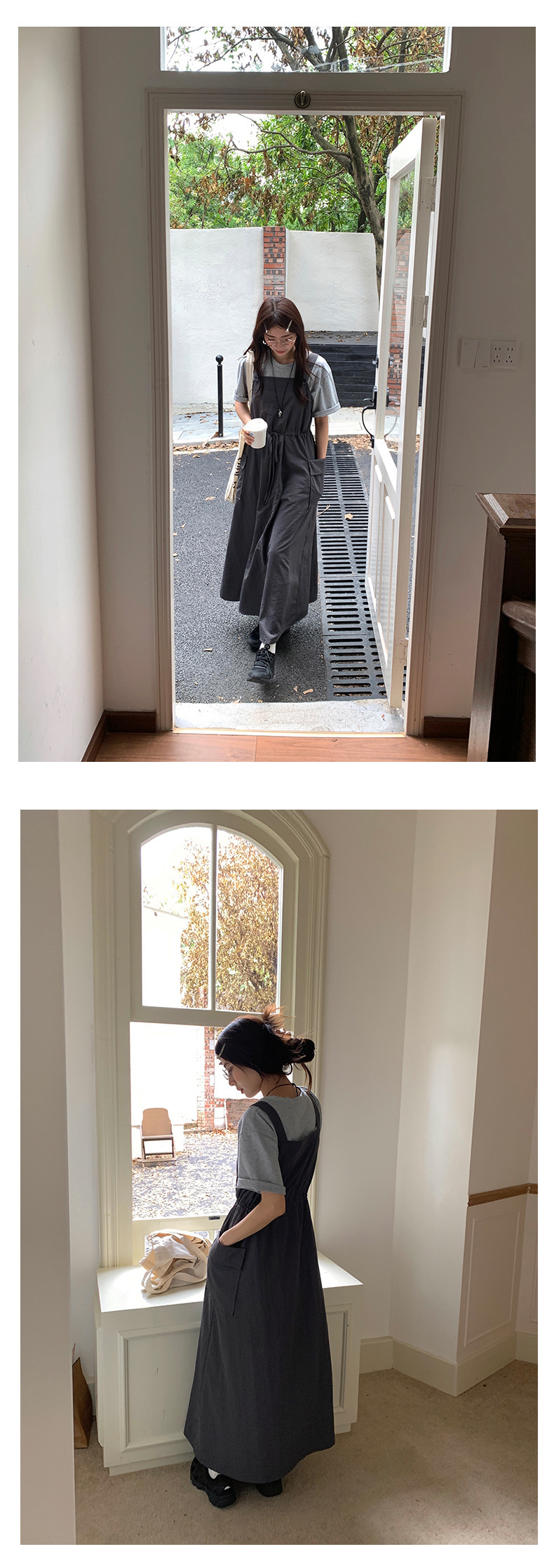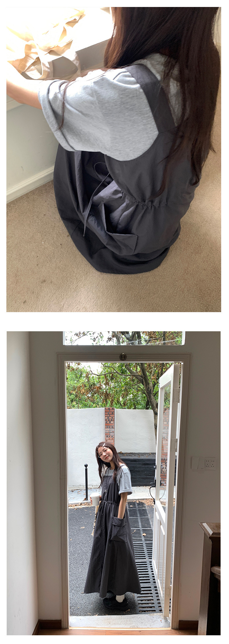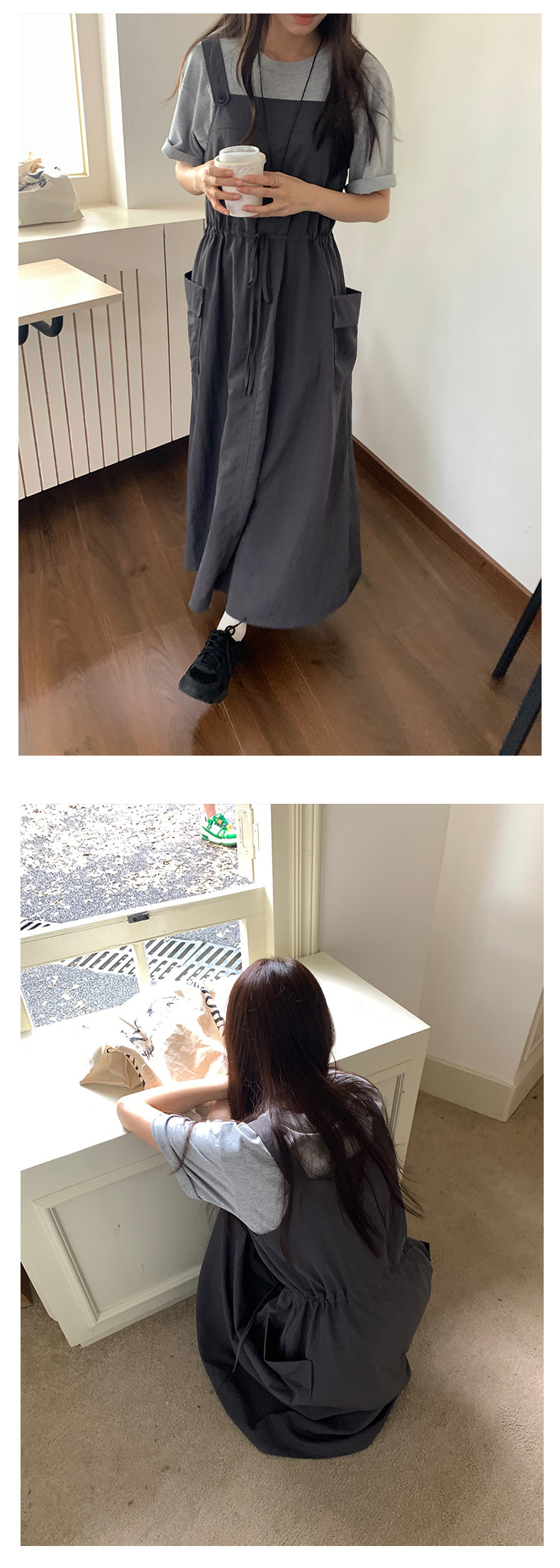 *o-ha-you*【FHZ143LY6008】慵懶風抽繩工裝吊帶連衣裙2024秋休閒收腰背帶長裙洋裝-2色