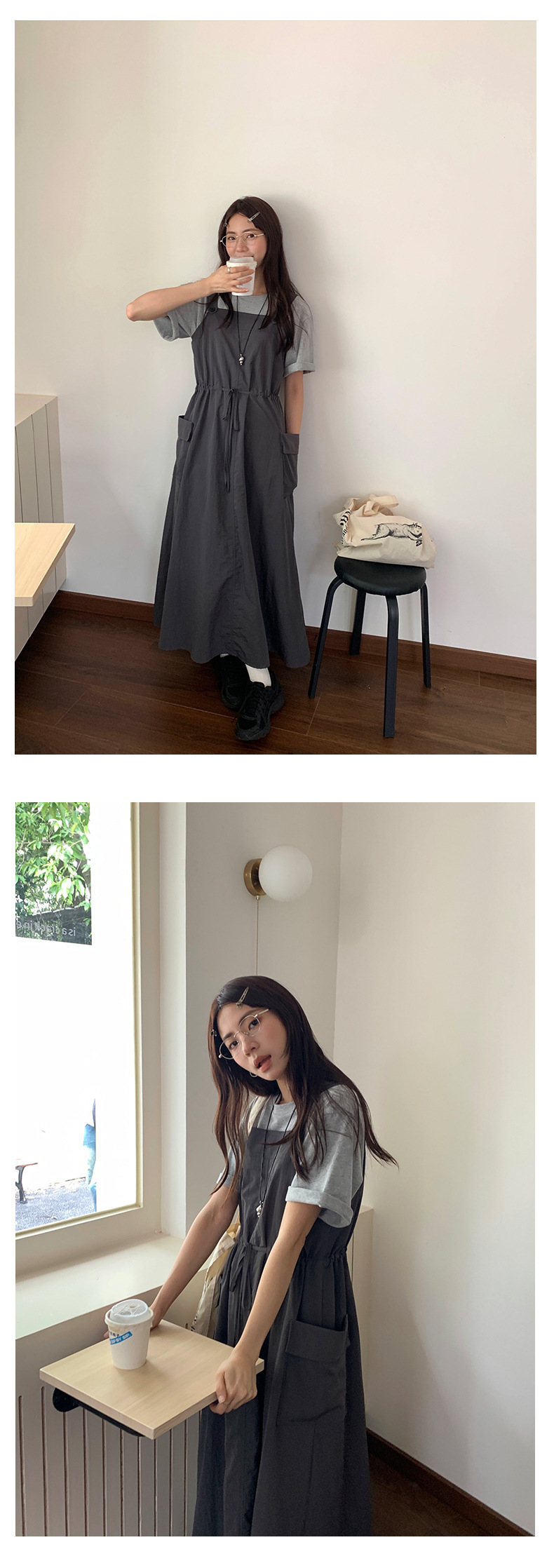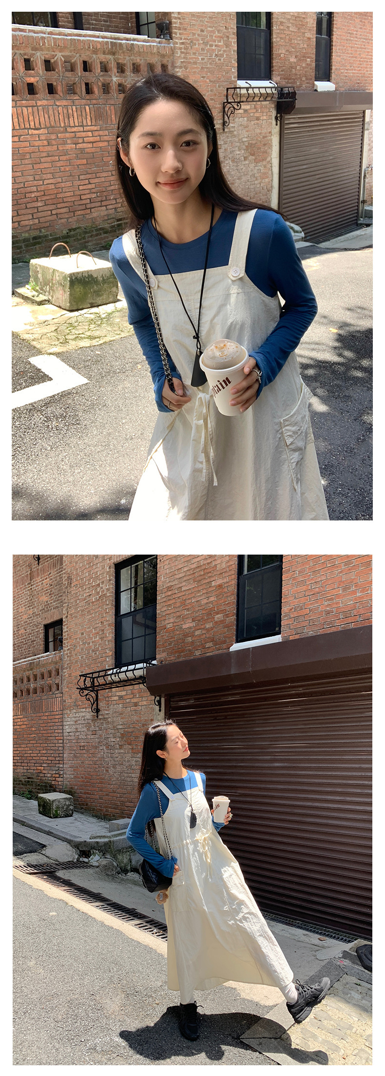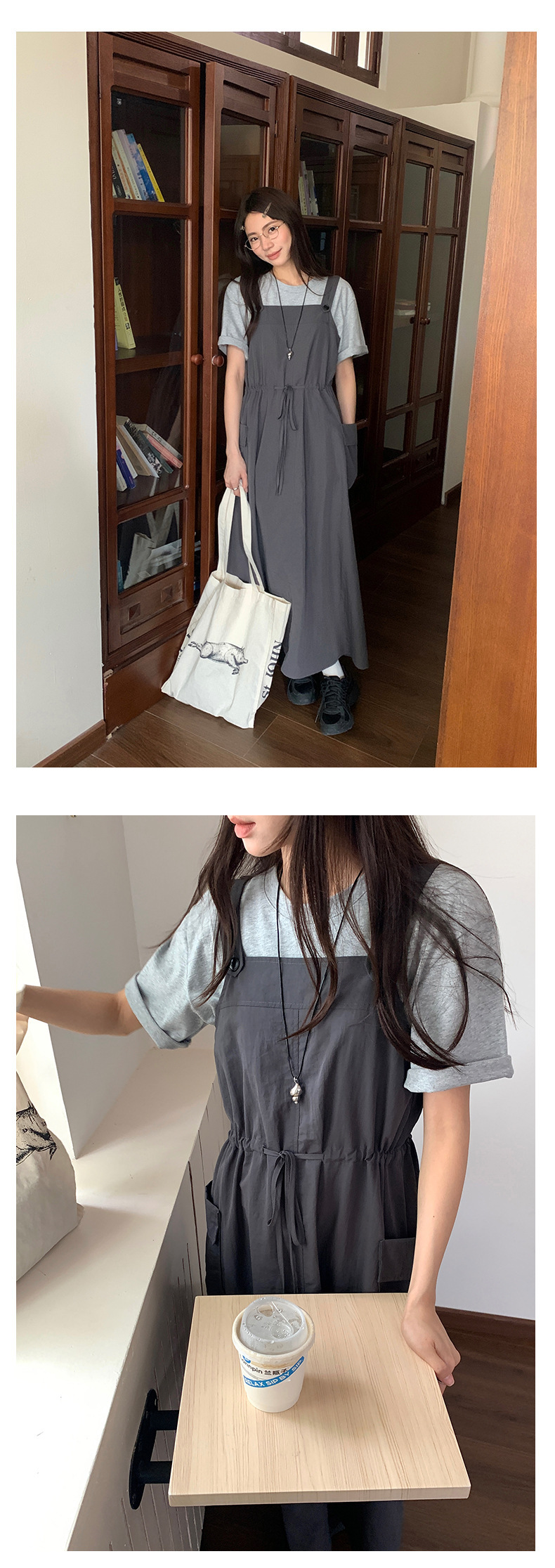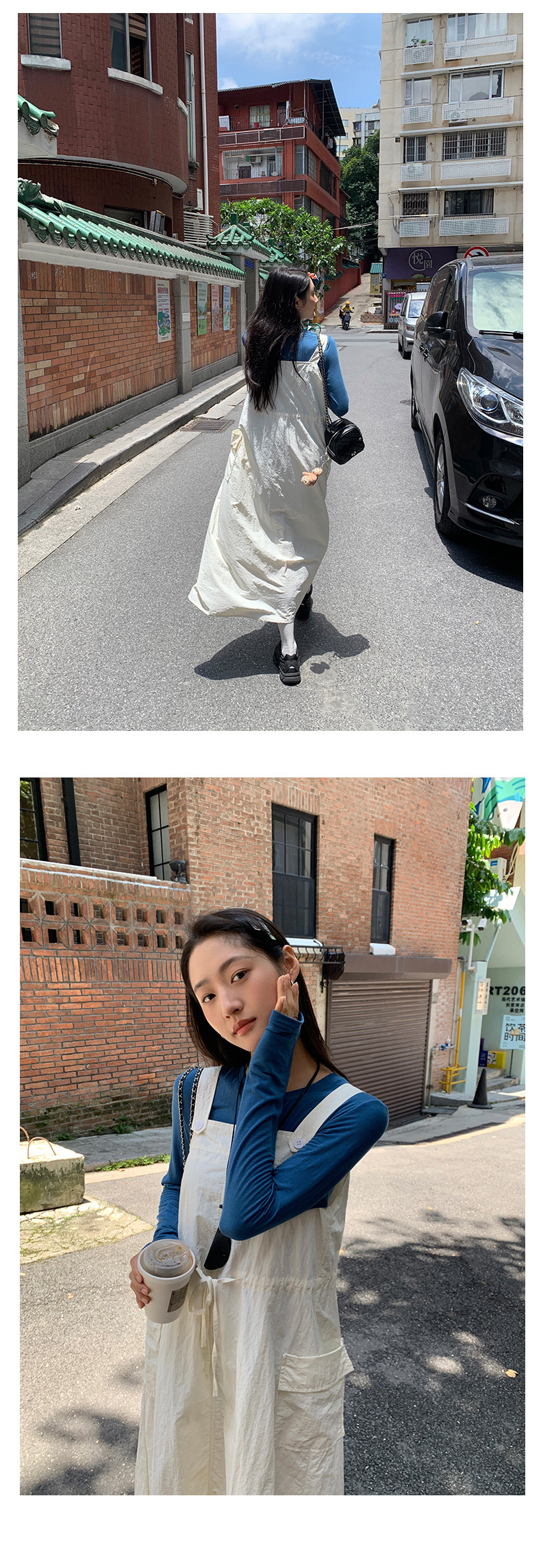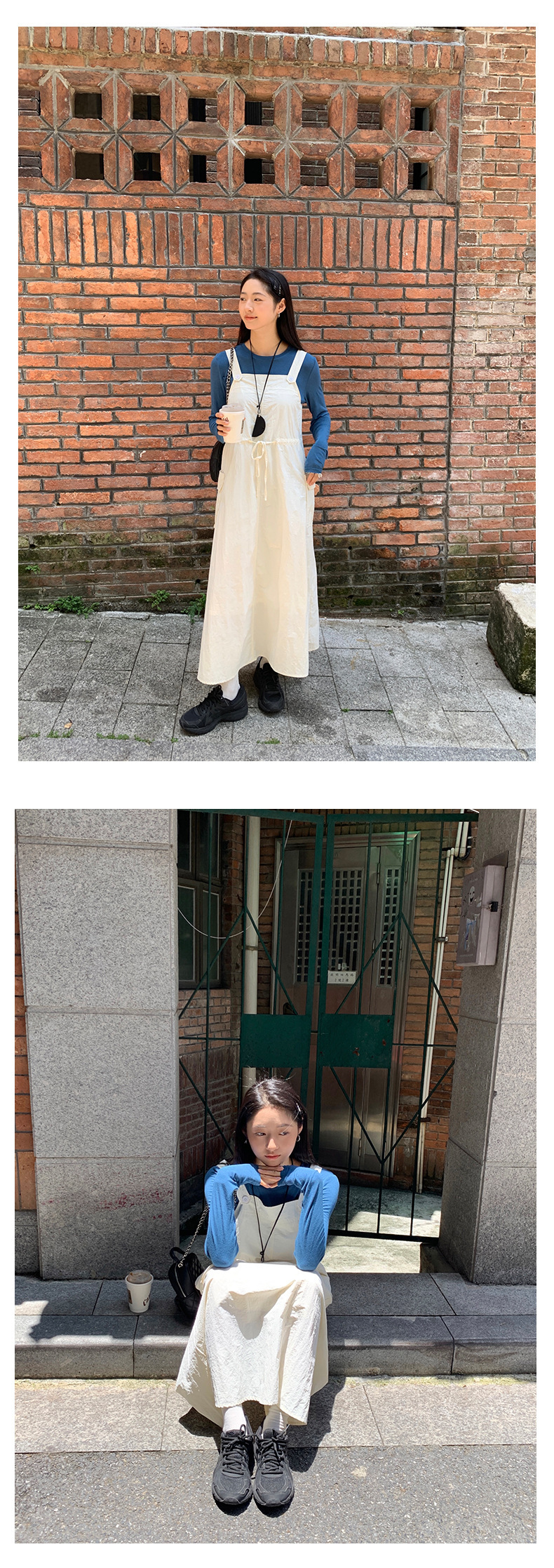 *o-ha-you*【FHZ143LY6008】慵懶風抽繩工裝吊帶連衣裙2024秋休閒收腰背帶長裙洋裝-2色
