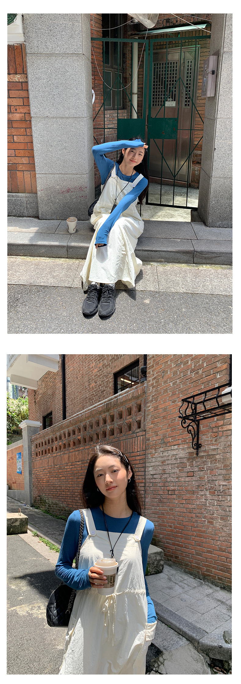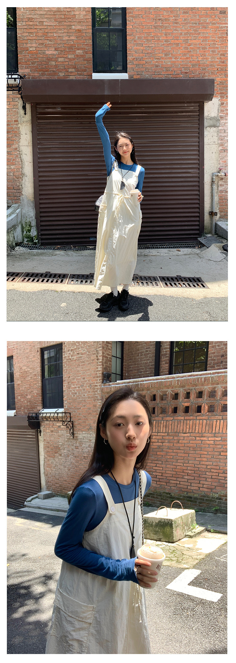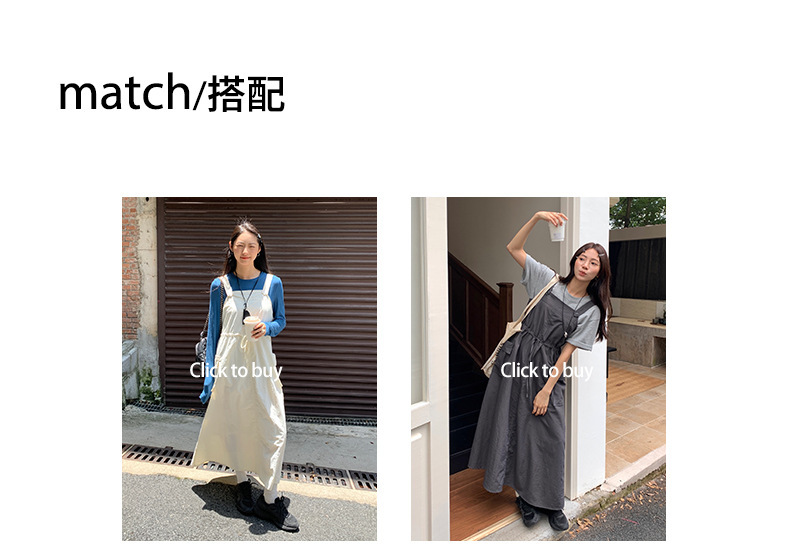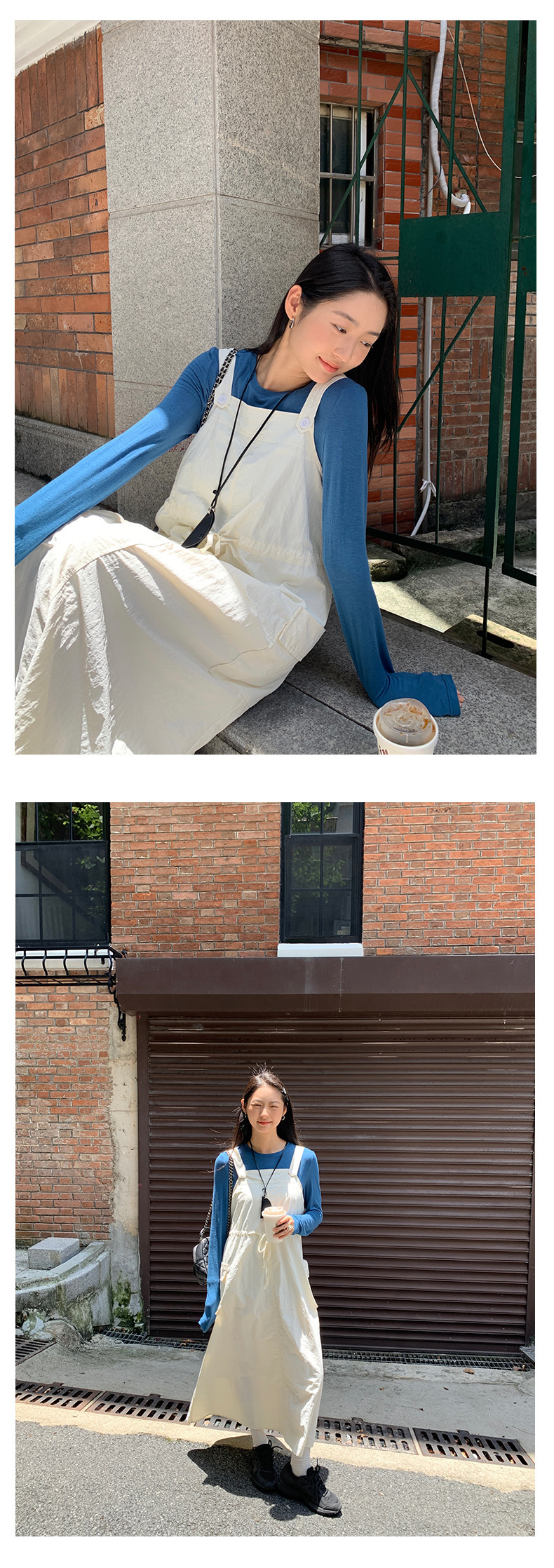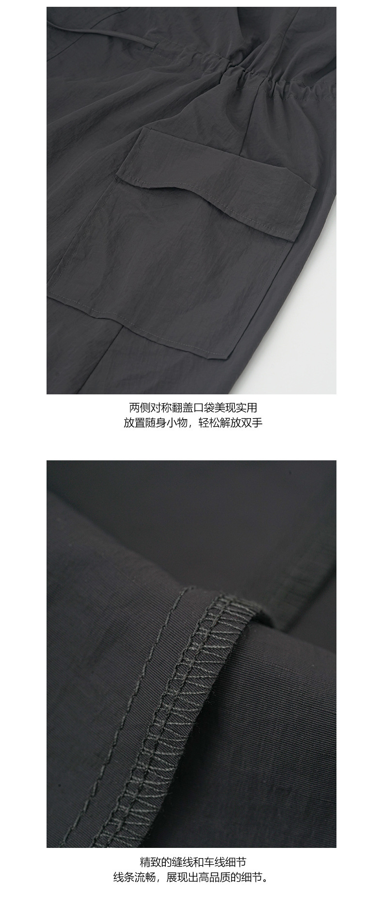 *o-ha-you*【FHZ143LY6008】慵懶風抽繩工裝吊帶連衣裙2024秋休閒收腰背帶長裙洋裝-2色