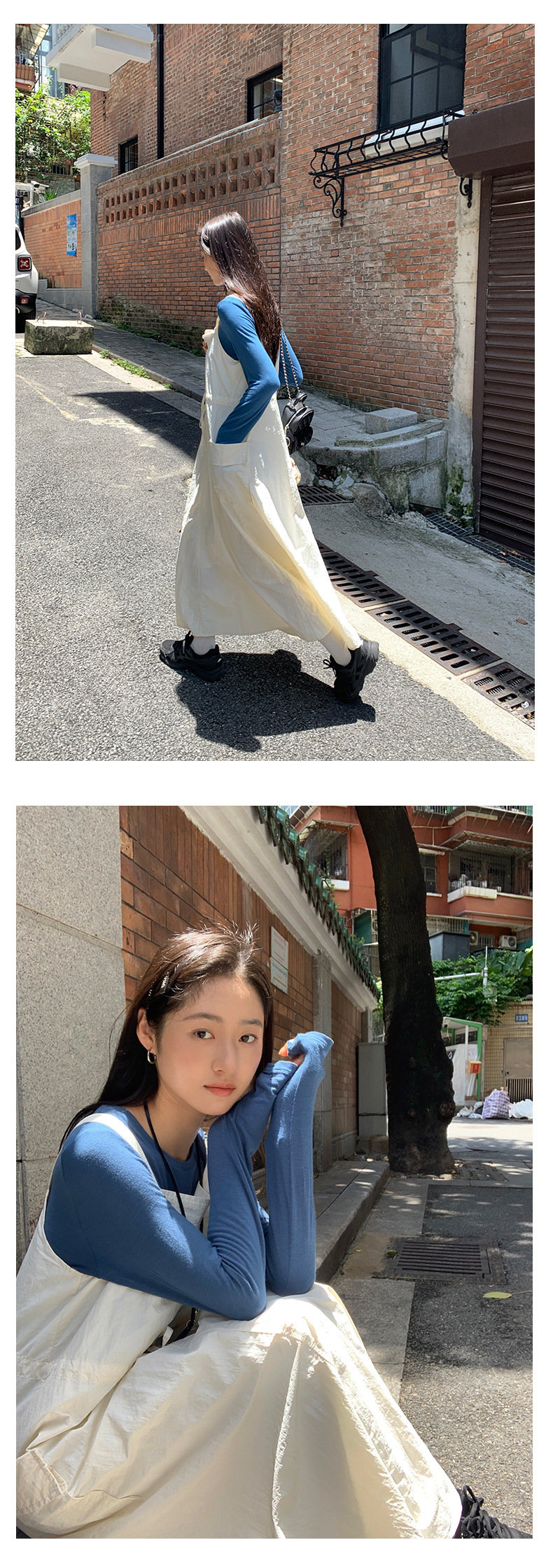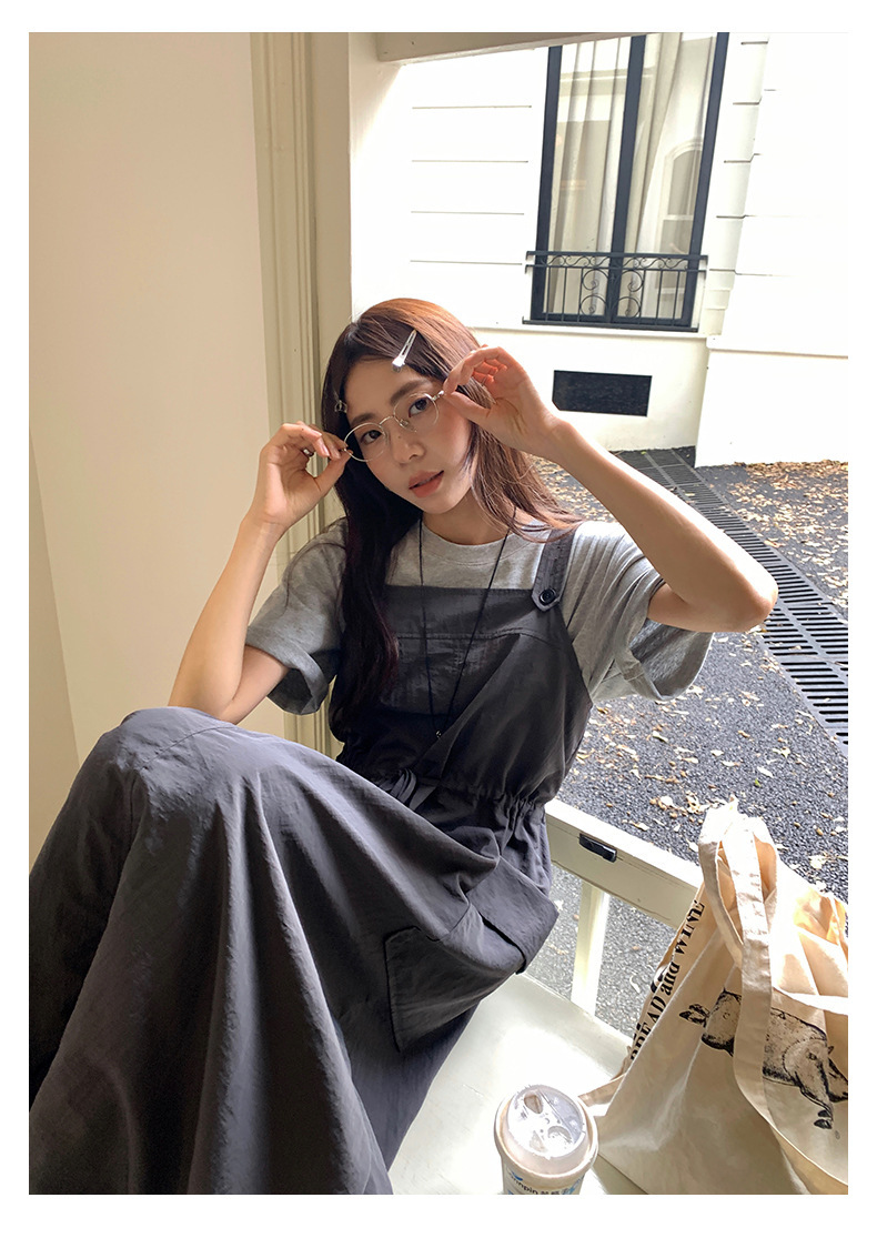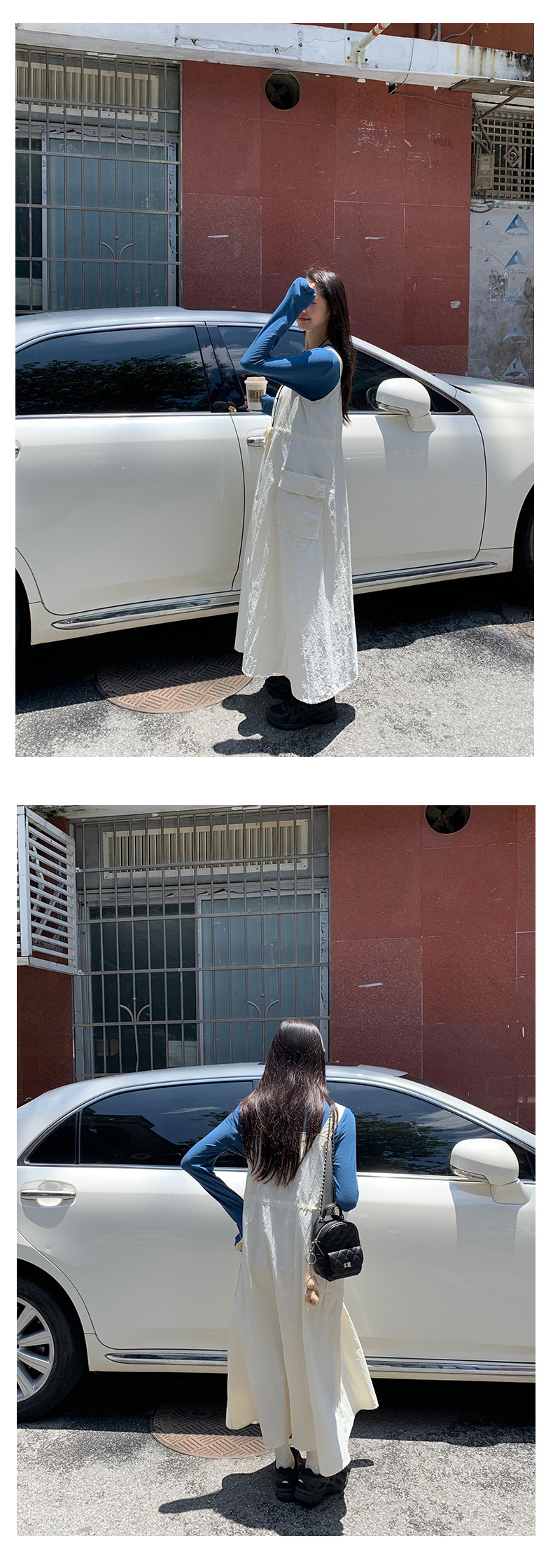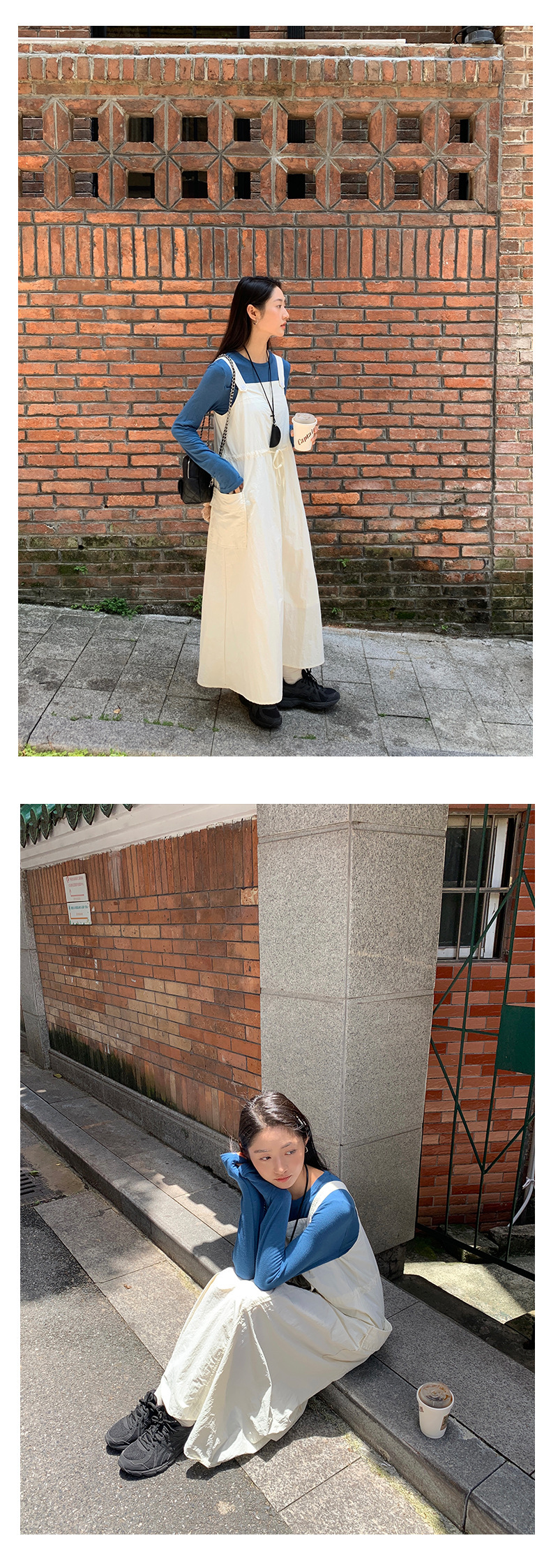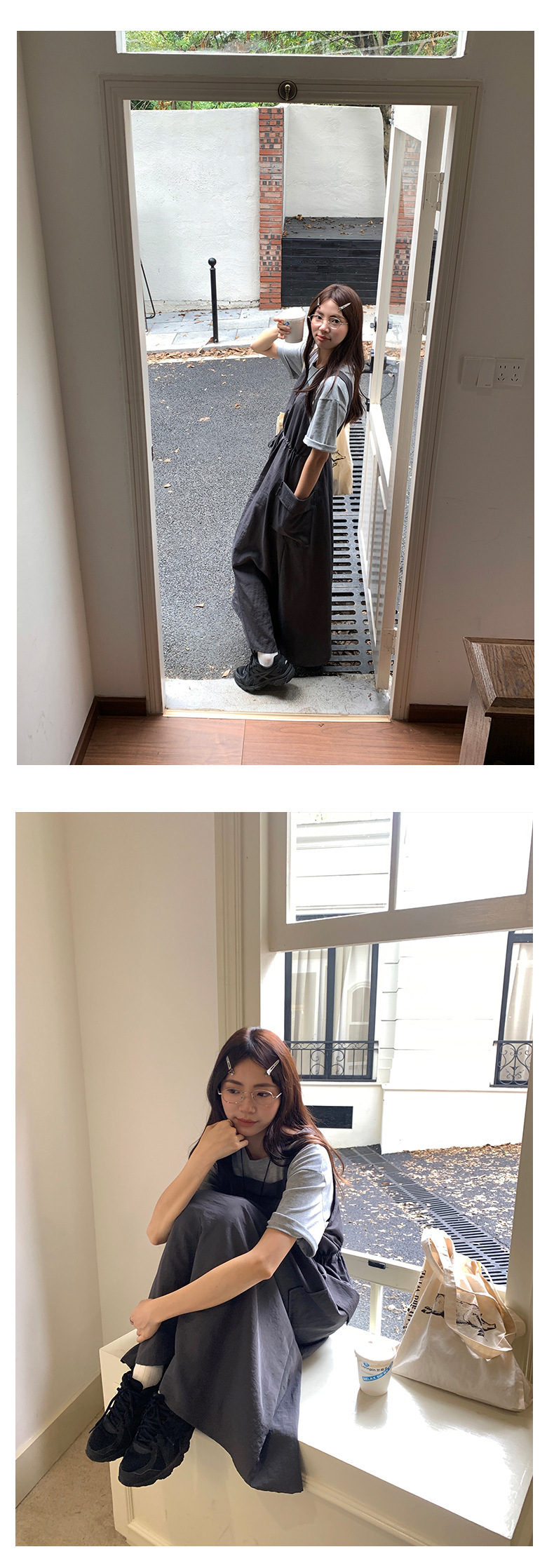 *o-ha-you*【FHZ143LY6008】慵懶風抽繩工裝吊帶連衣裙2024秋休閒收腰背帶長裙洋裝-2色