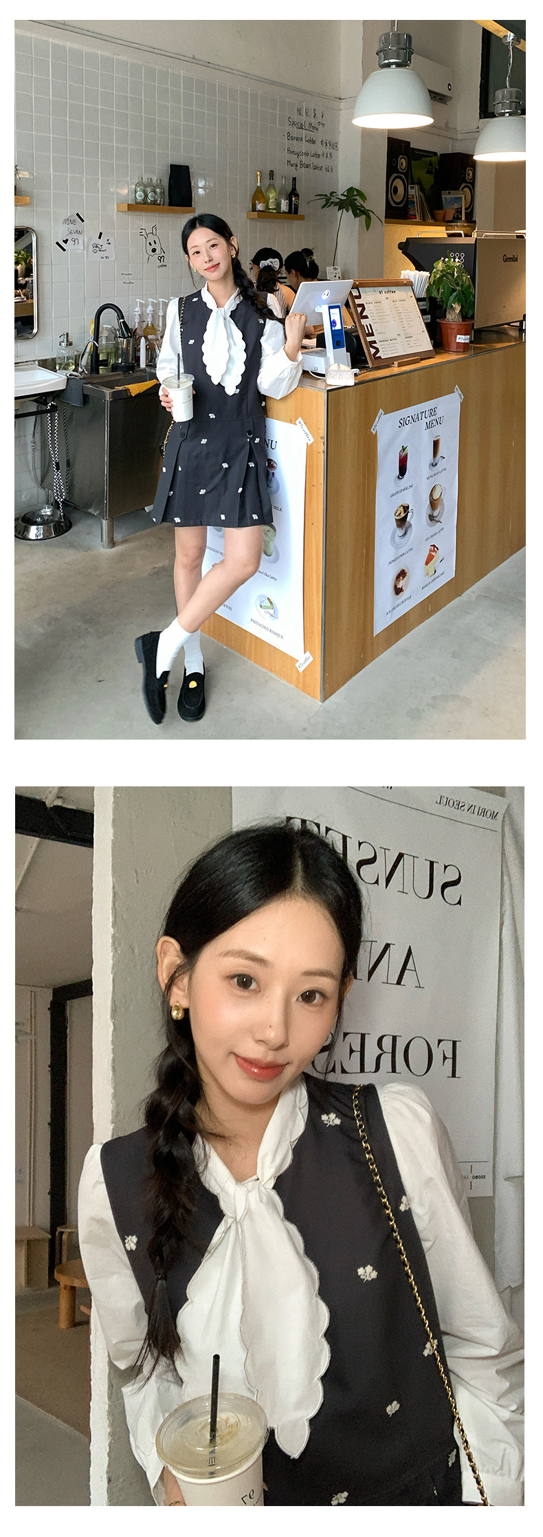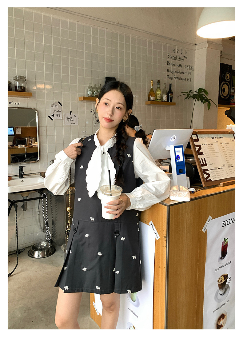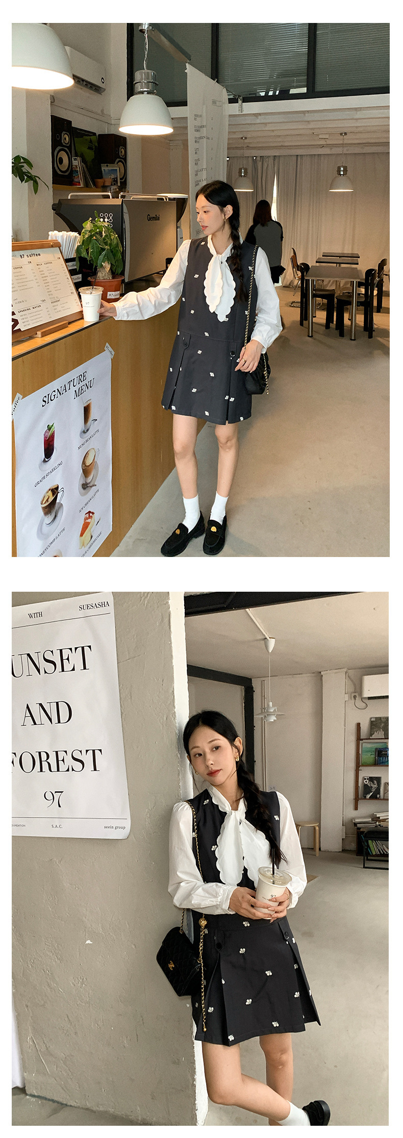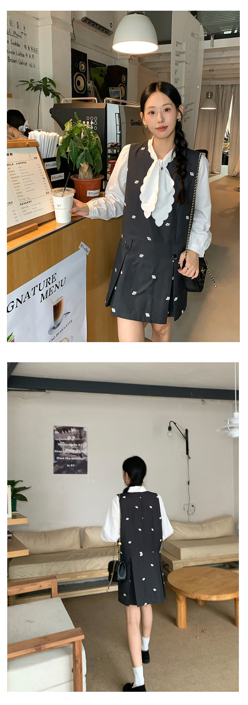 *o-ha-you*【FHZ143LY7027】法式花朵刺繡背心連衣裙2024秋韓版修身無袖背帶裙洋裝