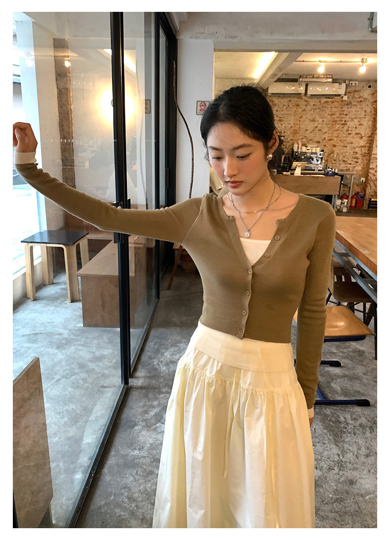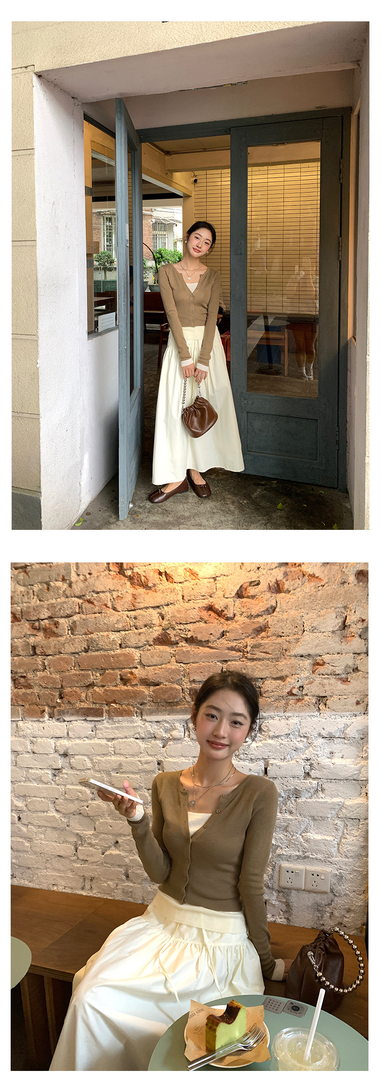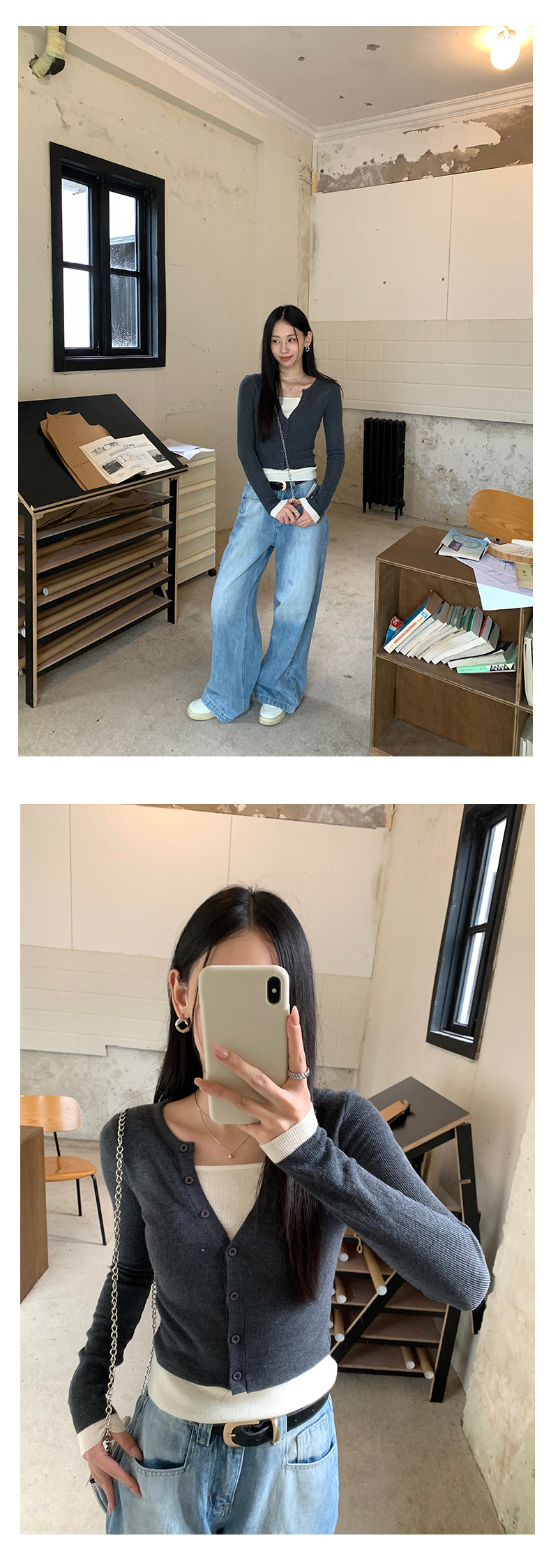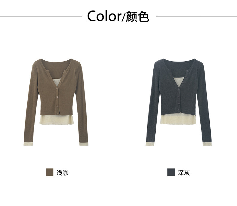 *o-ha-you*【FHZ143MY6023】辣妹V領假兩件長袖針織衫2024秋修身顯瘦打底上衣-2色