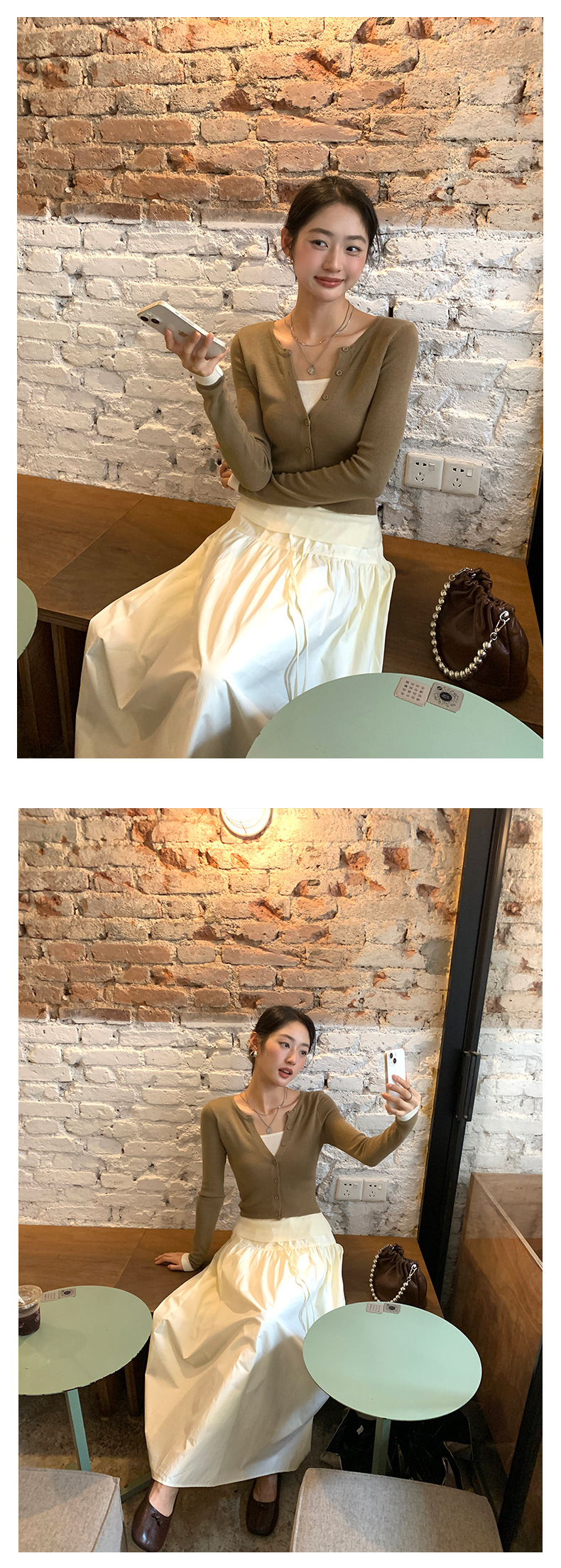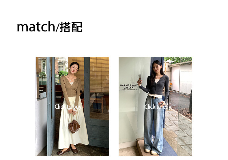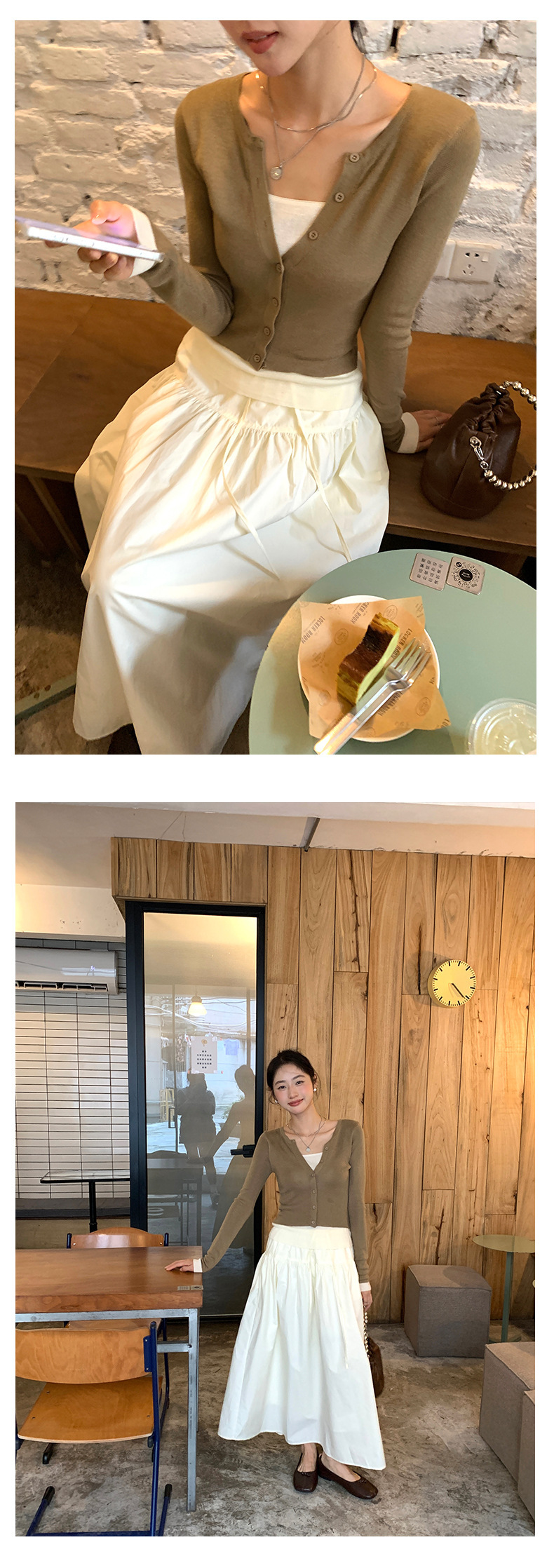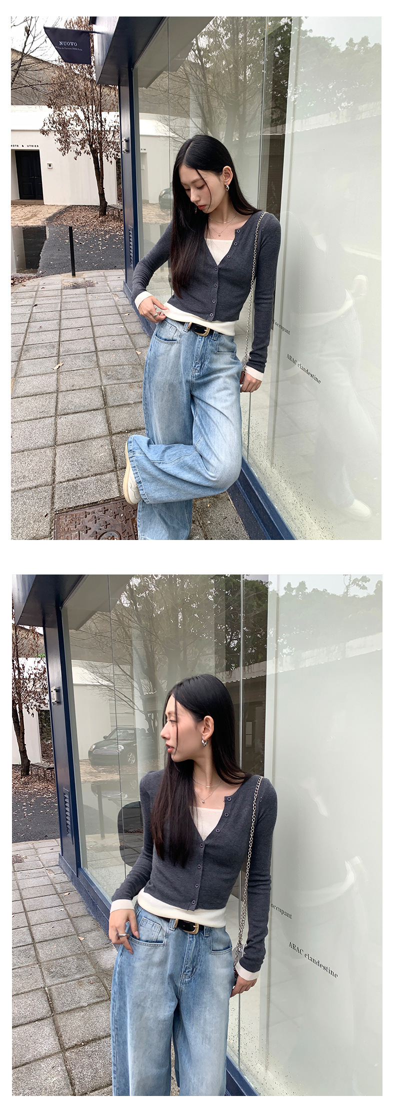 *o-ha-you*【FHZ143MY6023】辣妹V領假兩件長袖針織衫2024秋修身顯瘦打底上衣-2色