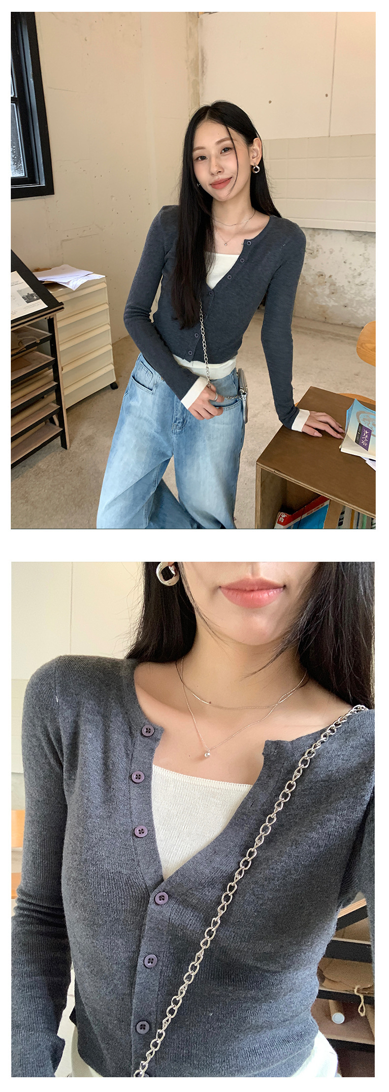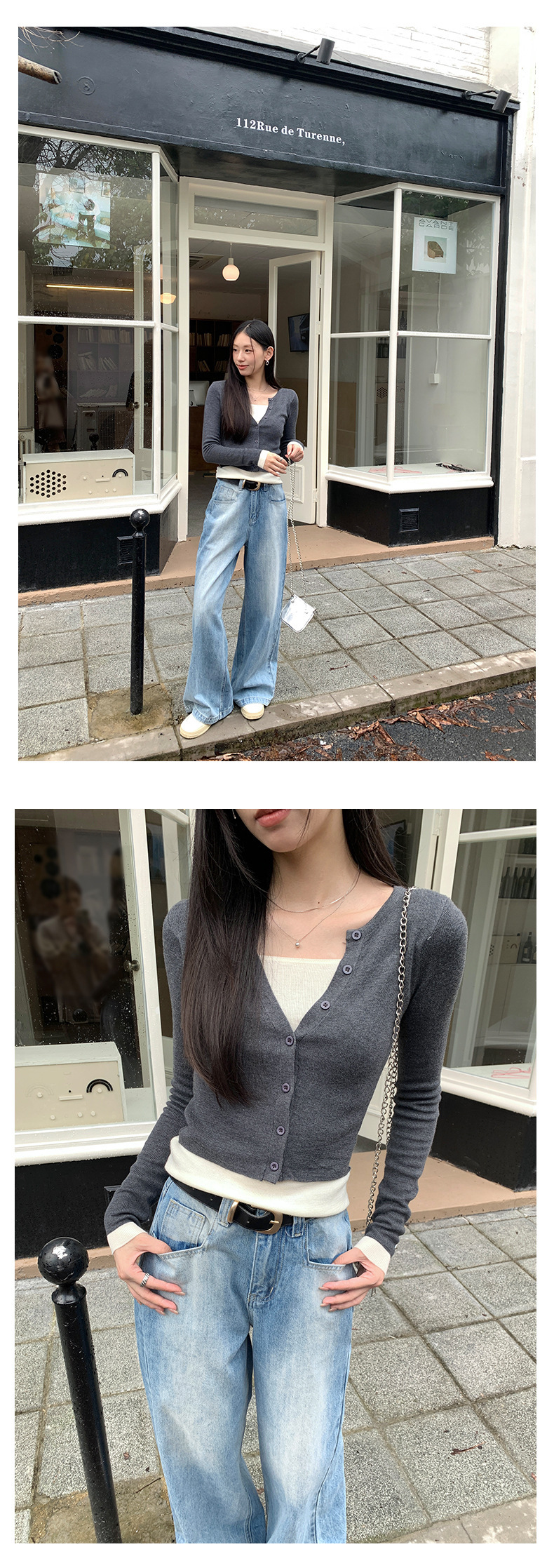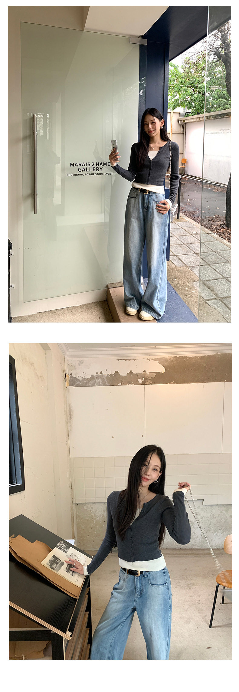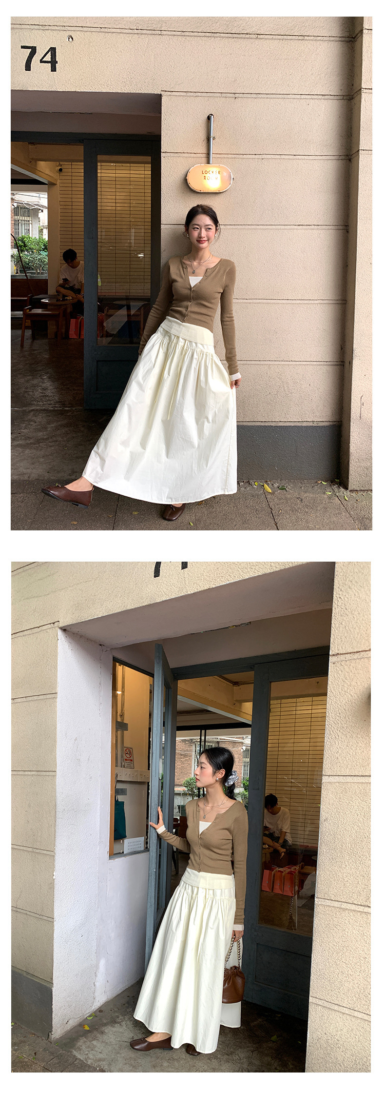 *o-ha-you*【FHZ143MY6023】辣妹V領假兩件長袖針織衫2024秋修身顯瘦打底上衣-2色