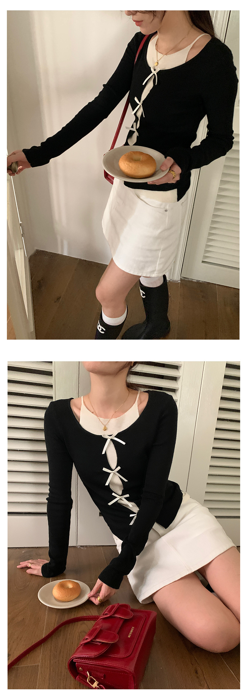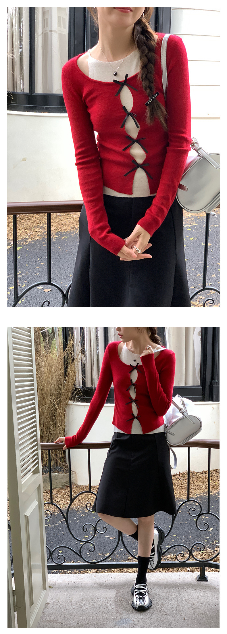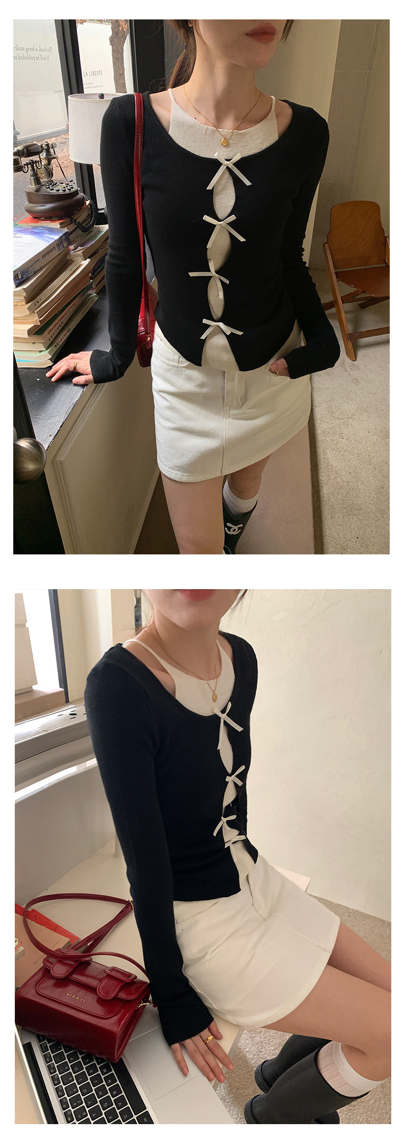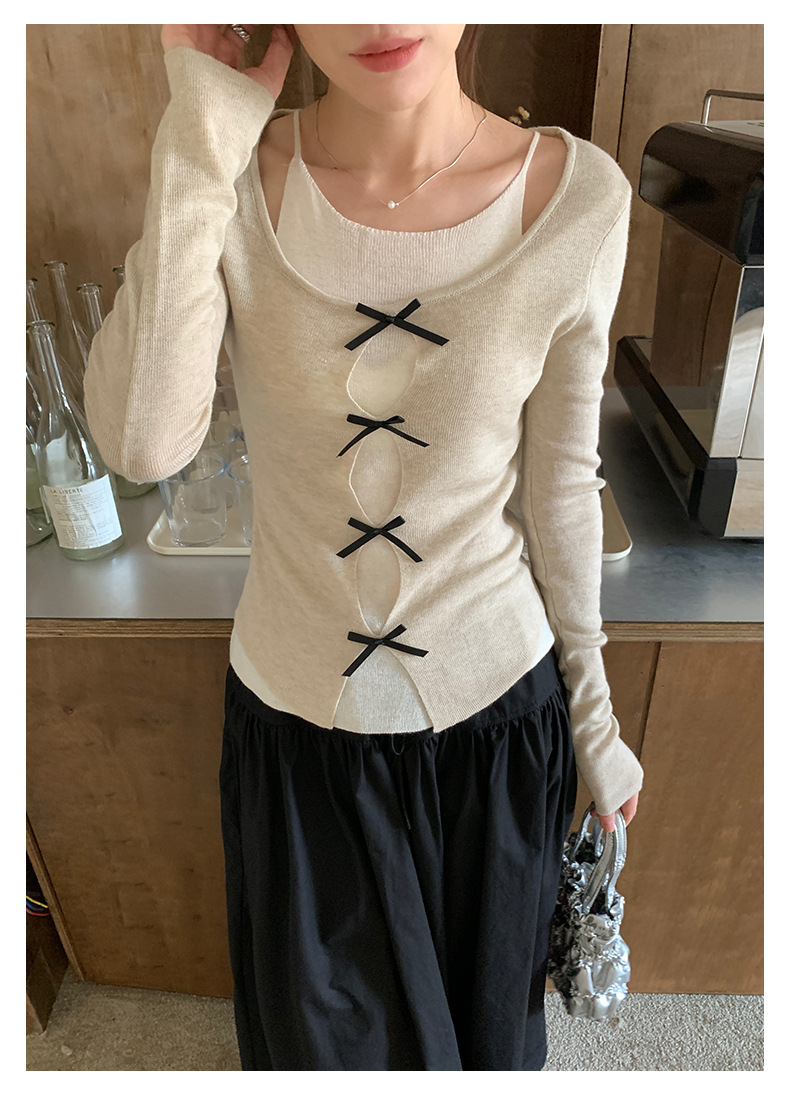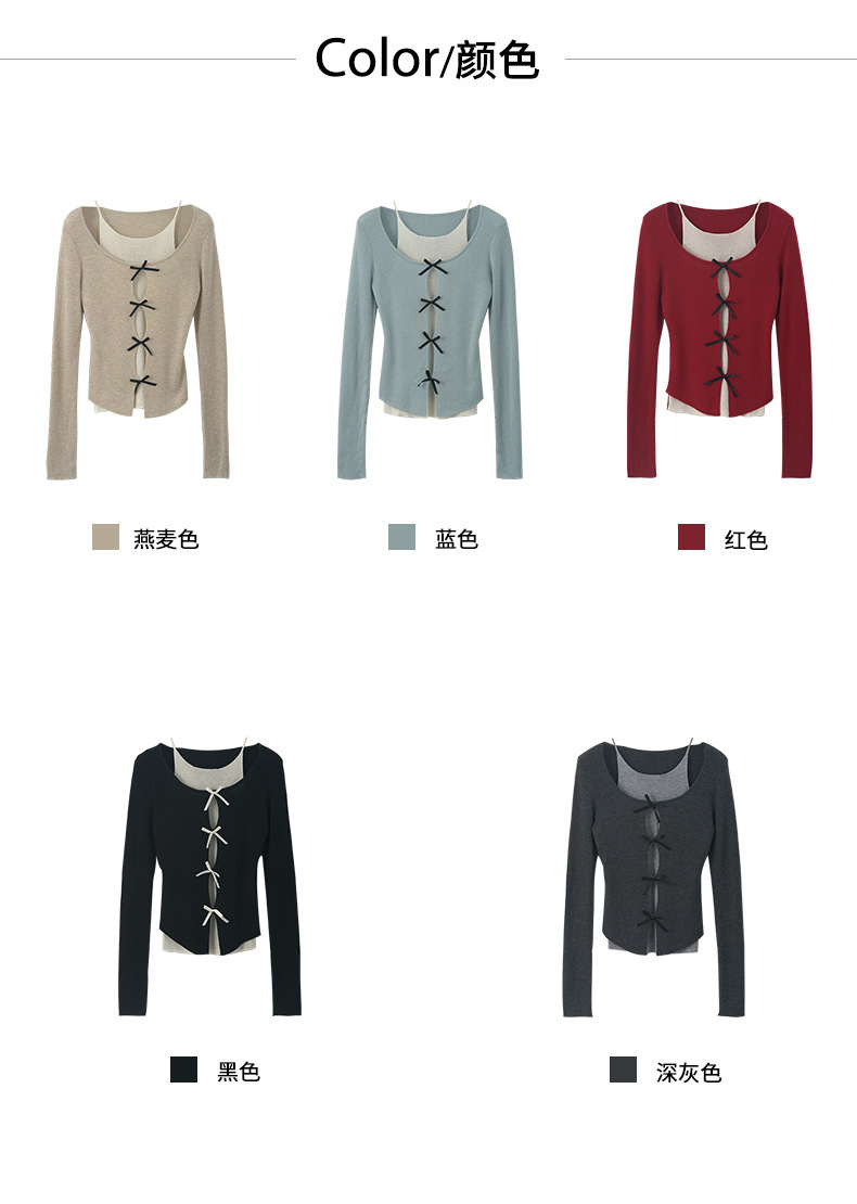 *o-ha-you*【FHZ143MY6028】甜辣假兩件蝴蝶結針織衫2024秋季韓版顯瘦打底長袖-5色