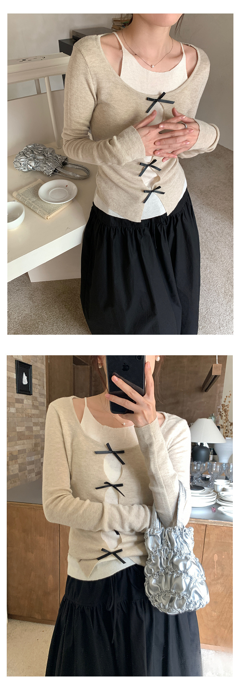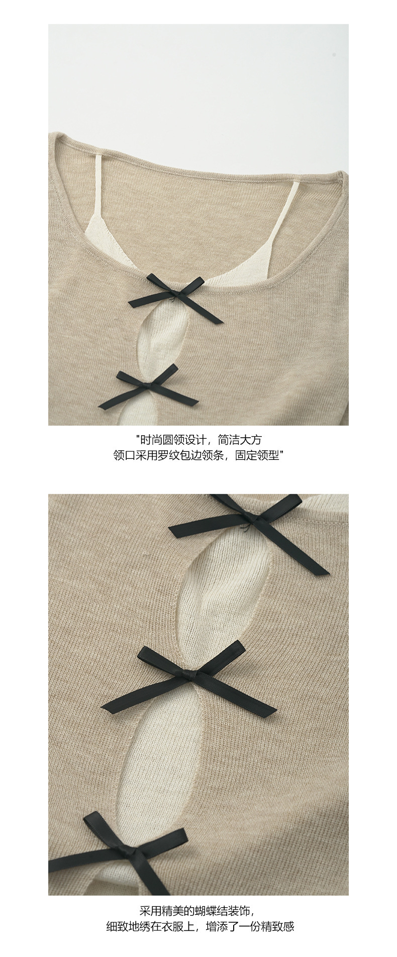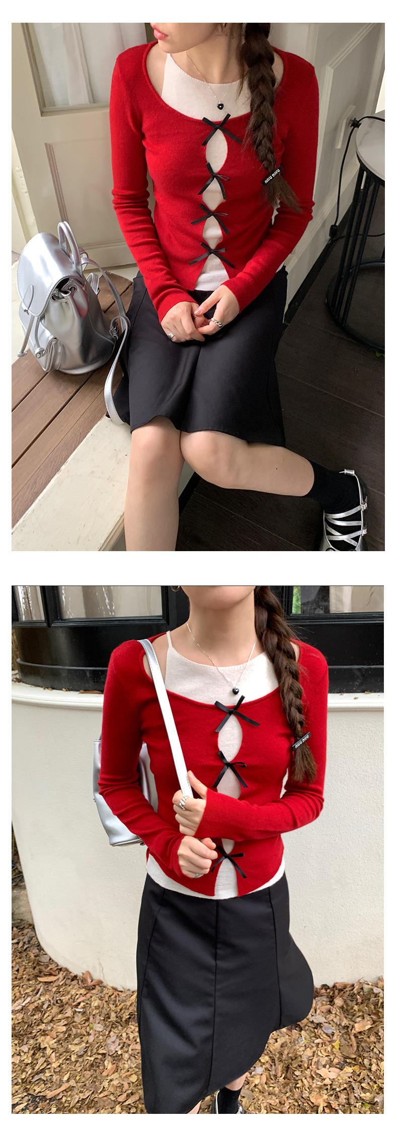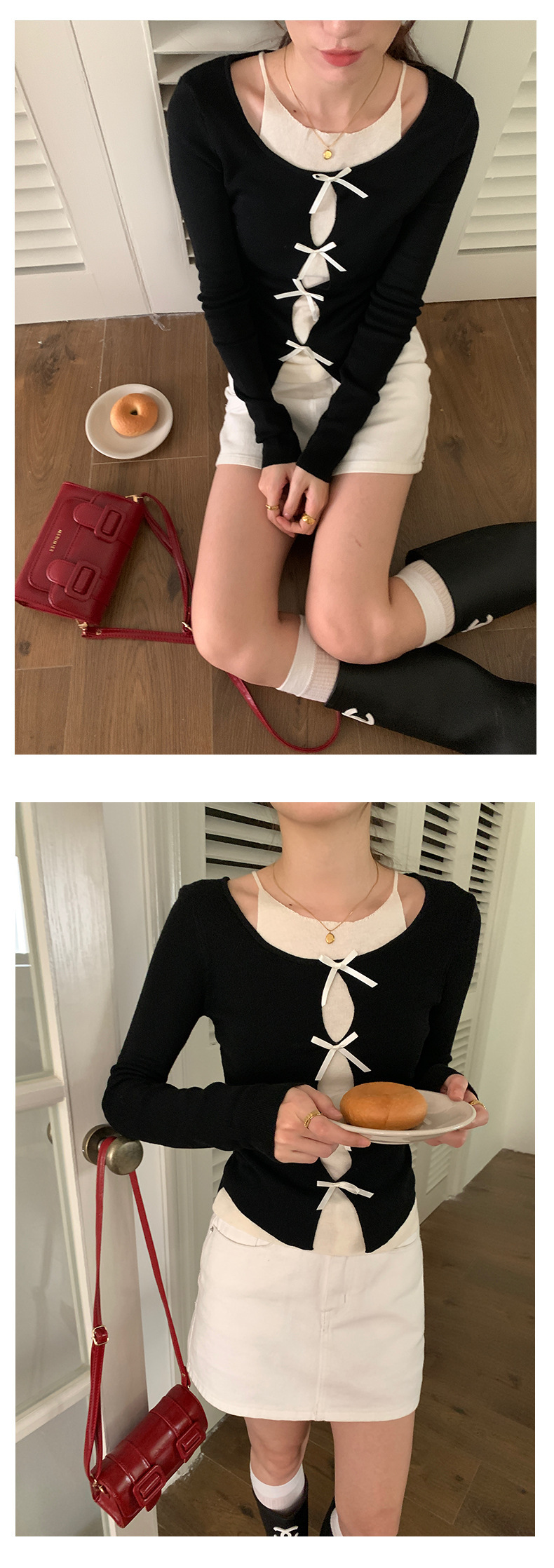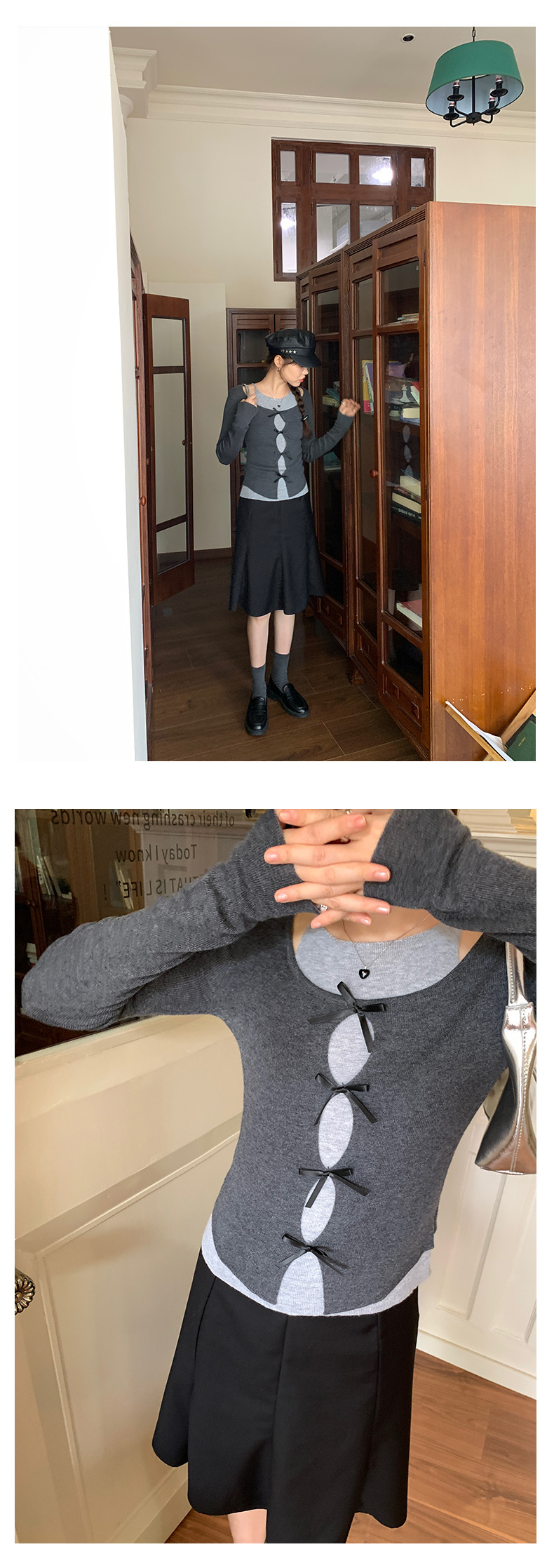 *o-ha-you*【FHZ143MY6028】甜辣假兩件蝴蝶結針織衫2024秋季韓版顯瘦打底長袖-5色