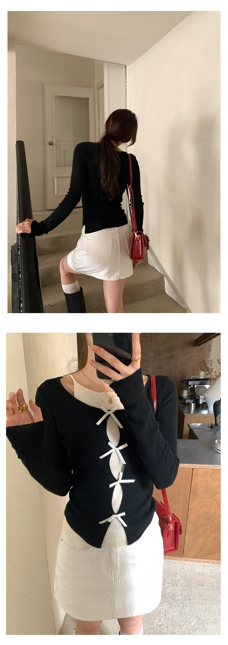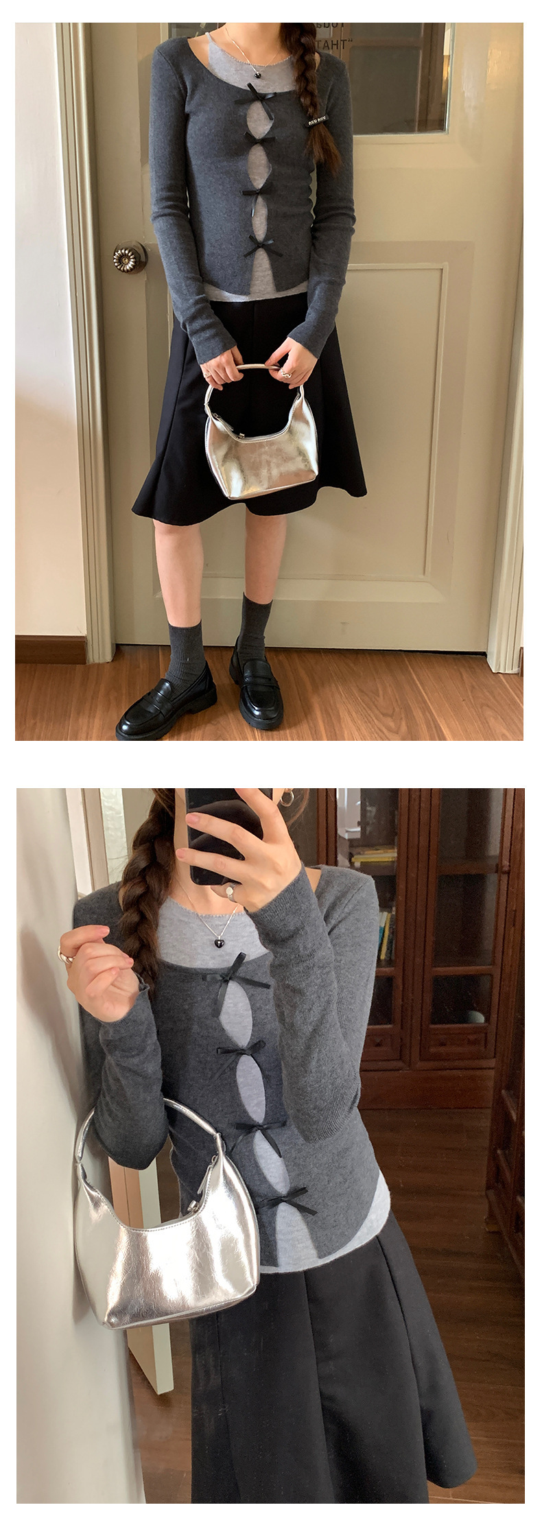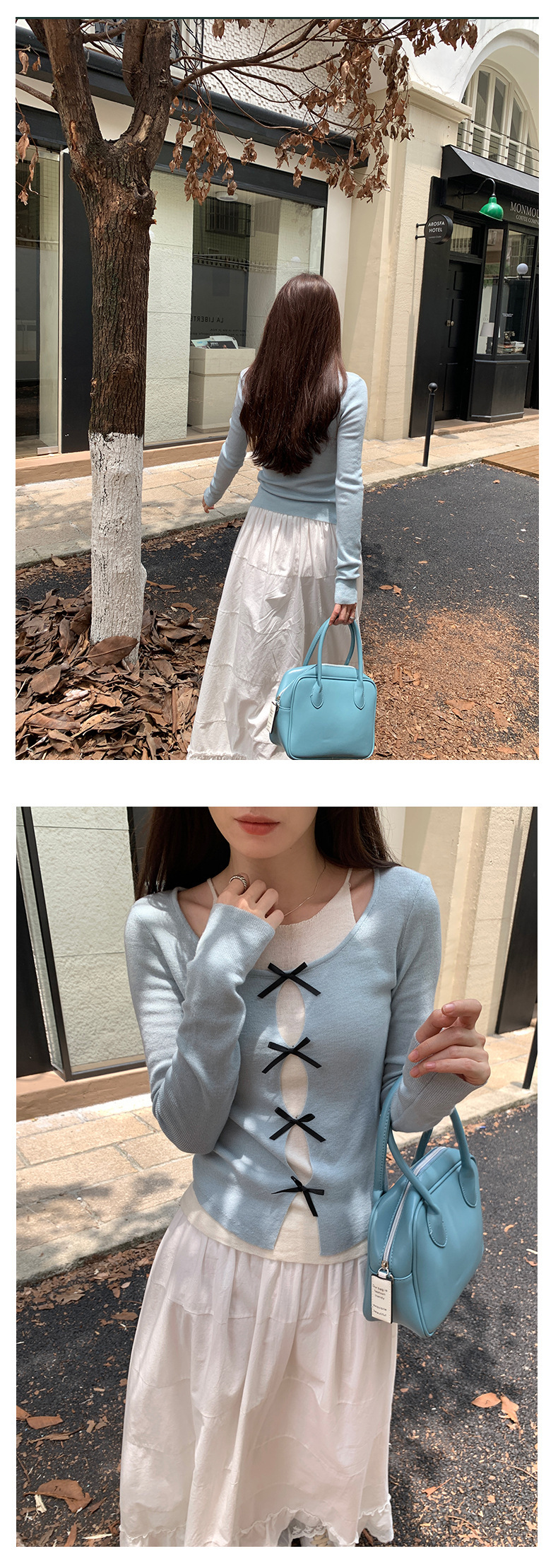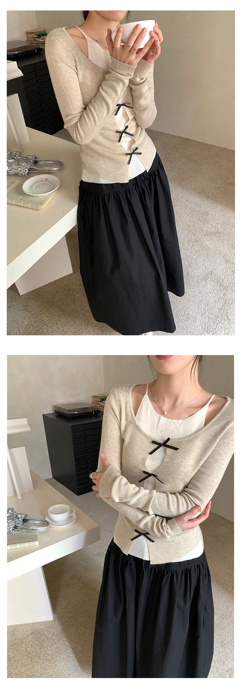 *o-ha-you*【FHZ143MY6028】甜辣假兩件蝴蝶結針織衫2024秋季韓版顯瘦打底長袖-5色