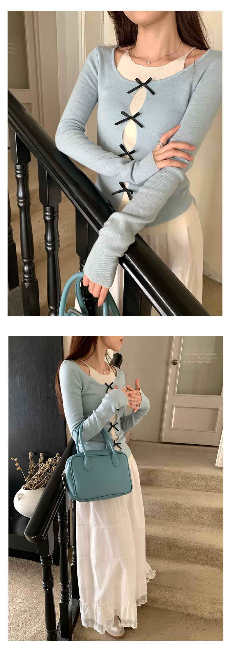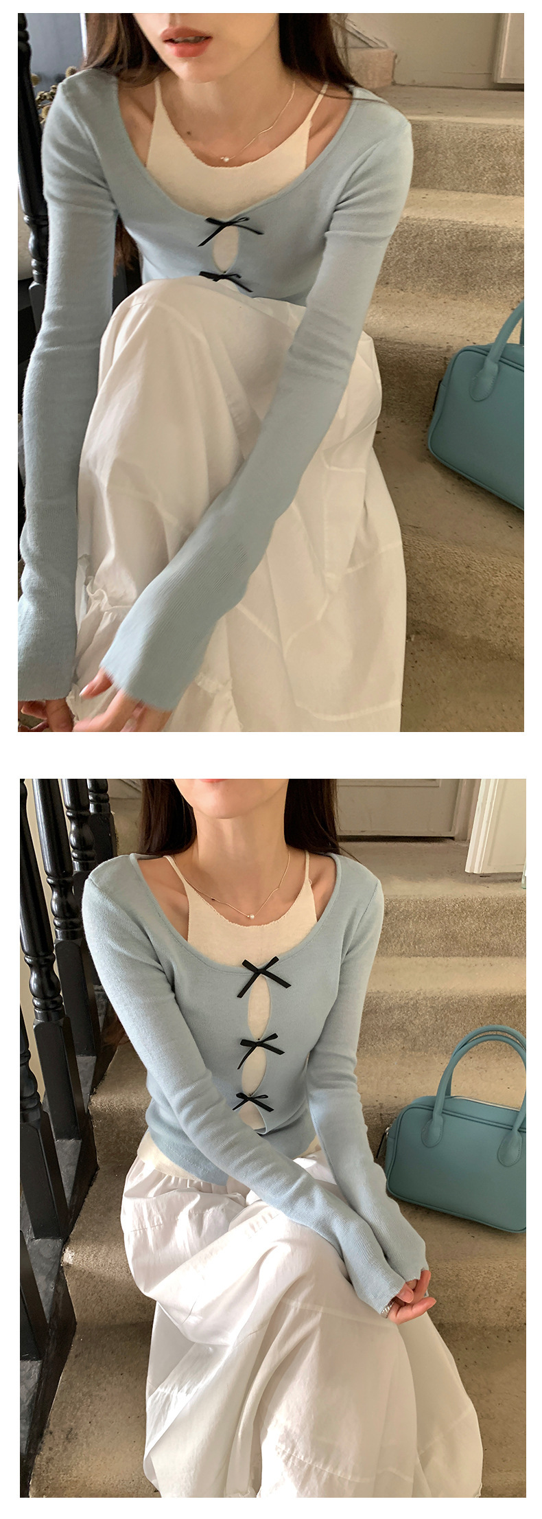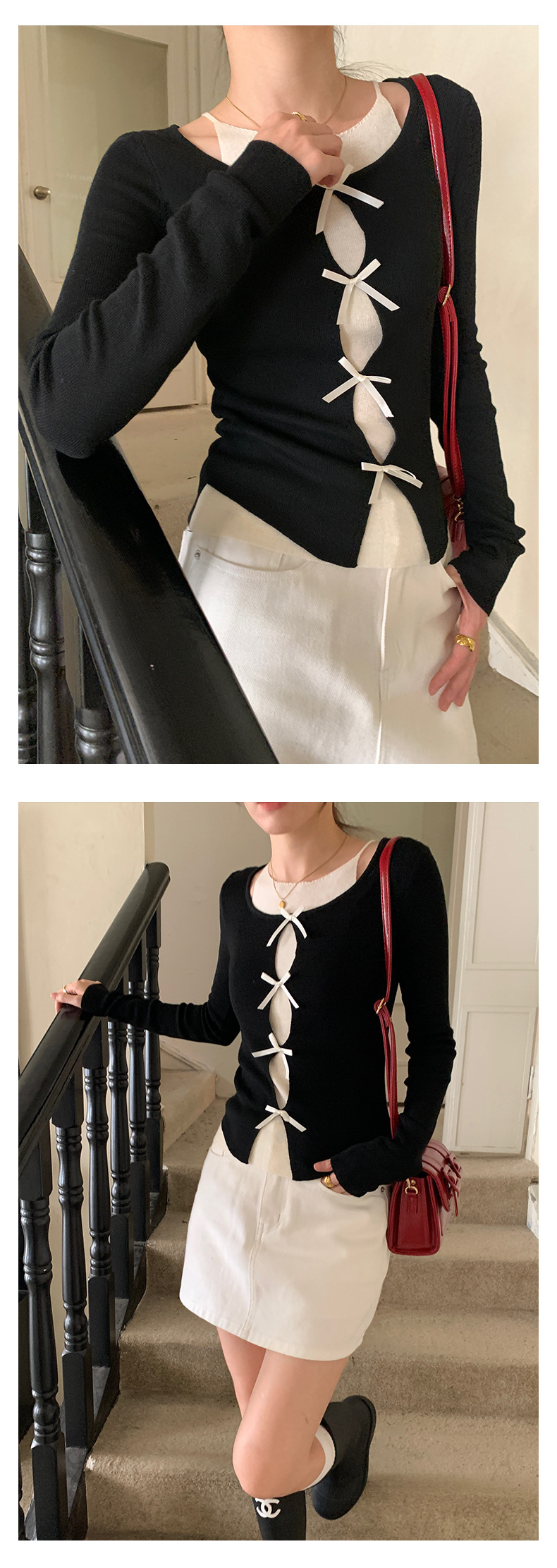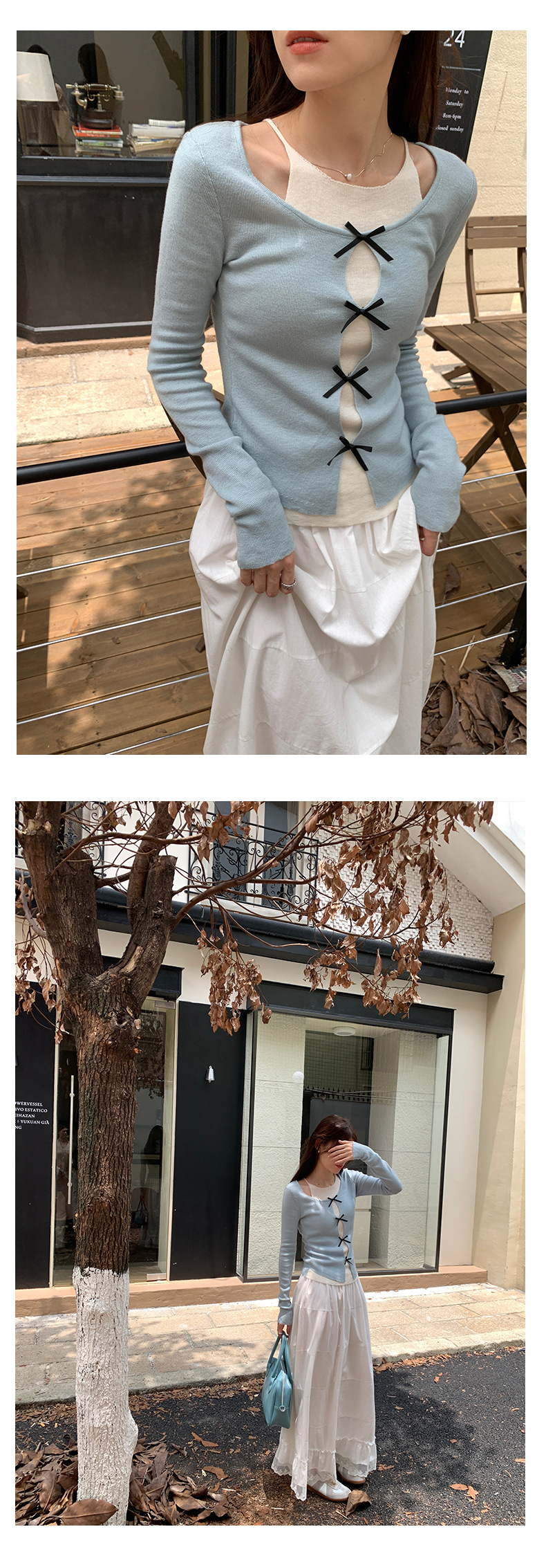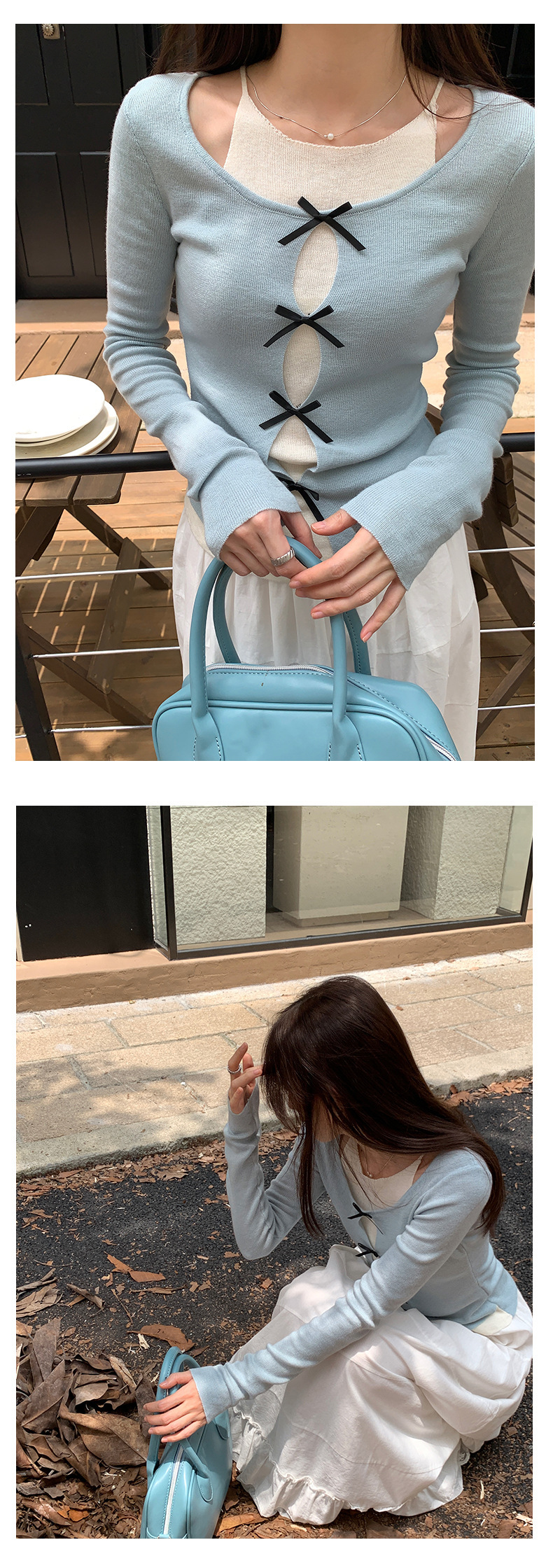 *o-ha-you*【FHZ143MY6028】甜辣假兩件蝴蝶結針織衫2024秋季韓版顯瘦打底長袖-5色