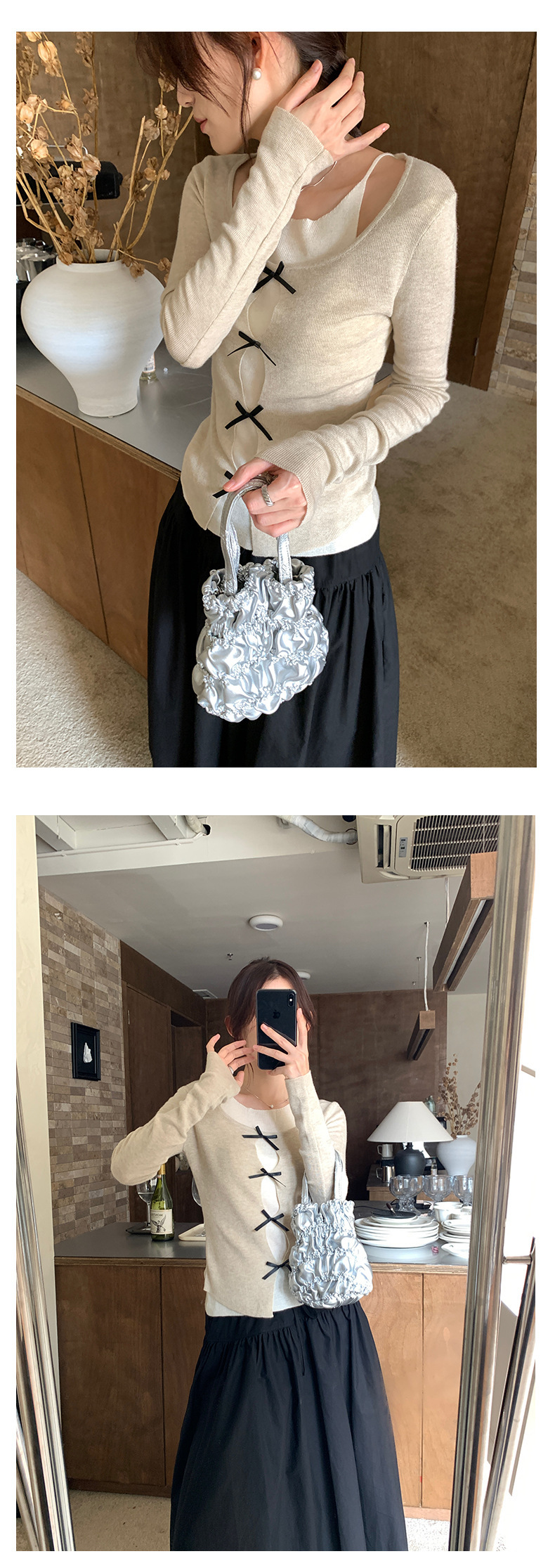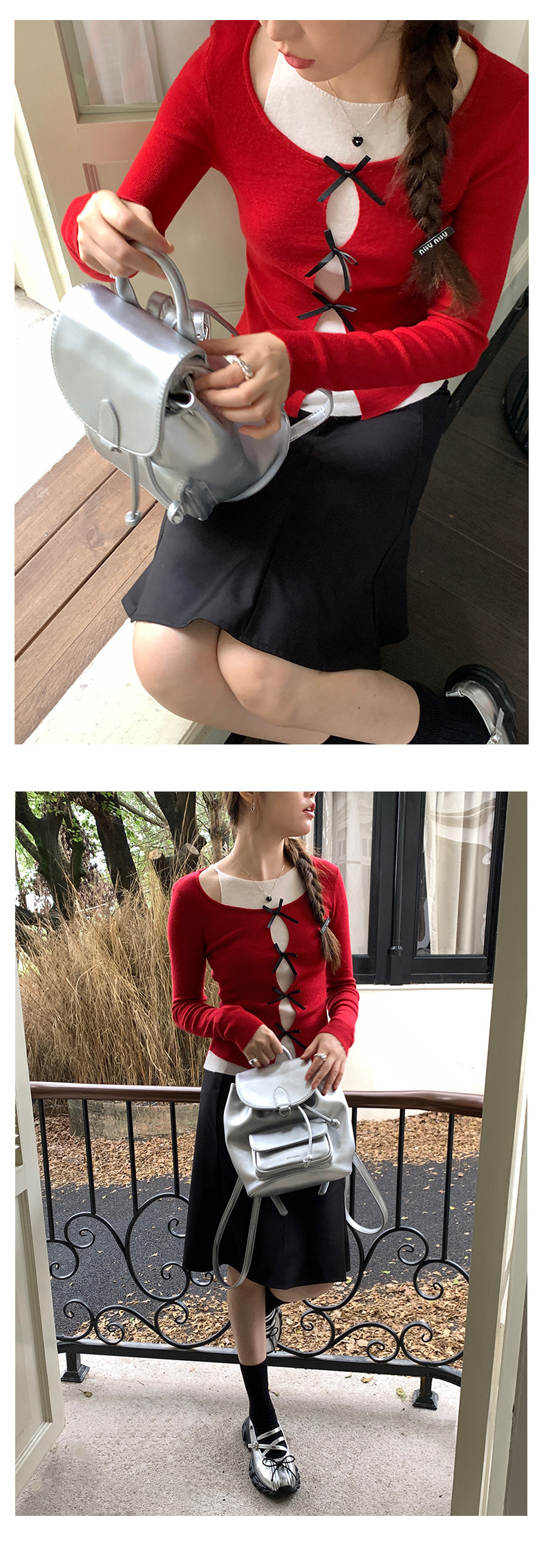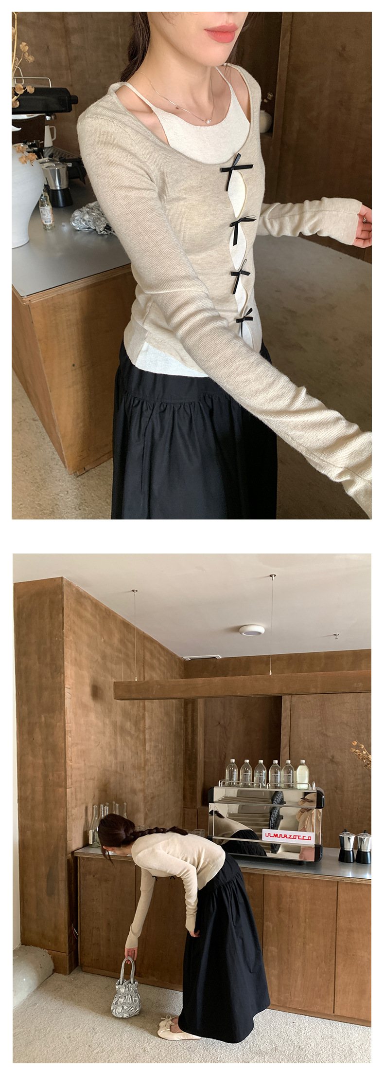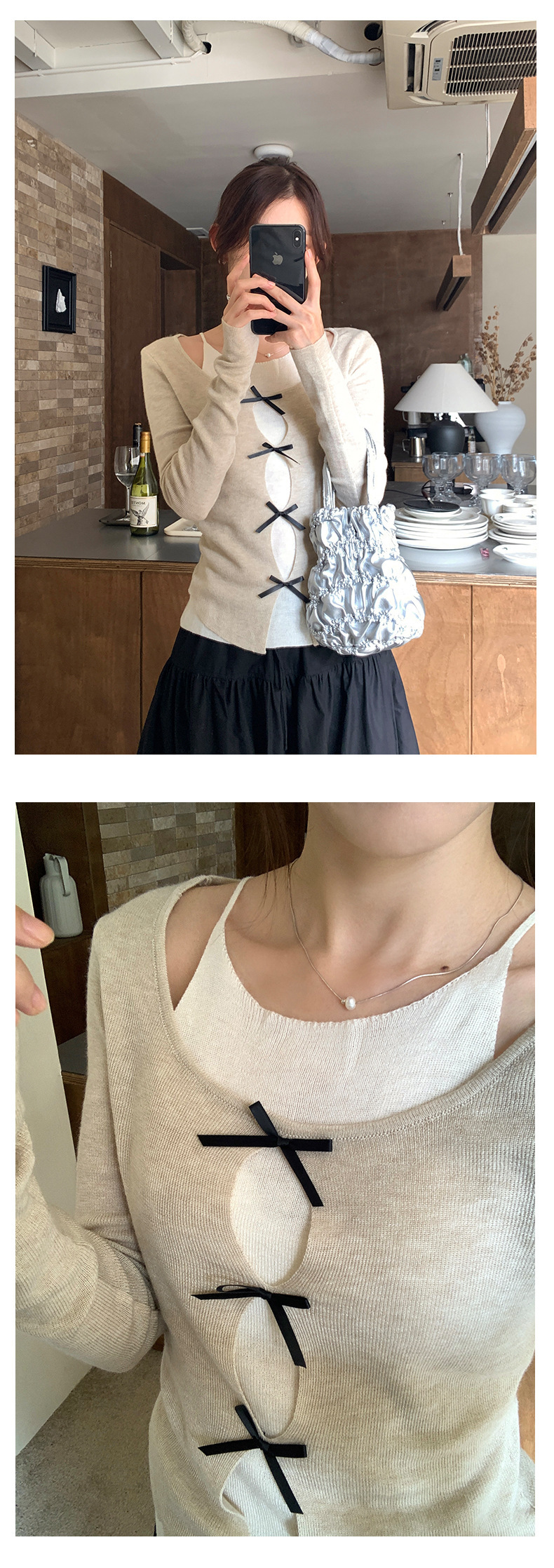 *o-ha-you*【FHZ143MY6028】甜辣假兩件蝴蝶結針織衫2024秋季韓版顯瘦打底長袖-5色