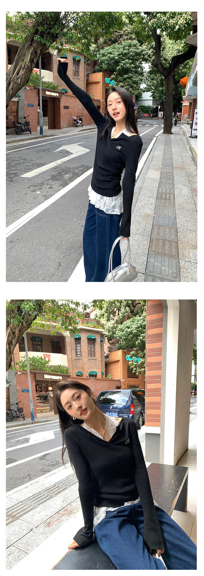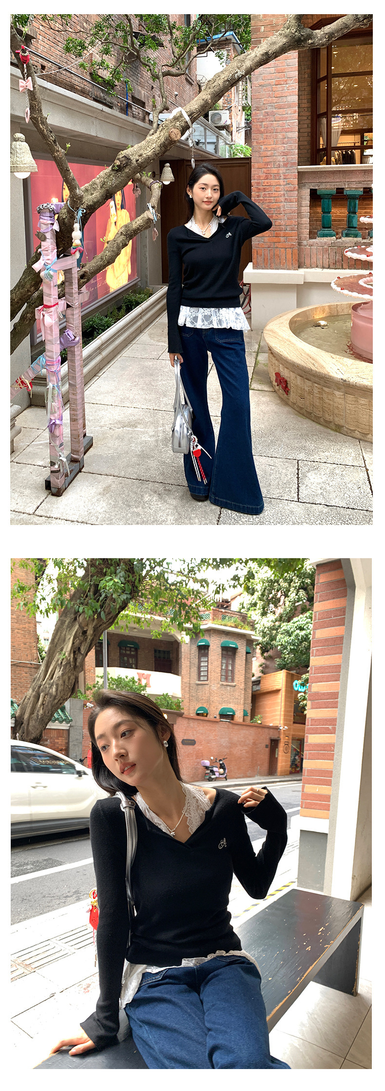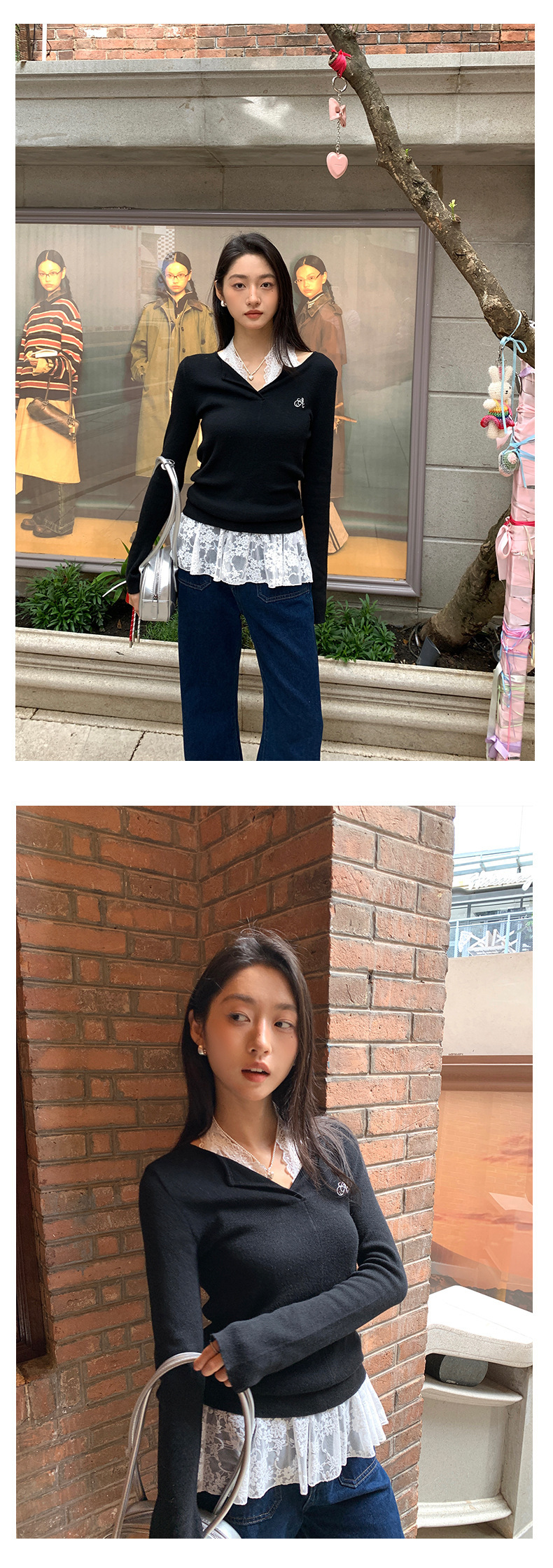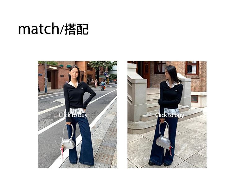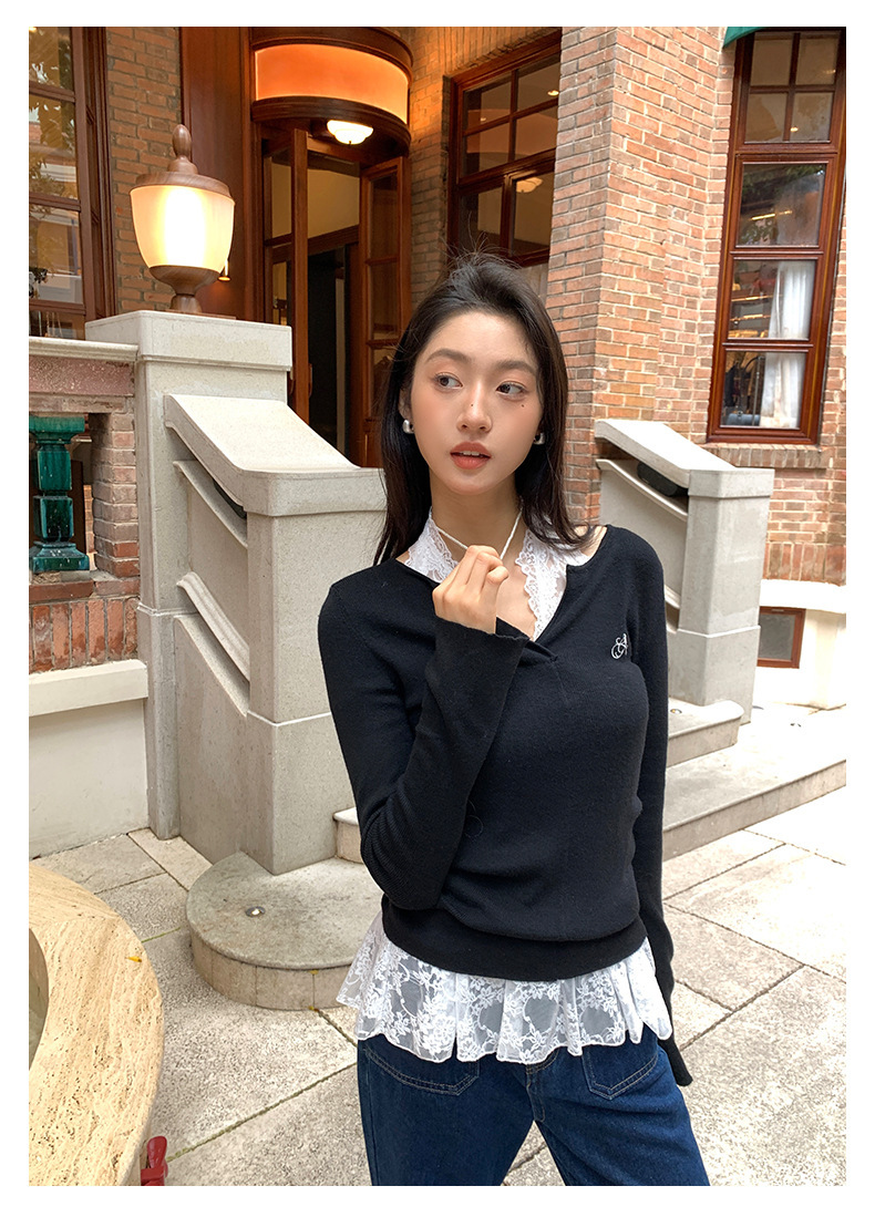 *o-ha-you*【FHZ143MY7073】甜辣V領長袖針織衫2024秋季韓版修身顯瘦打底上衣
