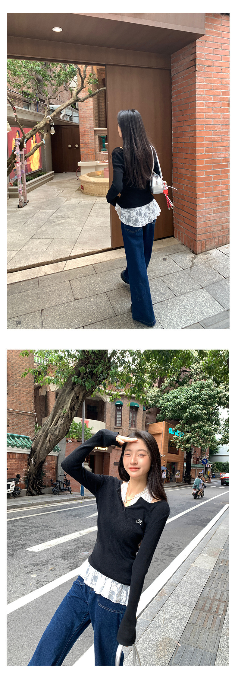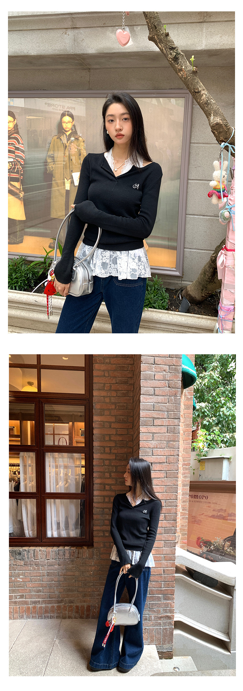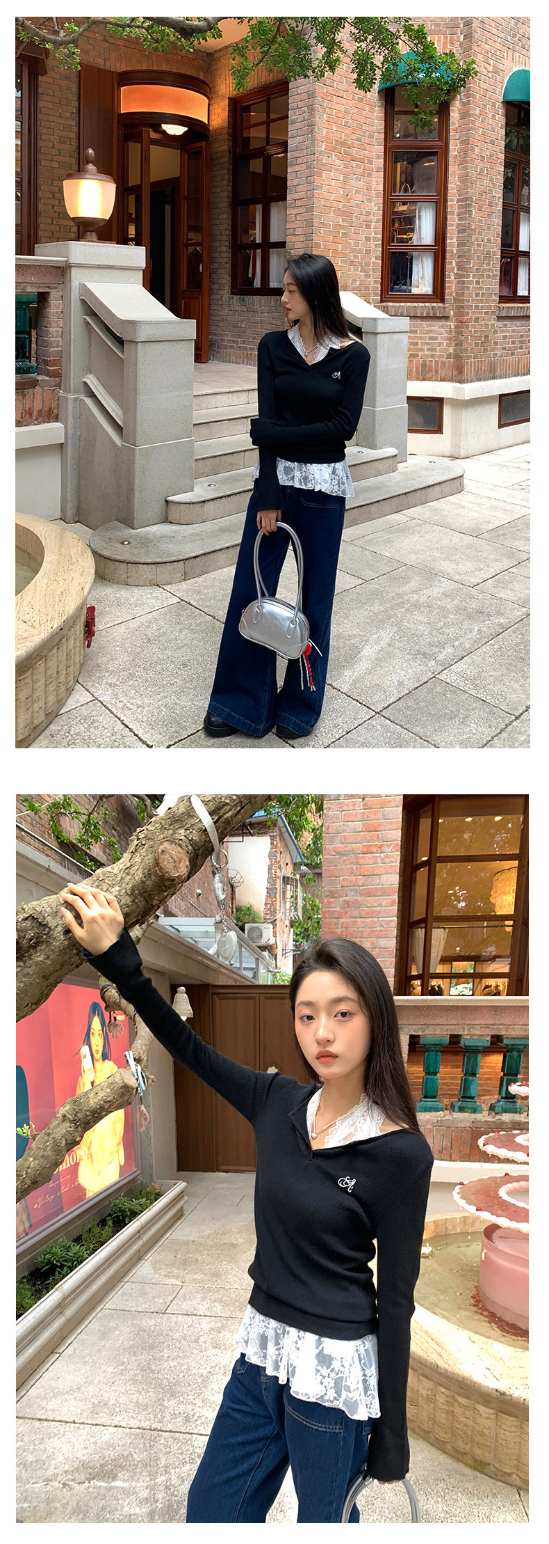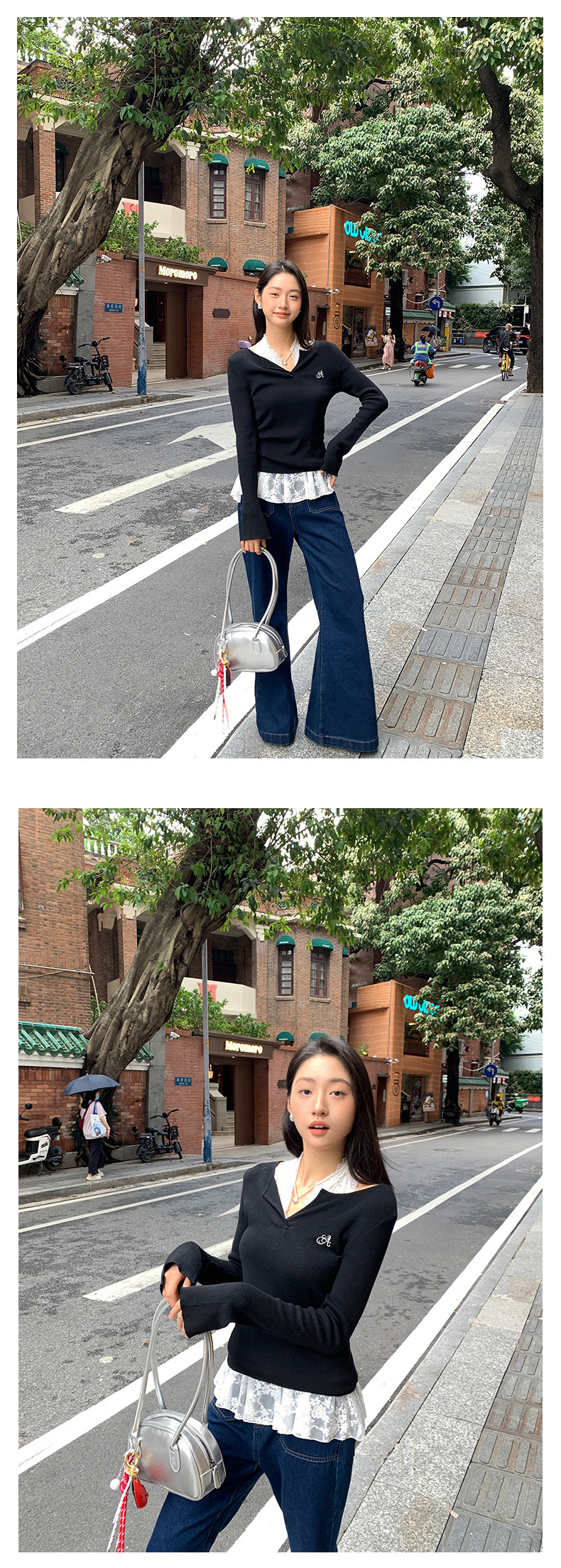 *o-ha-you*【FHZ143MY7073】甜辣V領長袖針織衫2024秋季韓版修身顯瘦打底上衣