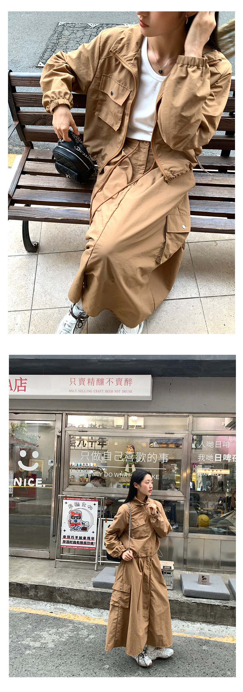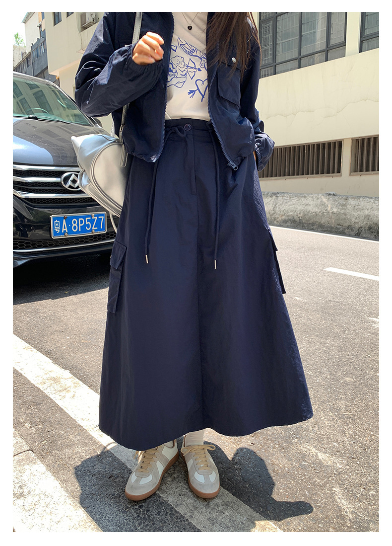 *o-ha-you*【FHZ143QY6043】慵懶風高腰抽繩工裝半身裙2024秋季韓版休閒A字裙-2色-如有需要請先諮詢